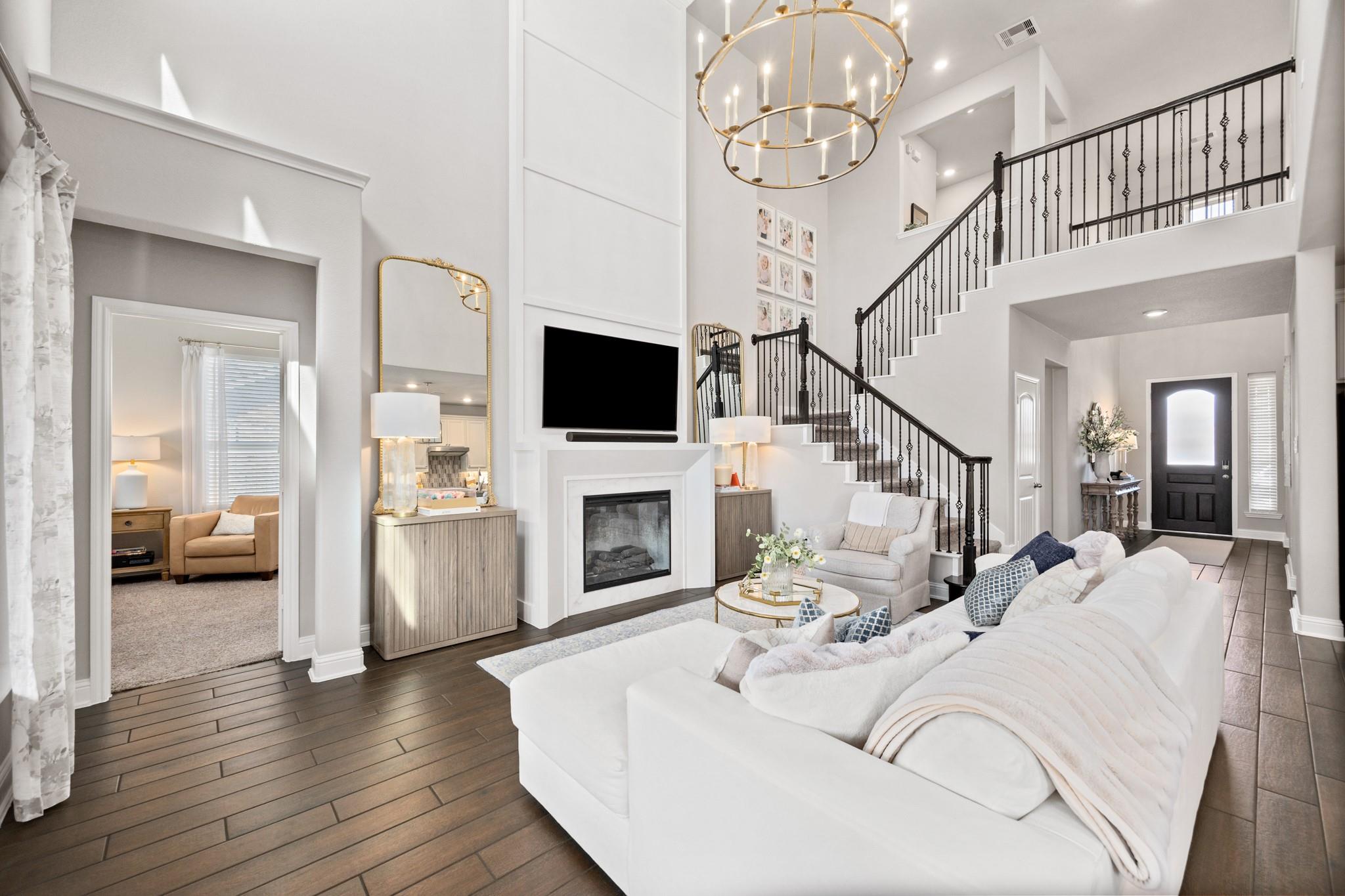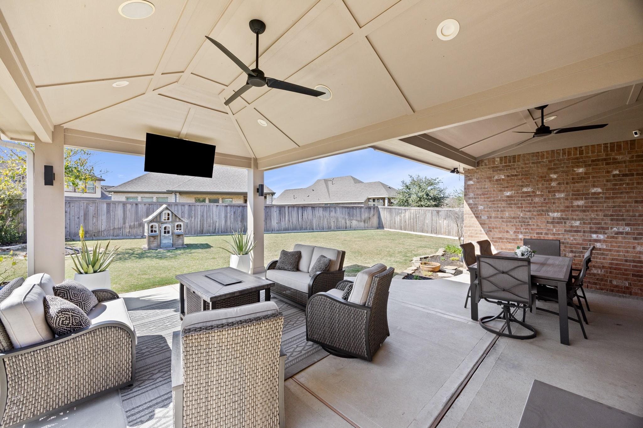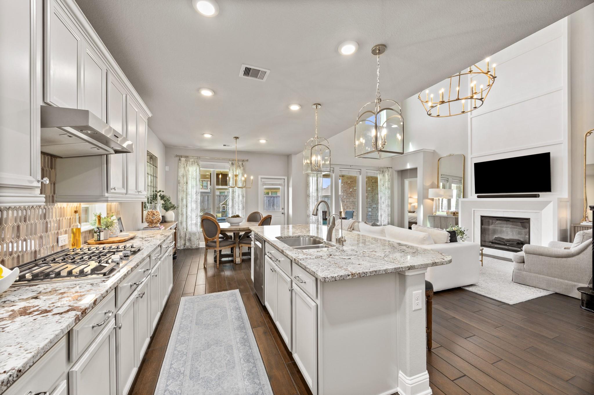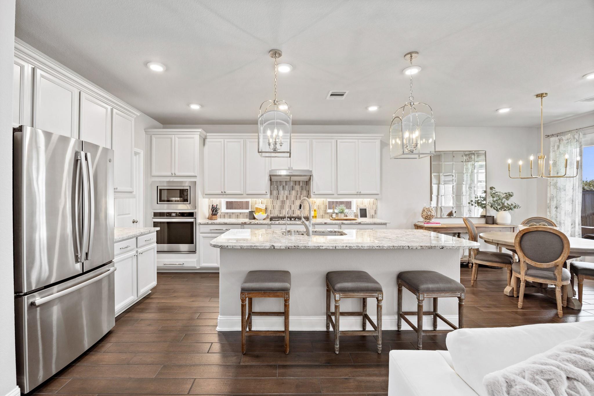 Stunning Bridgeland home with beautiful stone elevation and thoughtful upgrades throughout! Situated in a cul-de-sac, this home has countless upgrades throughout. Elegant tile flooring and wrought iron spindles welcome you inside, along with a private study featuring custom built-ins and french doors. The inviting living room offers a cozy fireplace, designer lighting, and opens to a gorgeous kitchen complete with granite countertops, mosaic backsplash, stainless steel Whirlpool appliances, pendant lighting, and abundant cabinetry. Custom built-ins in the mud area and laundry add exceptional function. Relax in the spa-like primary suite with tray ceiling, dual vanities, soaking tub, separate shower, and walk-in closet. Enjoy outdoor living on the extended, covered patio overlooking a pool-sized yard. Zoned to highly acclaimed Cy-Fair ISD and located in Bridgeland with walking trails, splash pad, and year-round heated lap pool. Energy-efficient spray foam insulation!