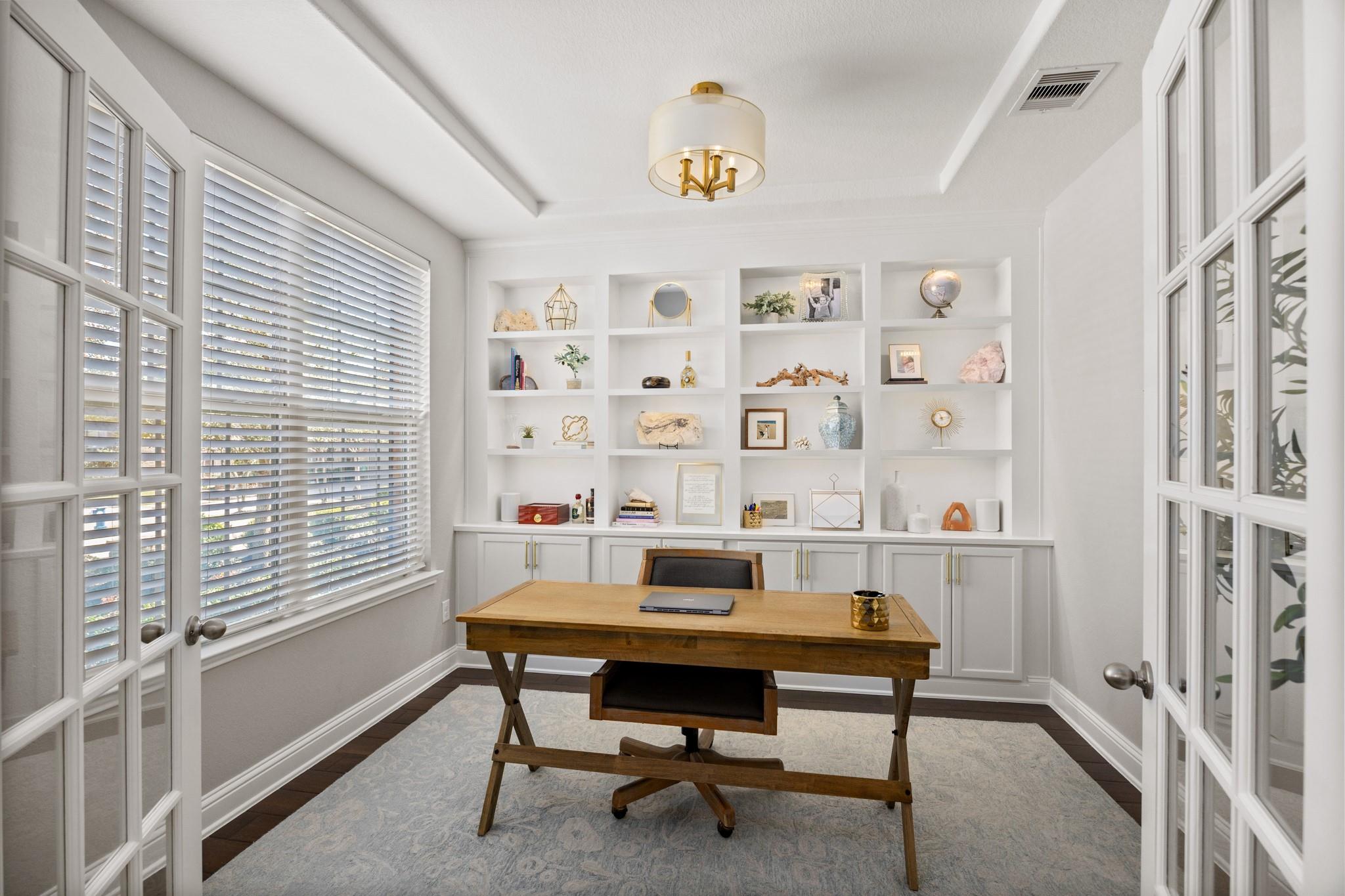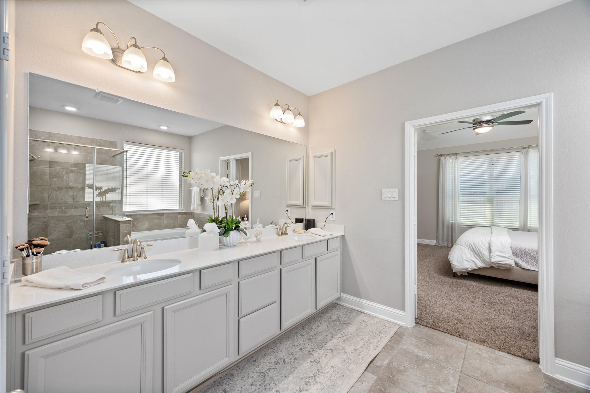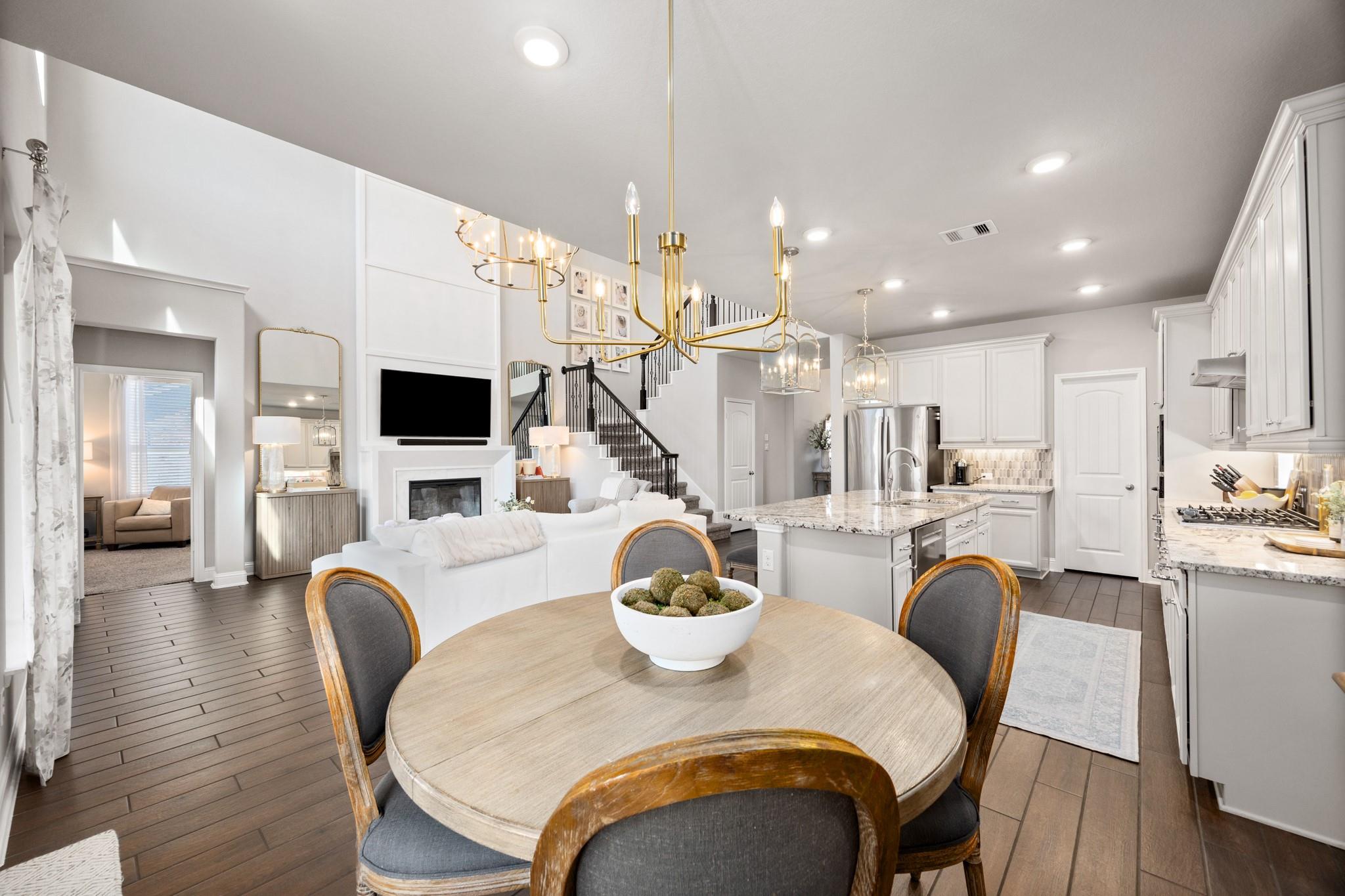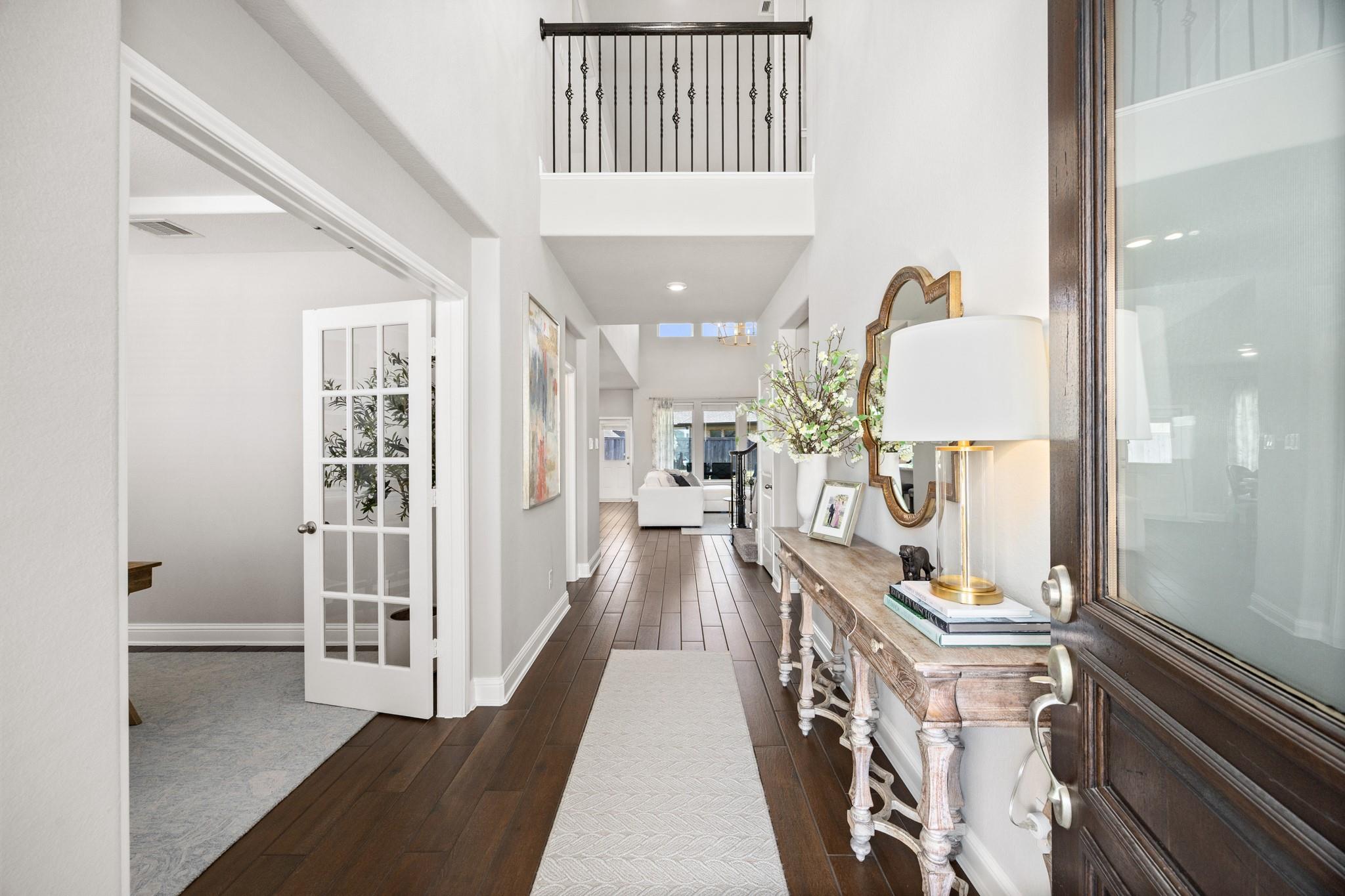 Stunning Bridgeland home with beautiful stone elevation and thoughtful upgrades throughout! Situated in a cul-de-sac, this home has countless upgrades throughout. Elegant tile flooring and wrought iron spindles welcome you inside, along with a private study featuring custom built-ins and french doors. The inviting living room offers a cozy fireplace, designer lighting, and opens to a gorgeous kitchen complete with granite countertops, mosaic backsplash, stainless steel Whirlpool appliances, pendant lighting, and abundant cabinetry. Custom built-ins in the mud area and laundry add exceptional function. Relax in the spa-like primary suite with tray ceiling, dual vanities, soaking tub, separate shower, and walk-in closet. Enjoy outdoor living on the extended, covered patio overlooking a pool-sized yard. Zoned to highly acclaimed Cy-Fair ISD and located in Bridgeland with walking trails, splash pad, and year-round heated lap pool. Energy-efficient spray foam insulation!