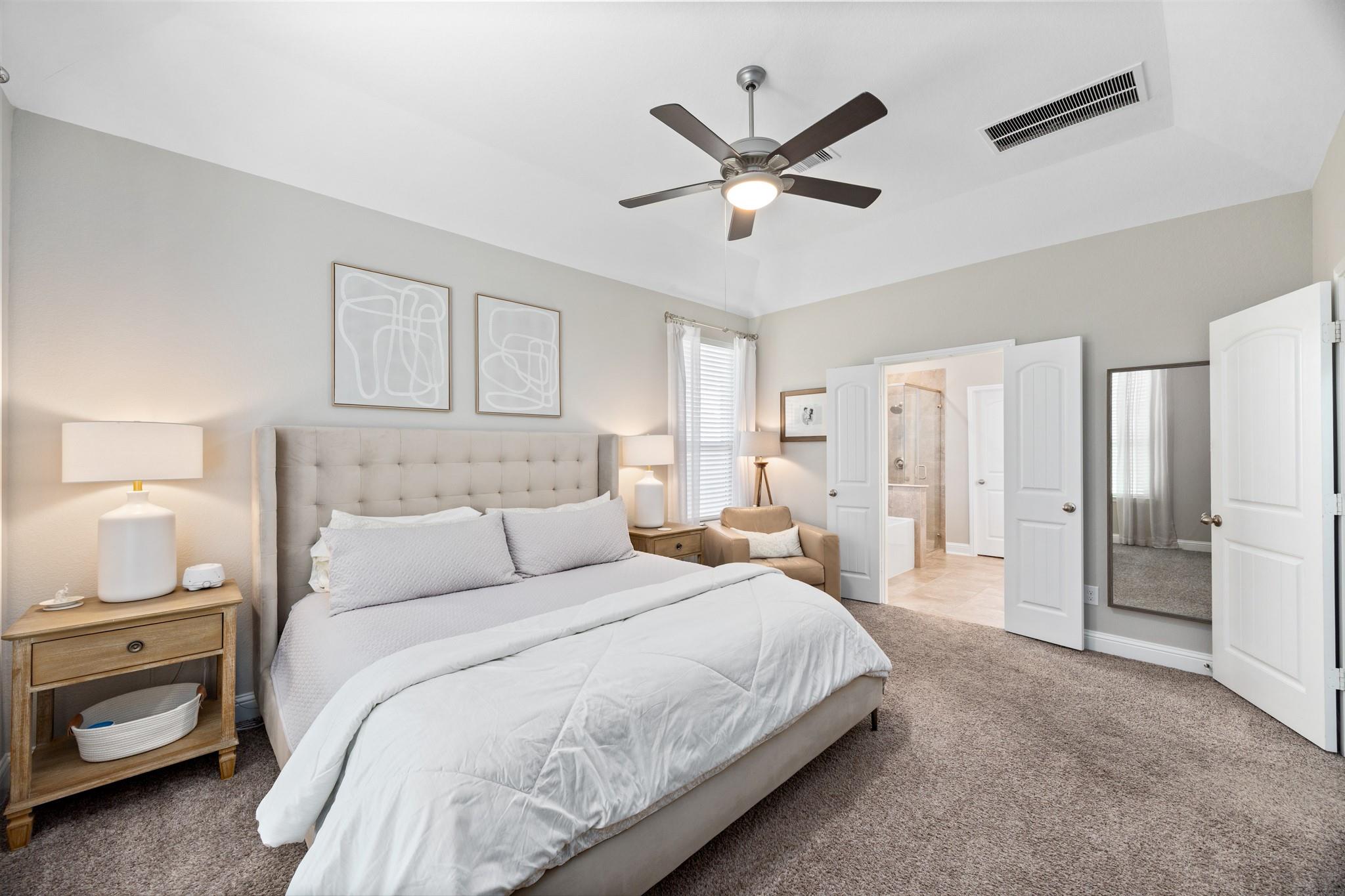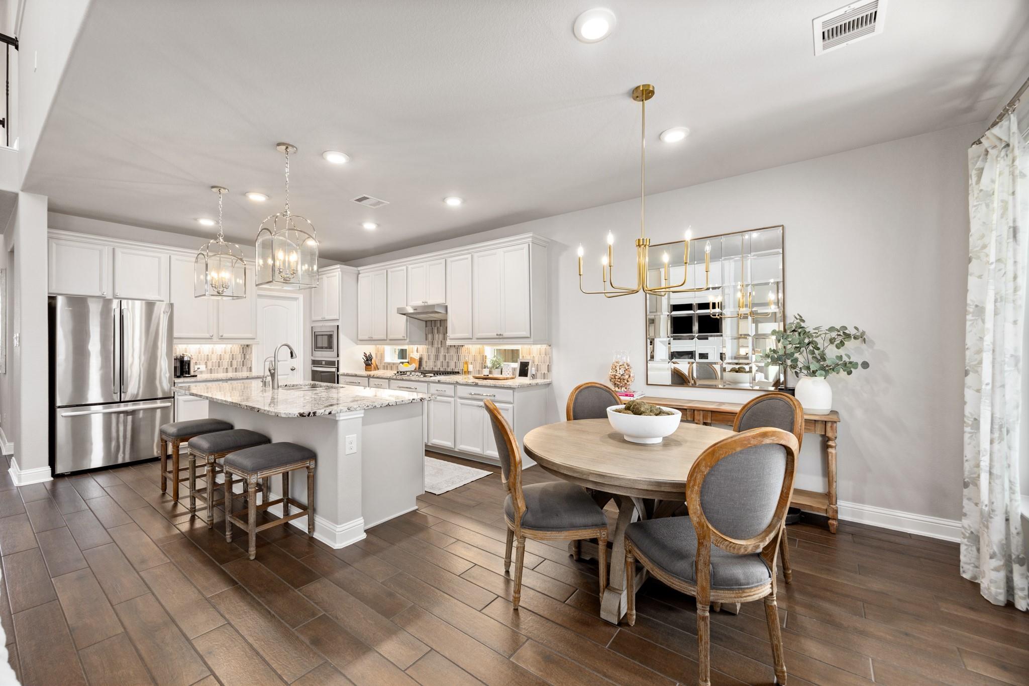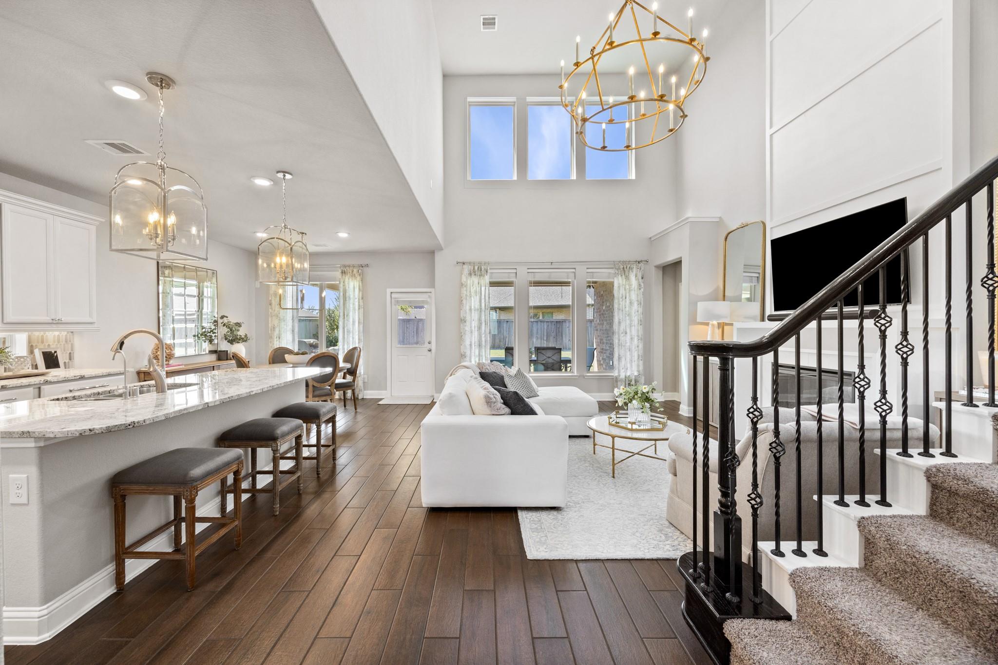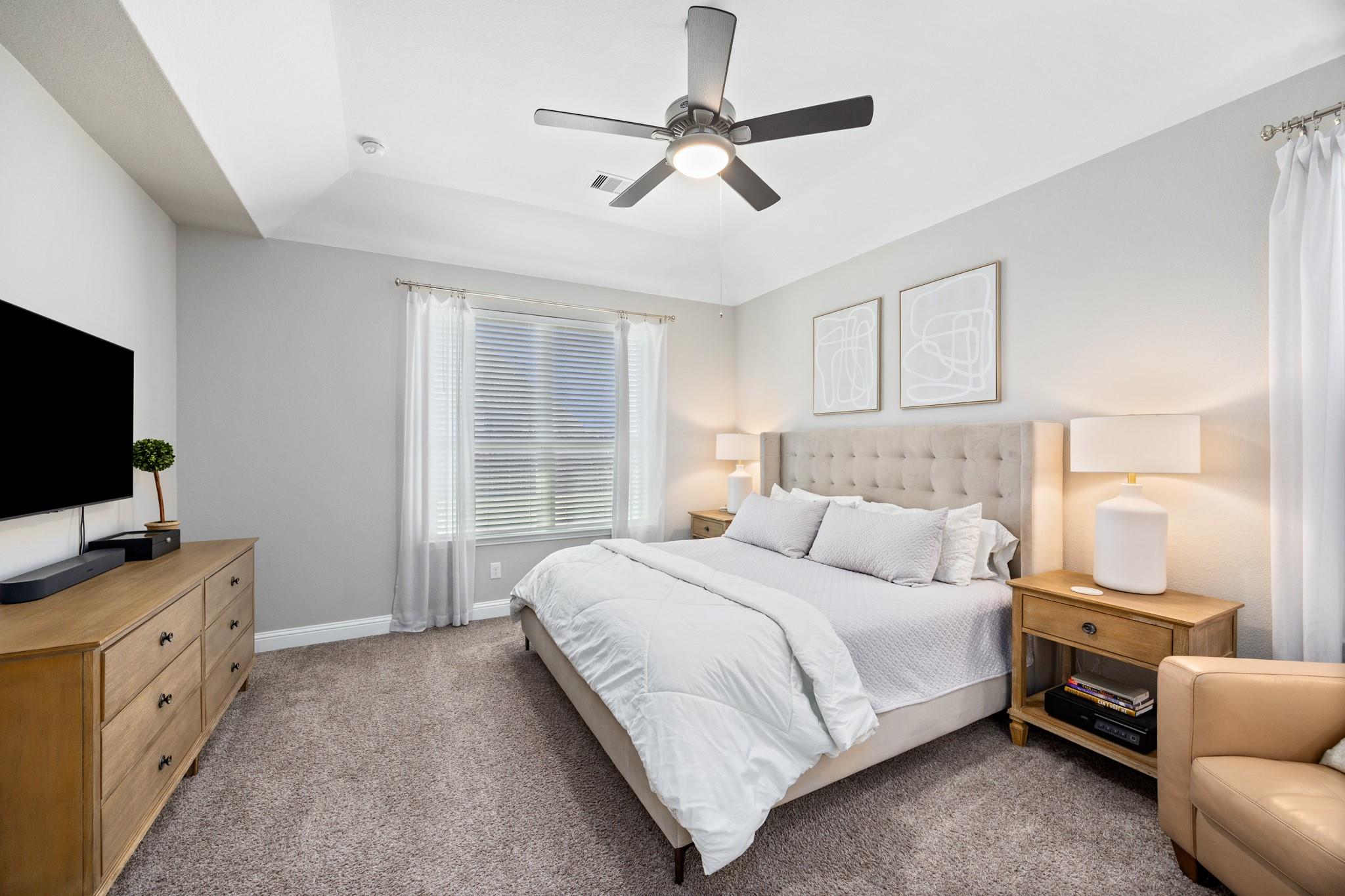 Stunning Bridgeland home with beautiful stone elevation and thoughtful upgrades throughout! Situated in a cul-de-sac, this home has countless upgrades throughout. Elegant tile flooring and wrought iron spindles welcome you inside, along with a private study featuring custom built-ins and french doors. The inviting living room offers a cozy fireplace, designer lighting, and opens to a gorgeous kitchen complete with granite countertops, mosaic backsplash, stainless steel Whirlpool appliances, pendant lighting, and abundant cabinetry. Custom built-ins in the mud area and laundry add exceptional function. Relax in the spa-like primary suite with tray ceiling, dual vanities, soaking tub, separate shower, and walk-in closet. Enjoy outdoor living on the extended, covered patio overlooking a pool-sized yard. Zoned to highly acclaimed Cy-Fair ISD and located in Bridgeland with walking trails, splash pad, and year-round heated lap pool. Energy-efficient spray foam insulation!