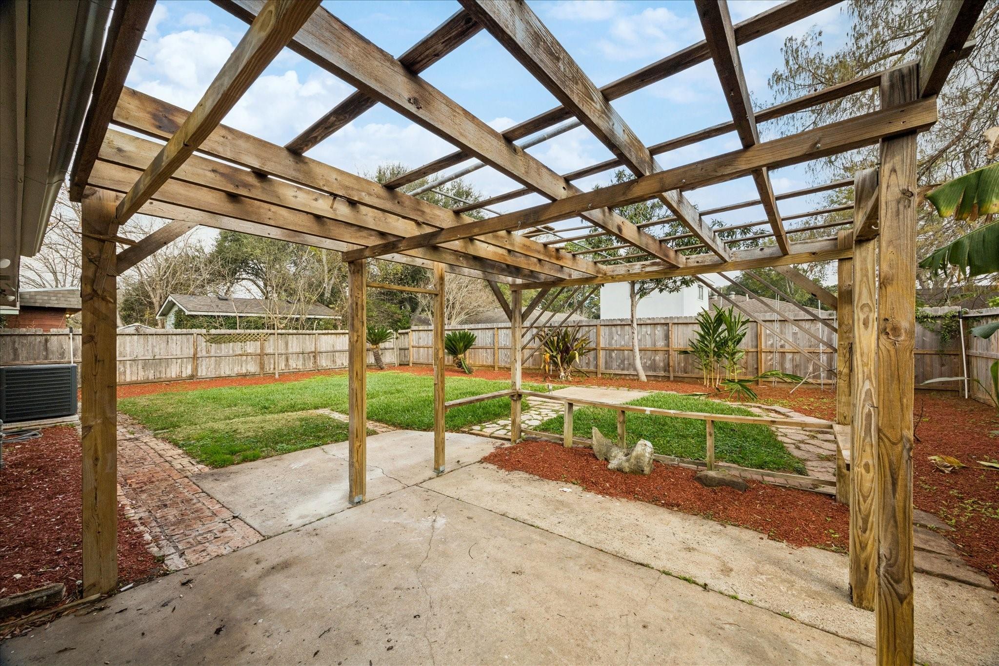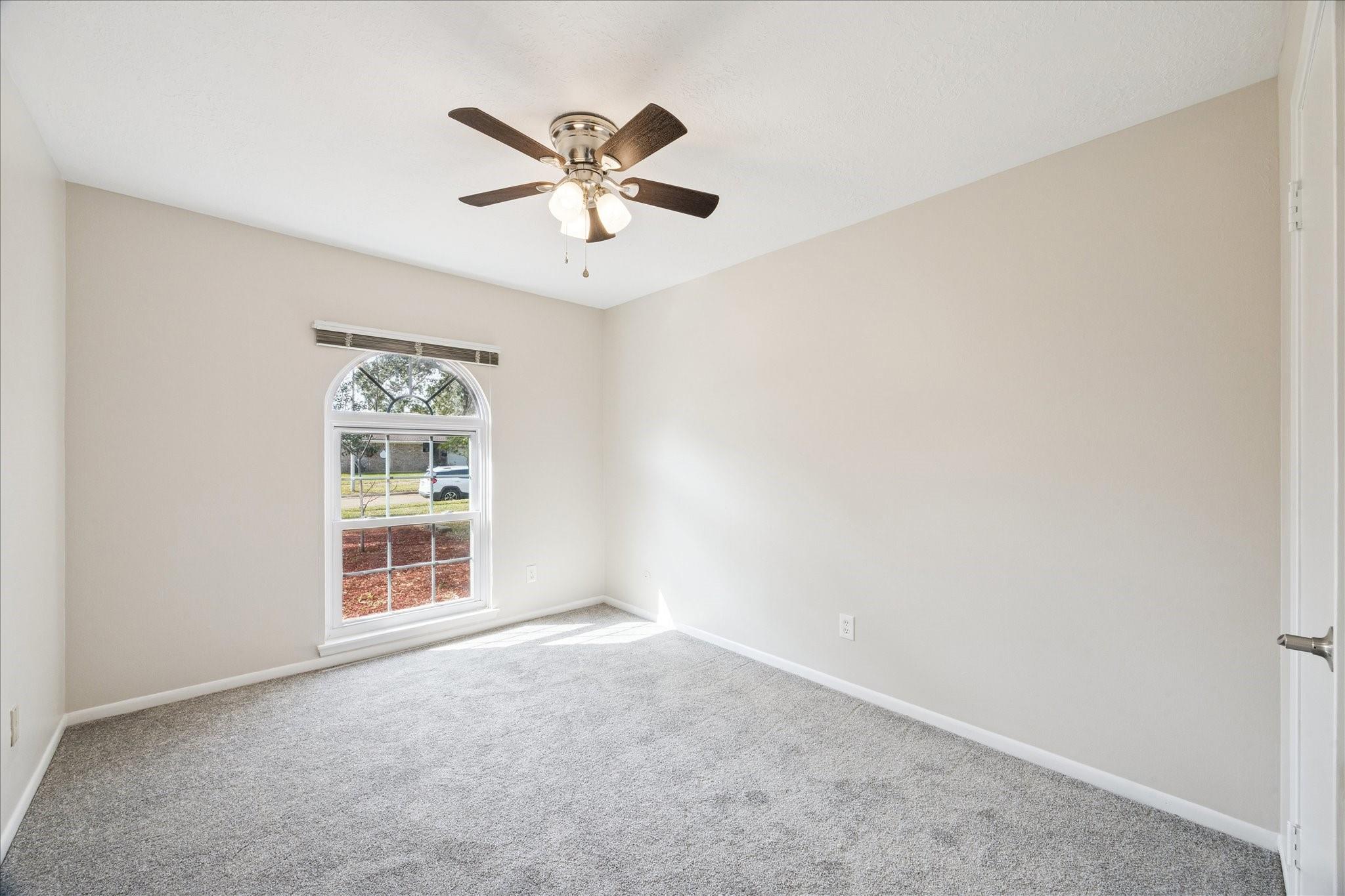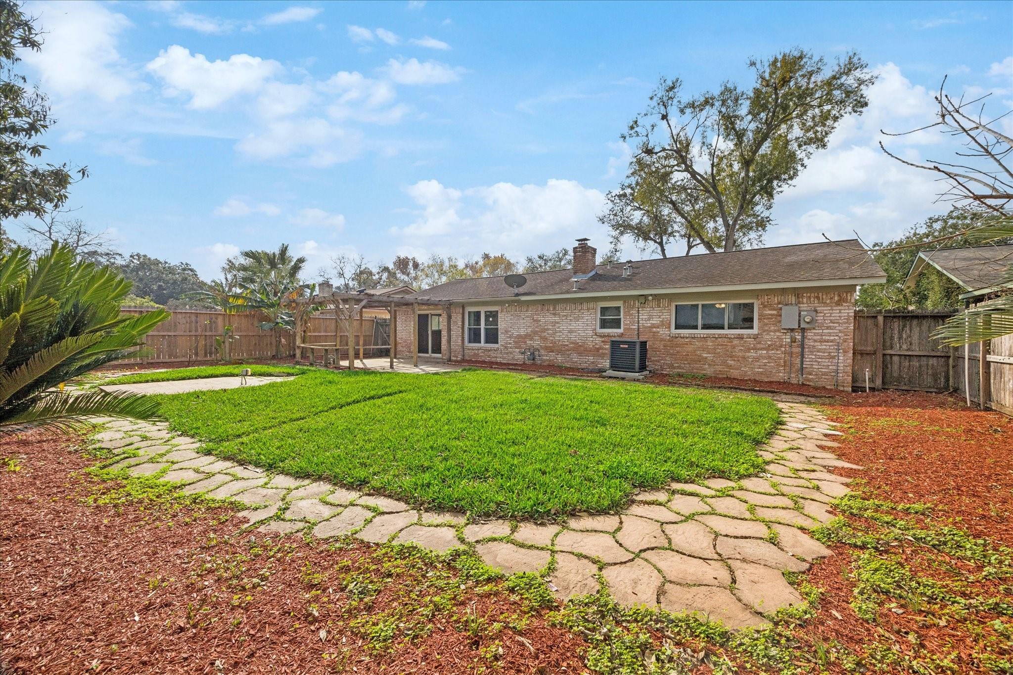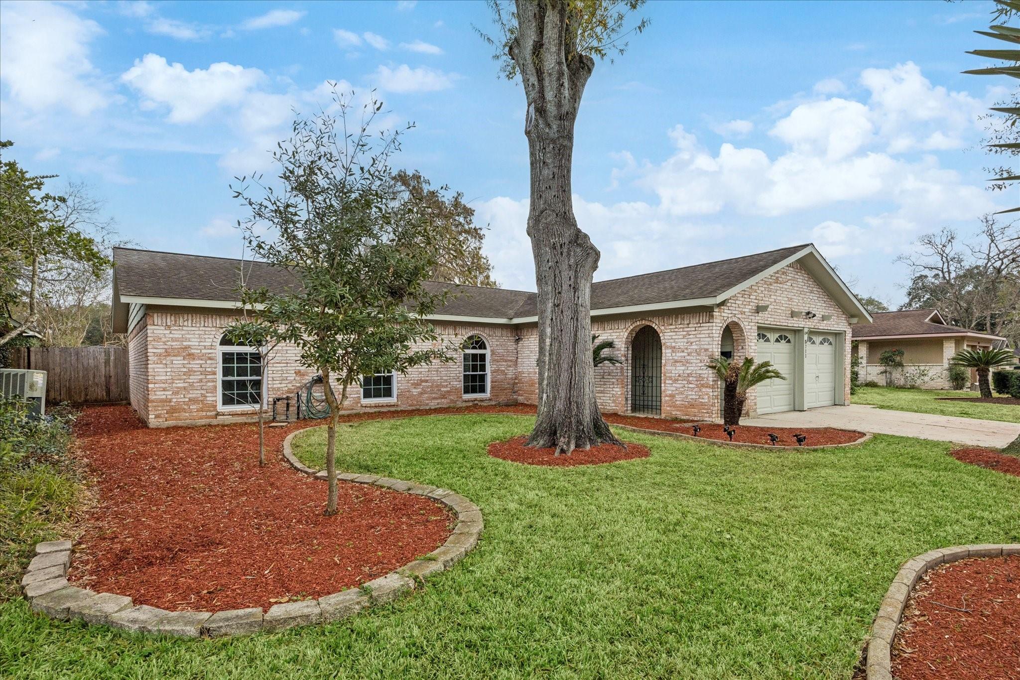Welcome to this charming single-story home located on a quiet cul-de-sac street. With four bedrooms and two fully remodeled bathrooms, this property boasts new carpet, a back patio, and a spacious backyard. The open concept living/dining room features a brick fireplace, built-ins, and high ceilings with exposed wood beams. Abundant natural light streams through the large windows and sliding glass patio door. The galley kitchen includes a pass-through opening, light color cabinets, and a double oven. The attached garage comes complete with a washer and dryer. Each bedroom offers fresh carpet, ceiling fans, and large windows. Don't miss out on this beautifully updated home! Easy access to Hwy. 45, Ellington Air Force Base, NASA. Close to retail, medical and thirty minutes to downtown Houston, 40 minutes to Galveston island.