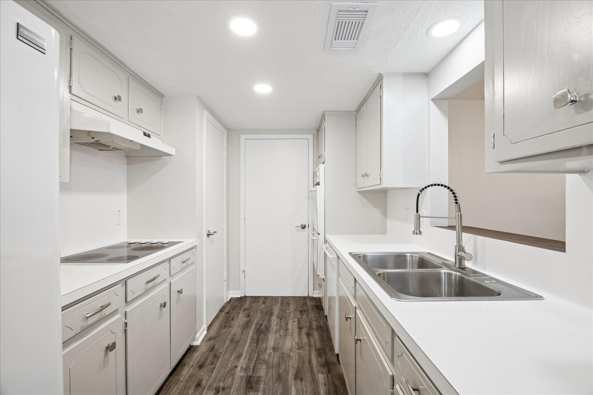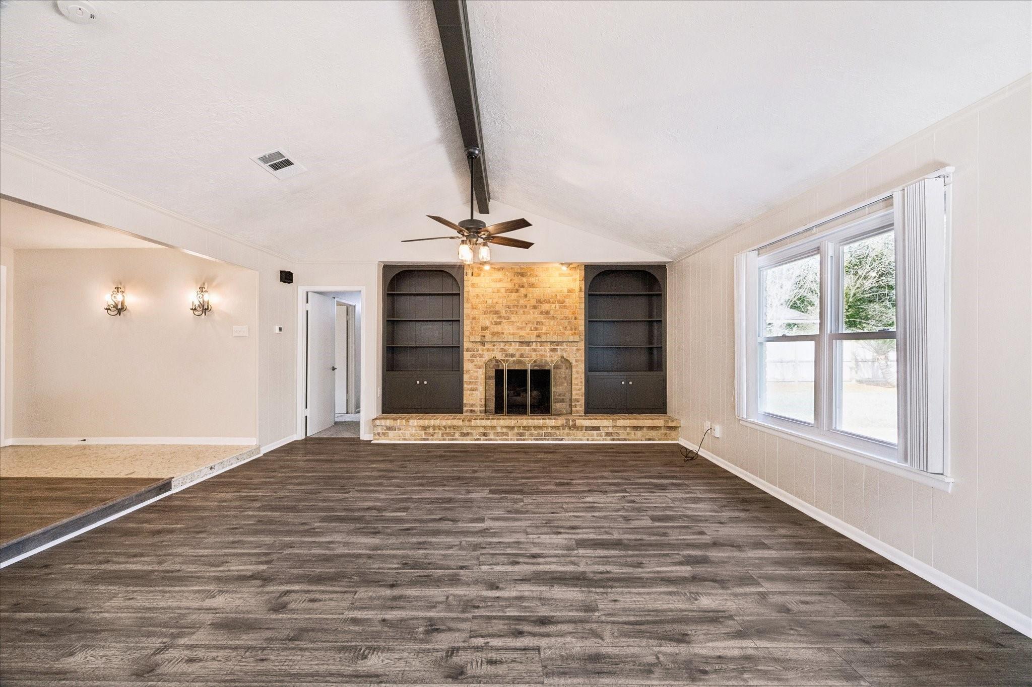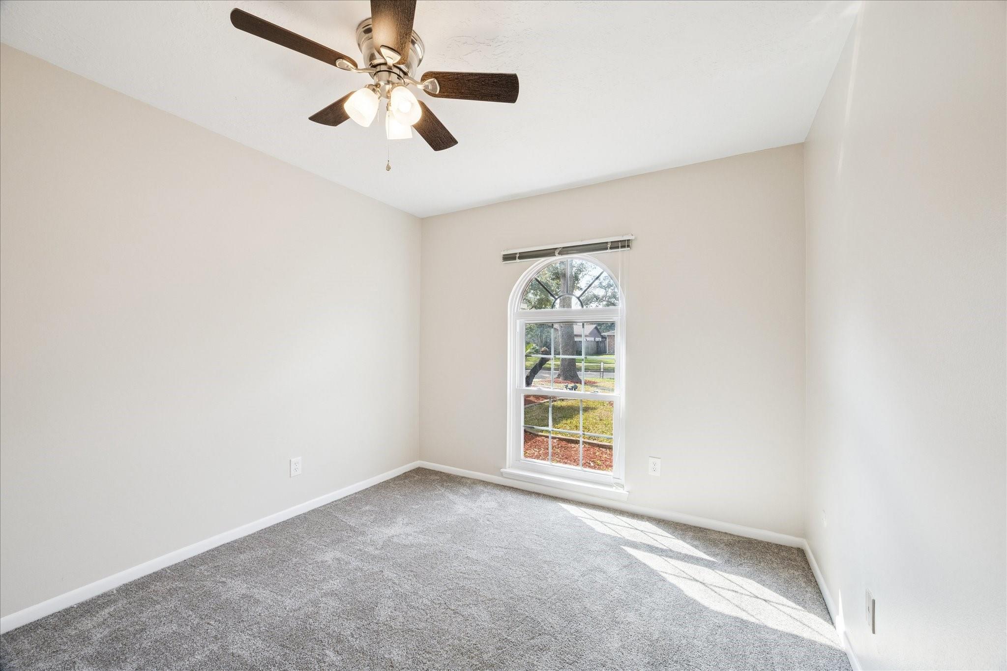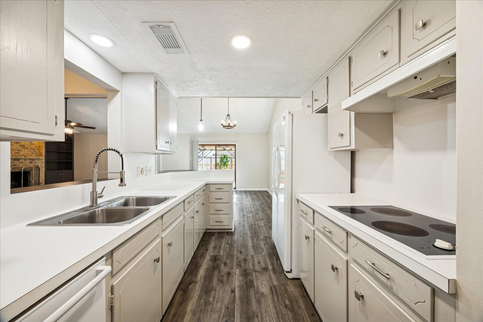 Welcome to this charming single-story home located on a quiet cul-de-sac street. With four bedrooms and two fully remodeled bathrooms, this property boasts new carpet, a back patio, and a spacious backyard. The open concept living/dining room features a brick fireplace, built-ins, and high ceilings with exposed wood beams. Abundant natural light streams through the large windows and sliding glass patio door. The galley kitchen includes a pass-through opening, light color cabinets, and a double oven. The attached garage comes complete with a washer and dryer. Each bedroom offers fresh carpet, ceiling fans, and large windows. Don't miss out on this beautifully updated home! Easy access to Hwy. 45, Ellington Air Force Base, NASA. Close to retail, medical and thirty minutes to downtown Houston, 40 minutes to Galveston island.