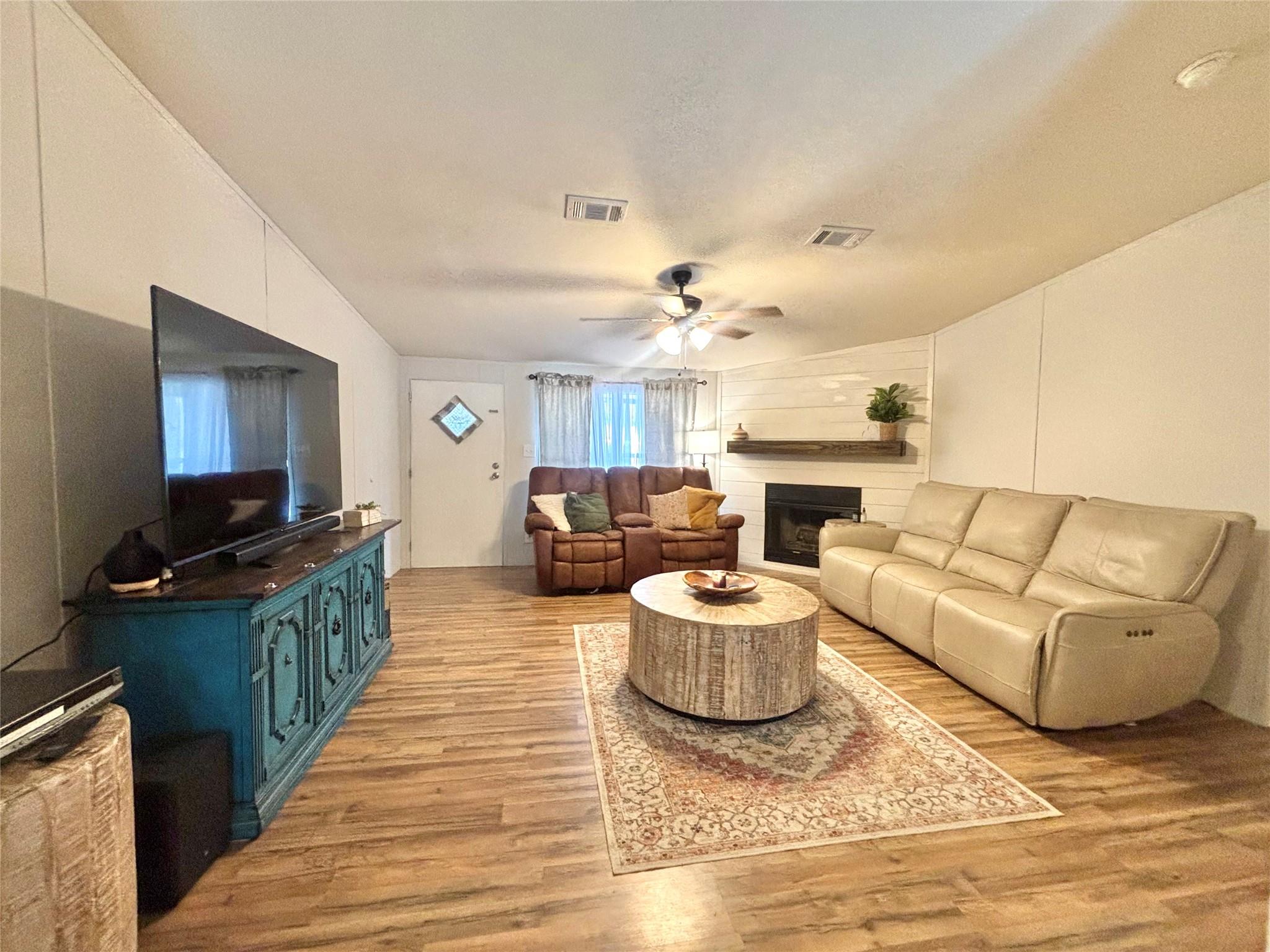 InteriorFireplace:1/Wood Burning FireplaceFloors:VinylBathroom Description:Primary Bath: Shower Only,Secondary Bath(s): Tub/Shower Combo,Vanity AreaBedroom Desc:En-Suite Bath,Walk-In ClosetKitchen Desc:Kitchen open to Family RoomRoom Description:1 Living Area,Kitchen/Dining Combo,Utility Room in HouseHeating:Central ElectricCooling:Central ElectricConnections:Electric Dryer Connections,Washer ConnectionsDishwasher:YesRange:Electric RangeOven:Electric OvenEnergy Feature:Ceiling Fans,Digital Program ThermostatInterior:Refrigerator Included