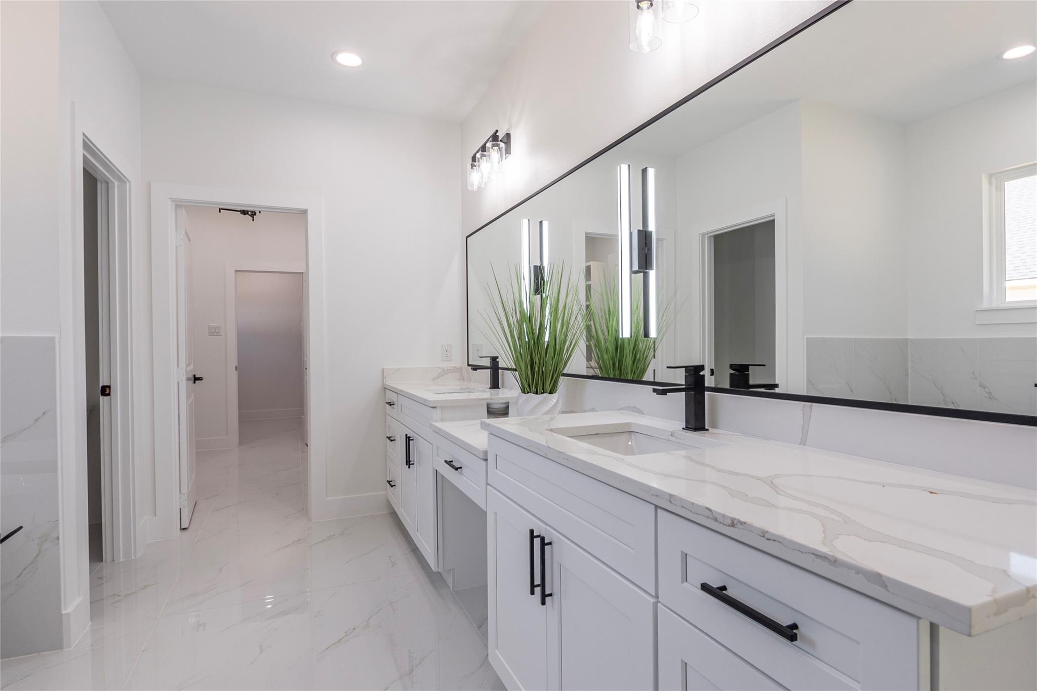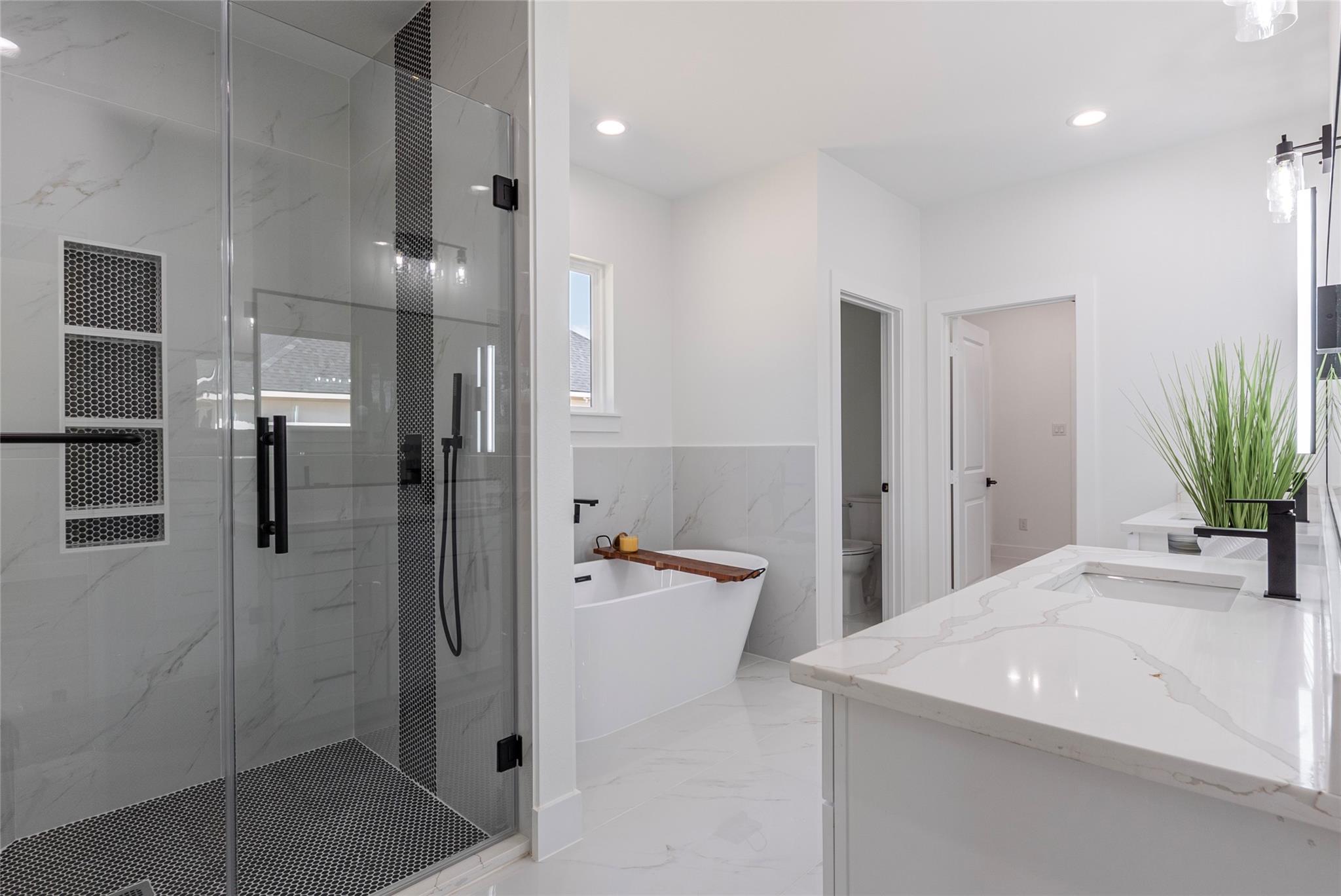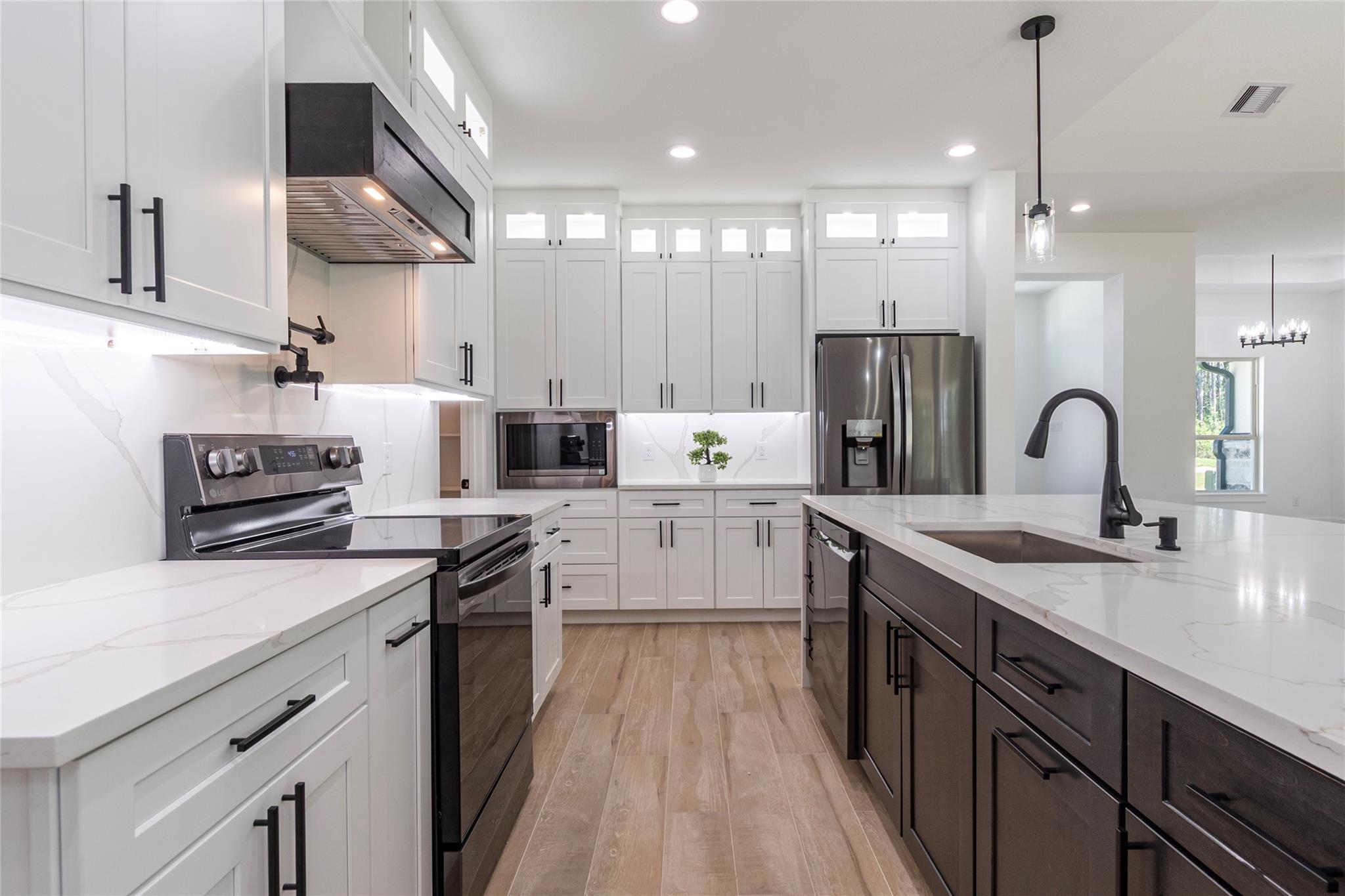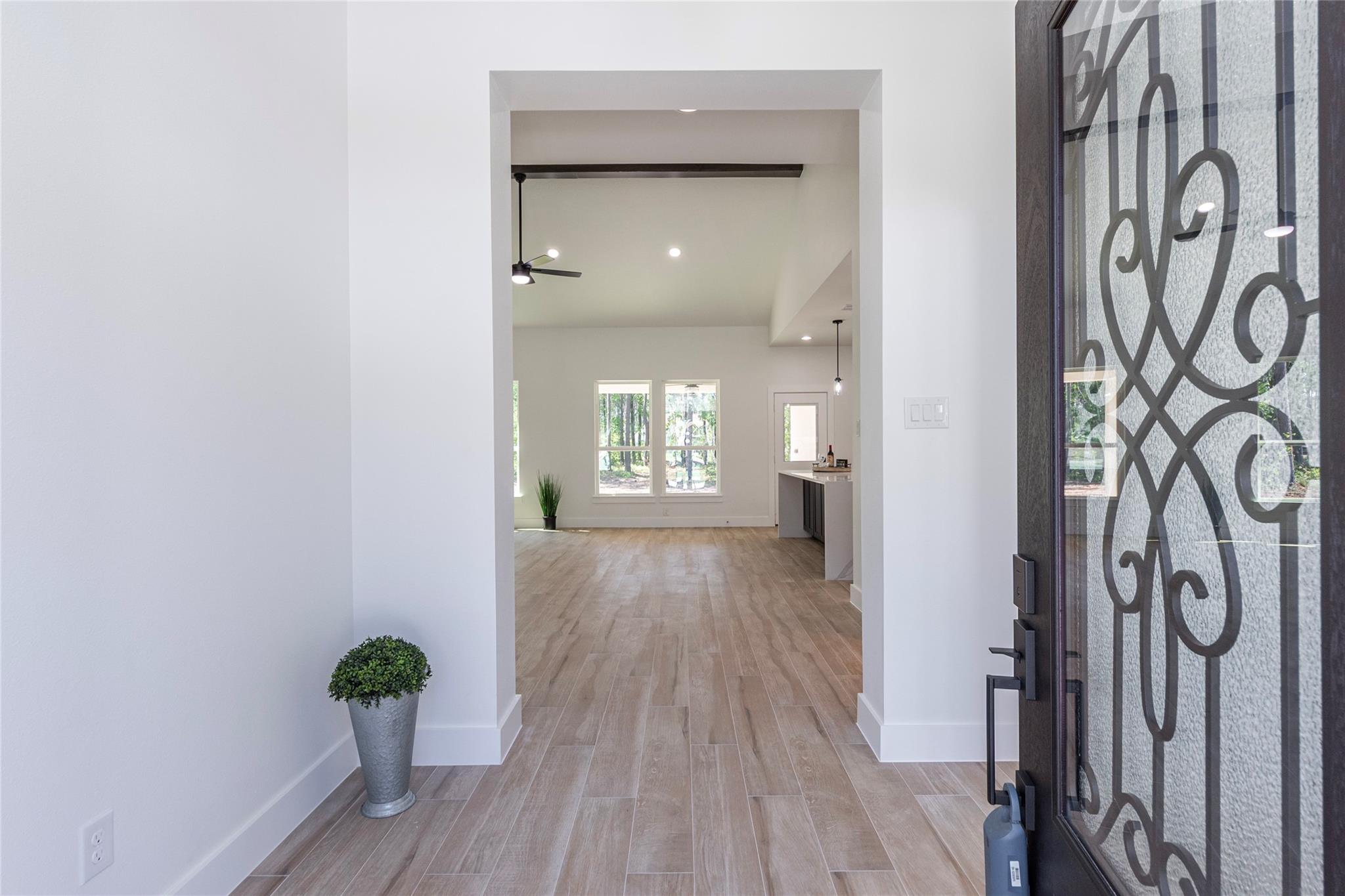 Gorgeous custom Home where Modern meets Country living! Beautiful wood-looking floors will welcome you as you walk into this open concept floor plan. A large living room with high ceilings adorned by a gorgeous stone covered fireplace and cedar beams that open to a beautiful kitchen with soft-close cabinets and drawers, LED lights inside top cabinets and underneath, a massive waterfall island with quartz countertops and tons of storage space. Every room in this house offers spacious closets and no carpet. Even your pets will feel pampered having their very own lovely "suite" and their own shower! The evenings and gatherings will be more enjoyable in this large covered patio. The list keeps going... This home is sitting on a over half an acre lot in the desirable Encino Estates subdivision, has a low tax rate, is prepared with gas lines for an easy switch if you prefer, is pre-wired for closed circuit cameras system, has water softener / filtration system and even generator ready!