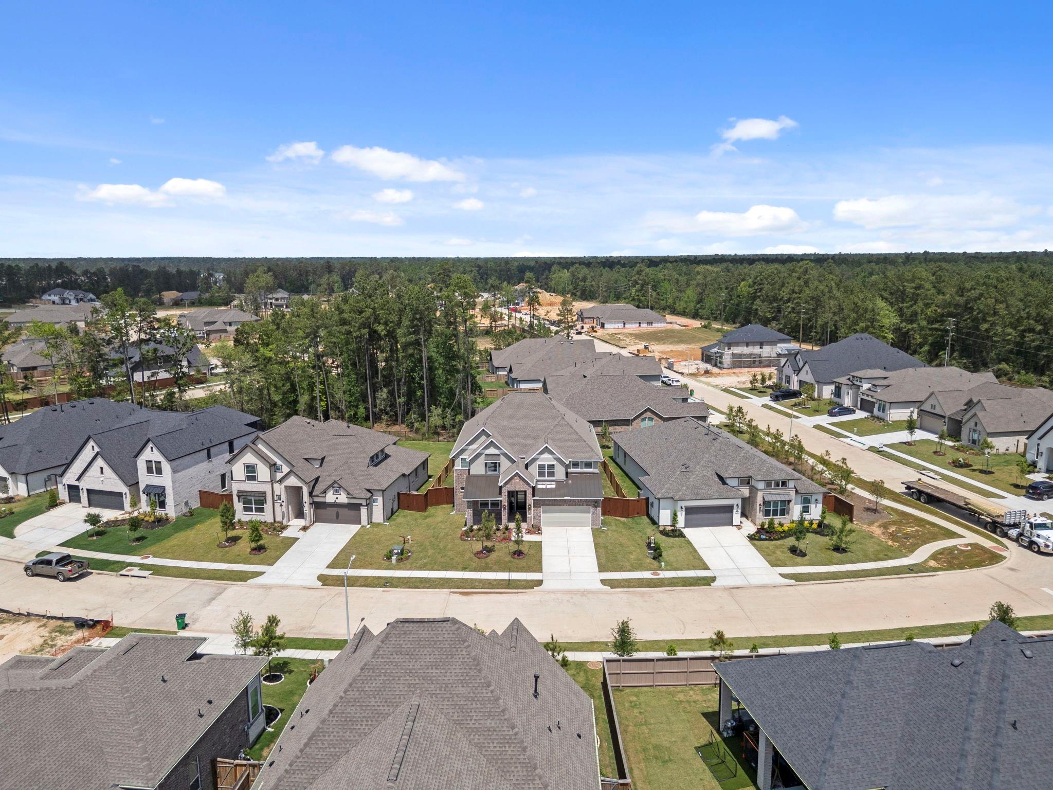MOVE IN READY! Introducing the Waterford Home plan by Chesmar Homes, an exquisite new construction offering 5 bedrooms, 4 bathrooms, and a 3-car tandem garage. With 3,636 square feet of living space, this two-story design provides the perfect balance of luxury and functionality. Enjoy the elegant curved staircase, a spacious game room, and a dedicated media room for entertainment. The inviting fireplace in the family room and a convenient pocket office add both charm and practicality. Located in the highly sought-after Evergreen community, which includes 5 miles of walking trails and is just minutes from The Woodlands, this home offers an exceptional living experience in a tranquil, nature-filled setting. Schedule a tour today to see all that this beautiful home has to offer.