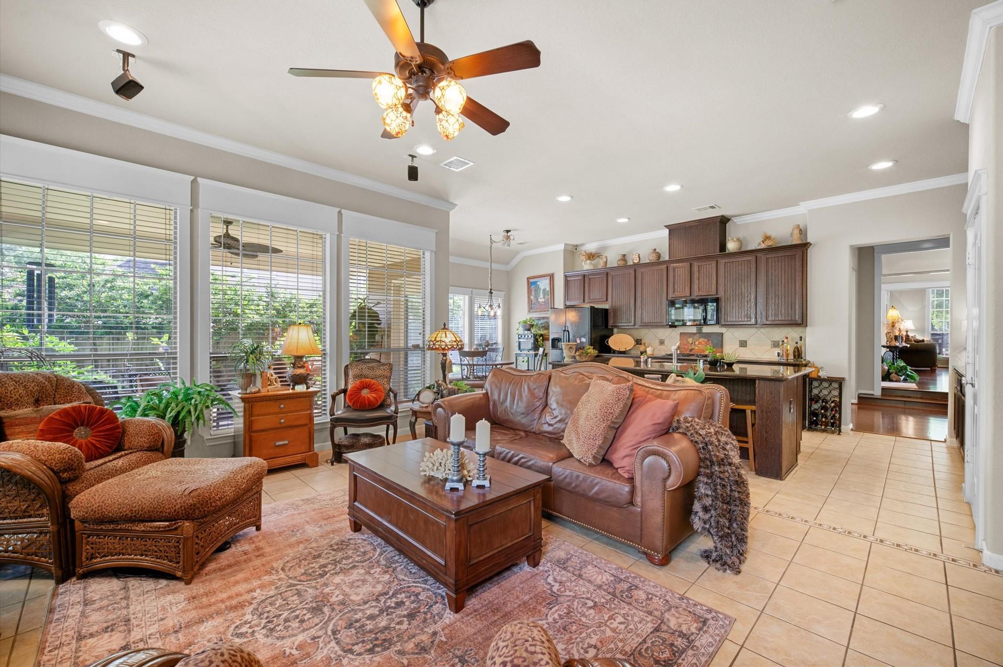 InteriorFireplace:1Floors:Tile,WoodCountertop:GRANITEBathroom Description:Primary Bath: Double Sinks,Primary Bath: Separate Shower,Primary Bath: Soaking Tub,Secondary Bath(s): Shower OnlyBedroom Desc:All Bedrooms DownKitchen Desc:Breakfast Bar,Island w/o Cooktop,Kitchen open to Family RoomRoom Description:Formal Dining,Home Office/Study,Utility Room in HouseHeating:Central GasCooling:Central ElectricConnections:Electric Dryer Connections,Washer ConnectionsDishwasher:YesDisposal:YesCompactor:NoMicrowave:YesRange:Gas RangeOven:Electric OvenIce Maker:NoEnergy Feature:Attic Fan,Attic Vents,Ceiling Fans,Digital Program ThermostatInterior:Alarm System - Leased,Crown Molding,Dryer Included,Refrigerator Included,Washer Included
