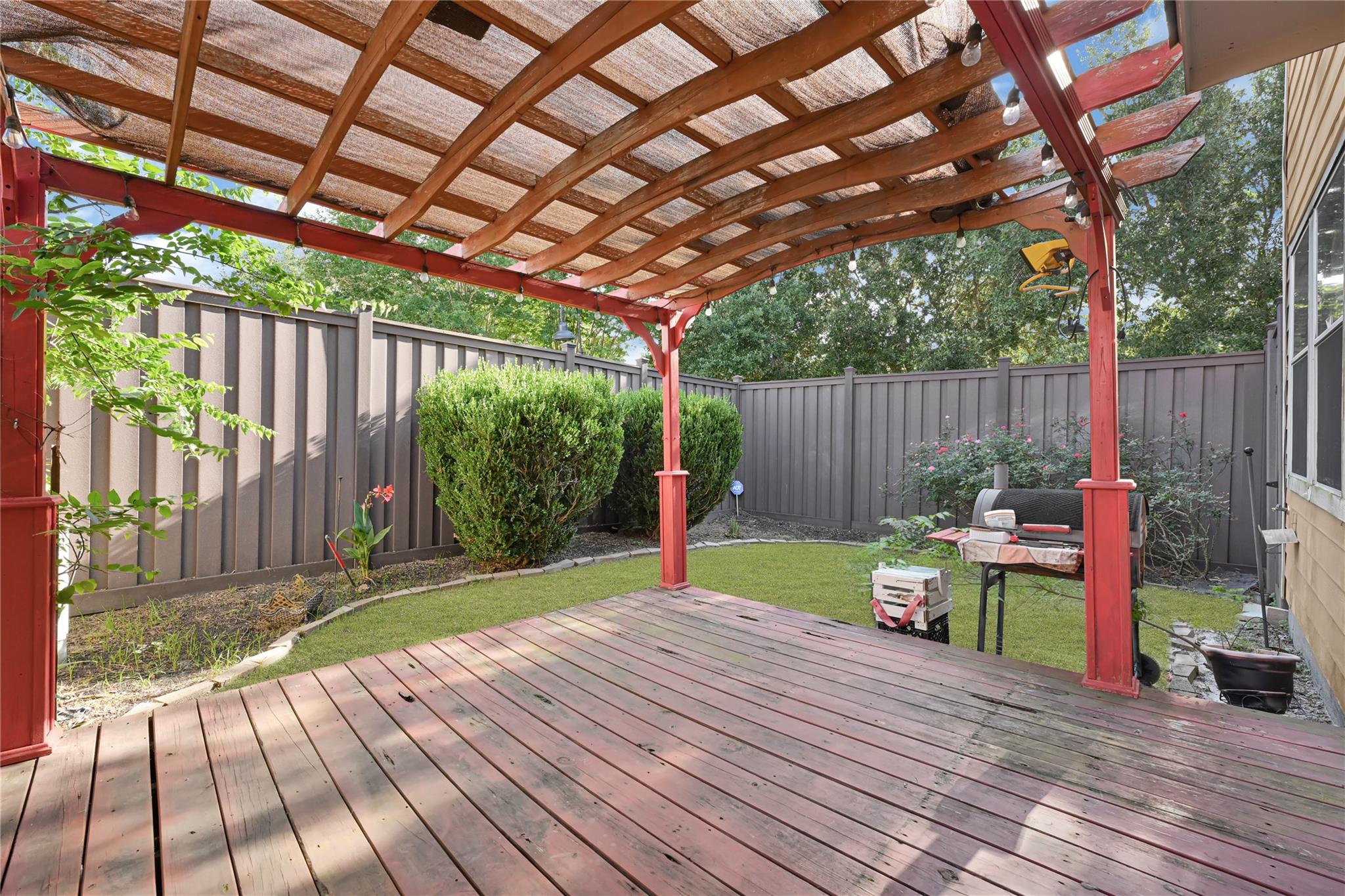 Welcome to this delightful 3-bed, 2.5-bath townhome on a charming corner lot, move-in ready with upgraded tile and laminate floors, a modern kitchen featuring granite countertops and designer backsplash. Upstairs boasts three bedrooms, a flexible space, and a convenient utility room. Step outside to relax under the pergola or enjoy your morning coffee in the lush backyard. Minutes from Highway 6, close to shopping, groceries, and various dining options. Don't miss out on this fantastic home!