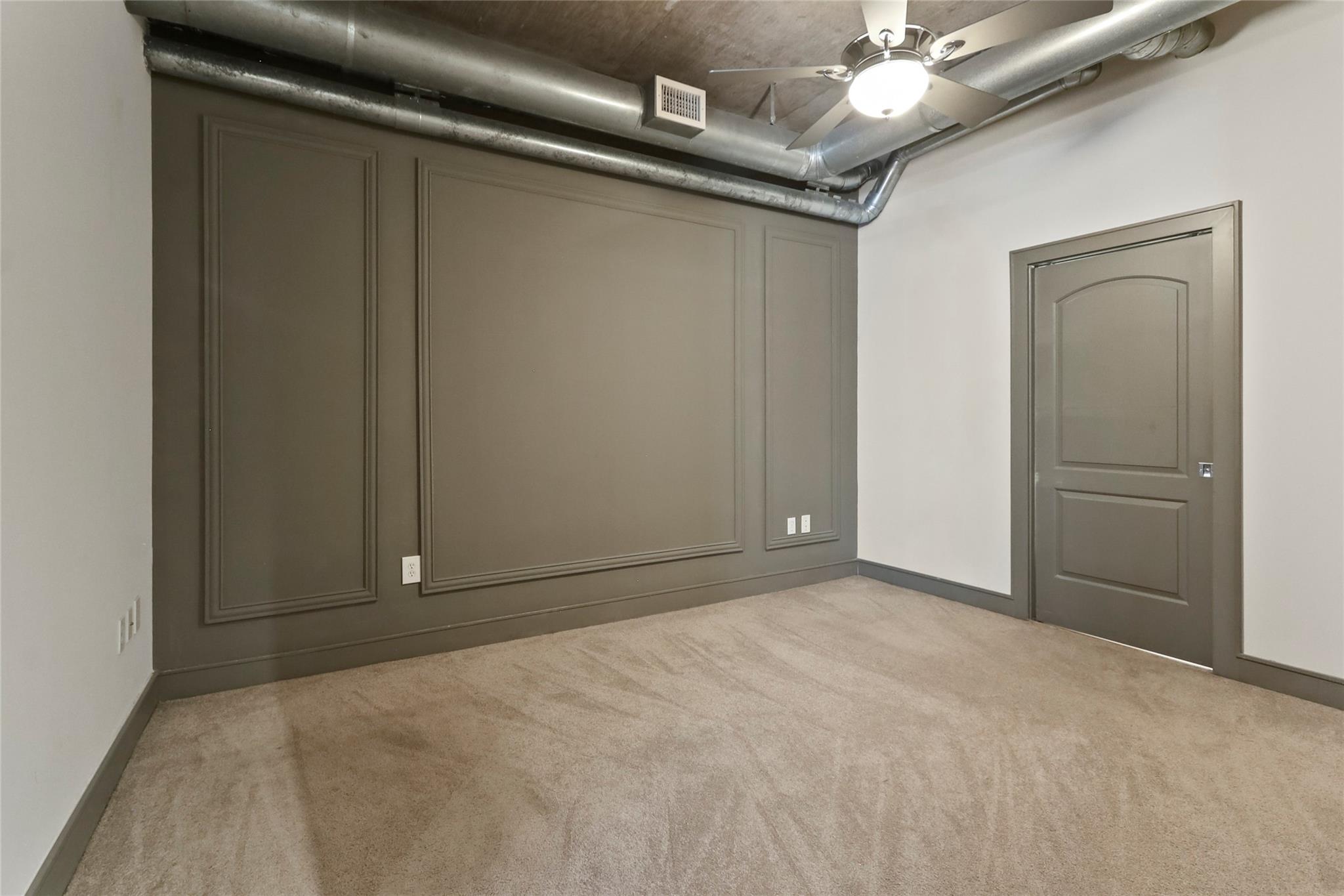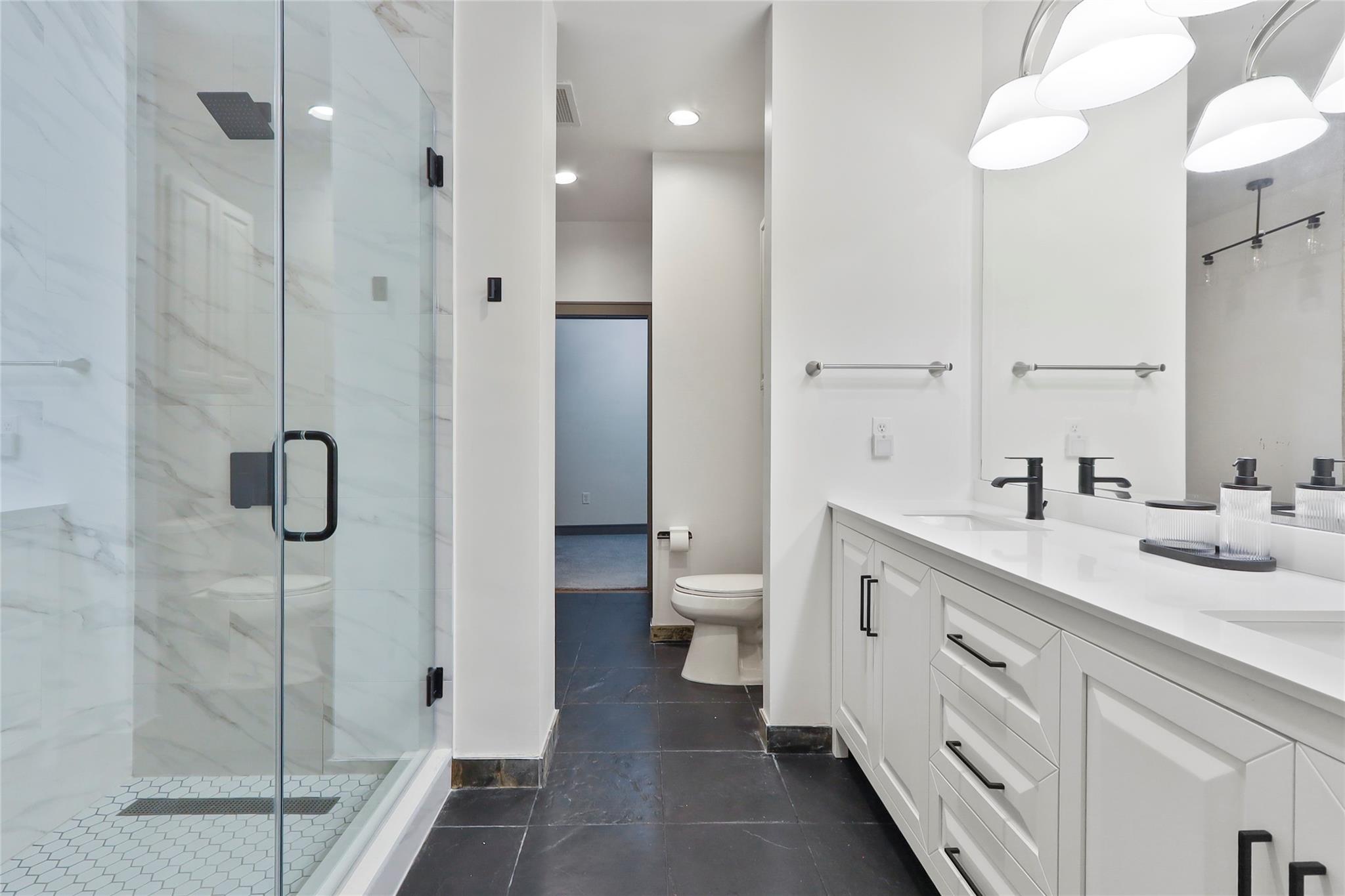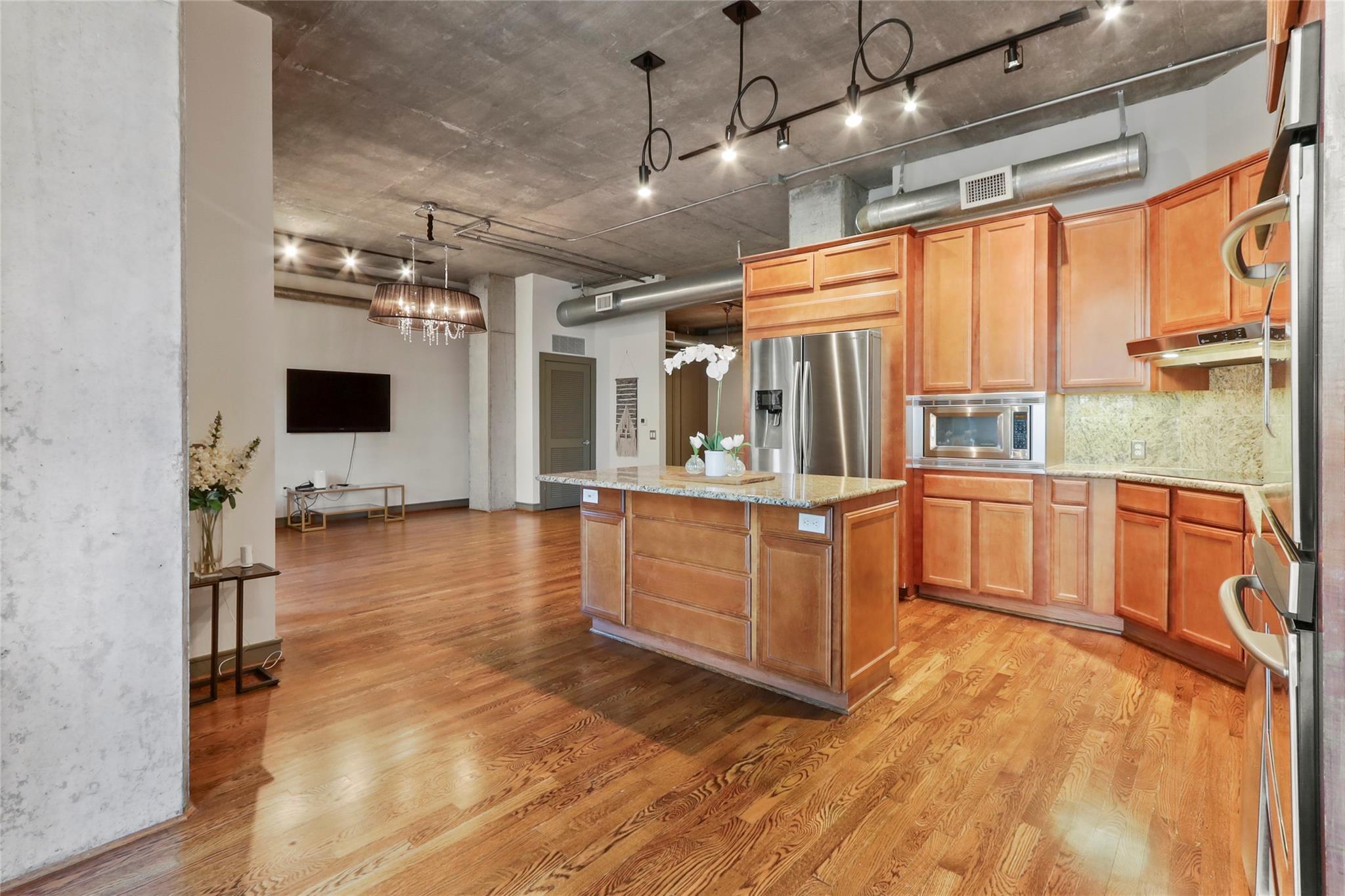 Modern condo in Houston’s desirable Tanglewood community. This quiet, secure building offers high ceilings, great natural light, and a unique curved entry leading to a flex room with custom built-ins—ideal for a home office. The kitchen features granite countertops, an island with bar seating, stainless steel appliances, a farmhouse sink, and access to a private balcony. Spacious primary suite with custom walk-in closet and en-suite bath featuring a large glass sit-in shower. Unit includes two tandem garage parking spaces, a climate-controlled secured storage unit with shelving across the hall, and on-site porter assistance. Building amenities include a 24-hour concierge, resort-style pool, fitness center (on 3rd fl), trash chute on the same floor with Unit, and bike storage across from the elevator (on same floor with unit). Enhanced guest verification through concierge. Prime location near shopping, dining, and entertainment.