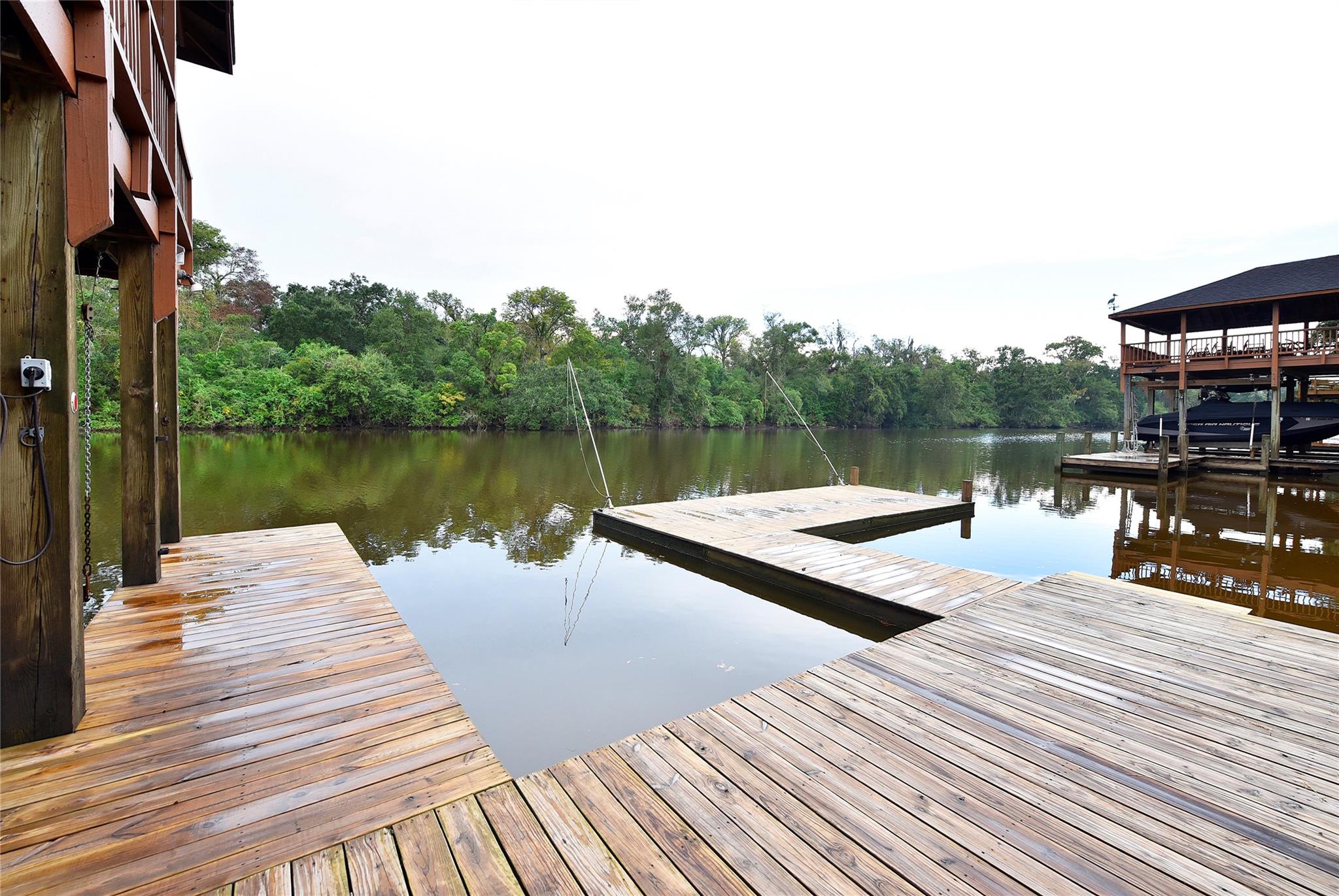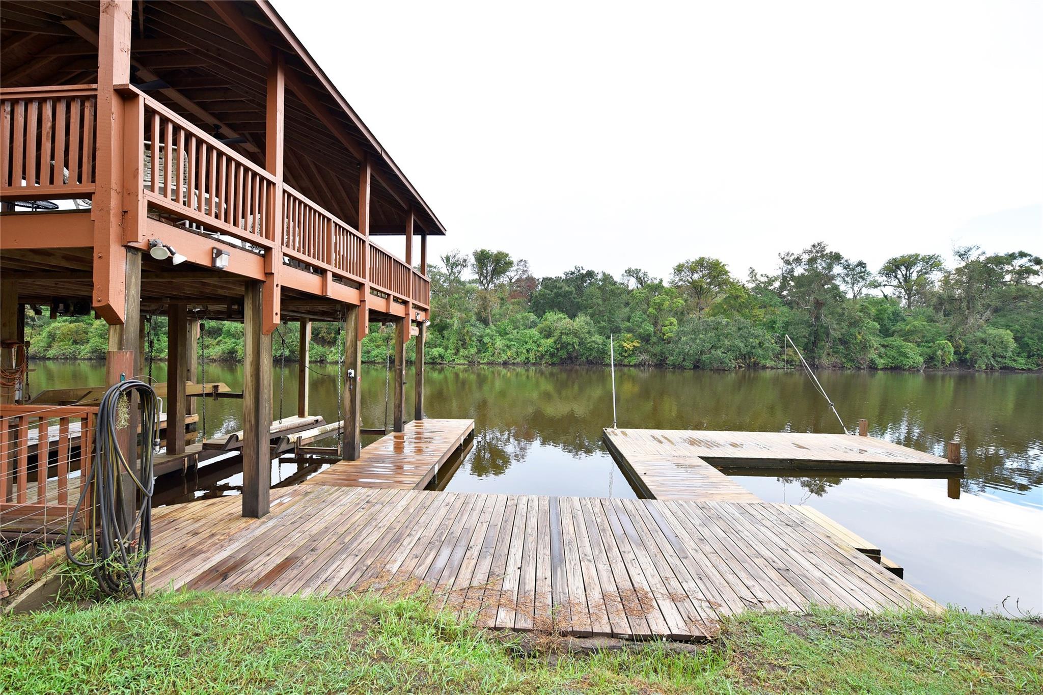 Nestled along the picturesque San Bernard River, this charming 3-bedroom home offers breathtaking water views from both the main living area and the expansive upstairs deck—ideal for relaxing or entertaining. Inside, a cozy loft provides the perfect space for a reading nook or home office, while the lower level features a spacious game room for family gatherings and fun. Please note, the additional 986 square feet of livable space downstairs is not included in the reported square footage. Step outside and embrace the river lifestyle with a two-story boat dock, complete with an upper-level veranda to soak in stunning sunsets, plus a dedicated fishing dock for the avid angler. This unique riverside retreat blends comfort, recreation, and serene beauty—your perfect weekend escape or full-time getaway.