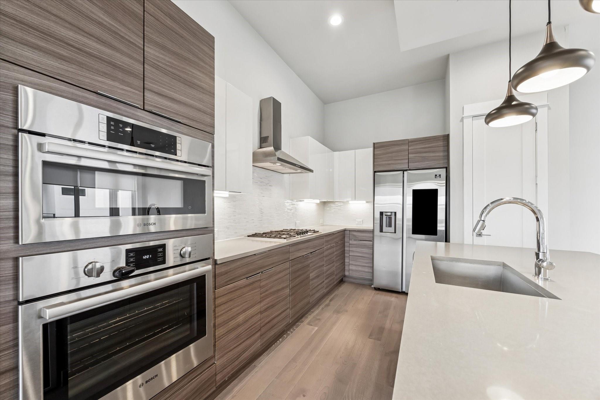 /monthThis end unit Museum District single family home in a gated community is in pristine condition and ready for move in! Located at the far end of the driveway, tenants can enjoy a private, gated side yard. The first floor includes a formal entry with closet, two car garage with a storage closet, bedroom with en-suite bath and side door access to the yard. On the second level is a spacious and open living area with a balcony, plus designer island kitchen (refrigerator included) and adjacent large dining space. Expansive windows mean wonderful natural light, also equipped with custom motorized shades. A half bath is tucked off the living area. On the third floor is a sanctuary of a primary suite with a dual vanity bath, tub and separate shower, as well as two walk-in closets. The third en-suite bedroom is also on the third level along with the utility closet (washer and dryer included). Both secondary bedrooms have walk-in closets.