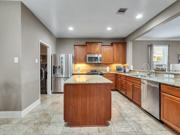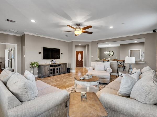 InteriorFloors:Tile,WoodBathroom Description:Primary Bath: Double Sinks,Primary Bath: Shower Only,Secondary Bath(s): Tub/Shower ComboBedroom Desc:2 Bedrooms Down,All Bedrooms Down,Primary Bed - 1st Floor,Walk-In ClosetKitchen Desc:Breakfast Bar,Kitchen open to Family Room,PantryRoom Description:1 Living Area,Breakfast Room,Family Room,Home Office/StudyHeating:Central ElectricCooling:Central GasConnections:Electric Dryer Connections,Washer ConnectionsDishwasher:YesDisposal:YesCompactor:NoMicrowave:YesRange:Gas CooktopOven:Electric OvenIce Maker:NoEnergy Feature:Attic Vents,Ceiling Fans,Digital Program ThermostatInterior:Crown Molding,High Ceiling,Window Coverings