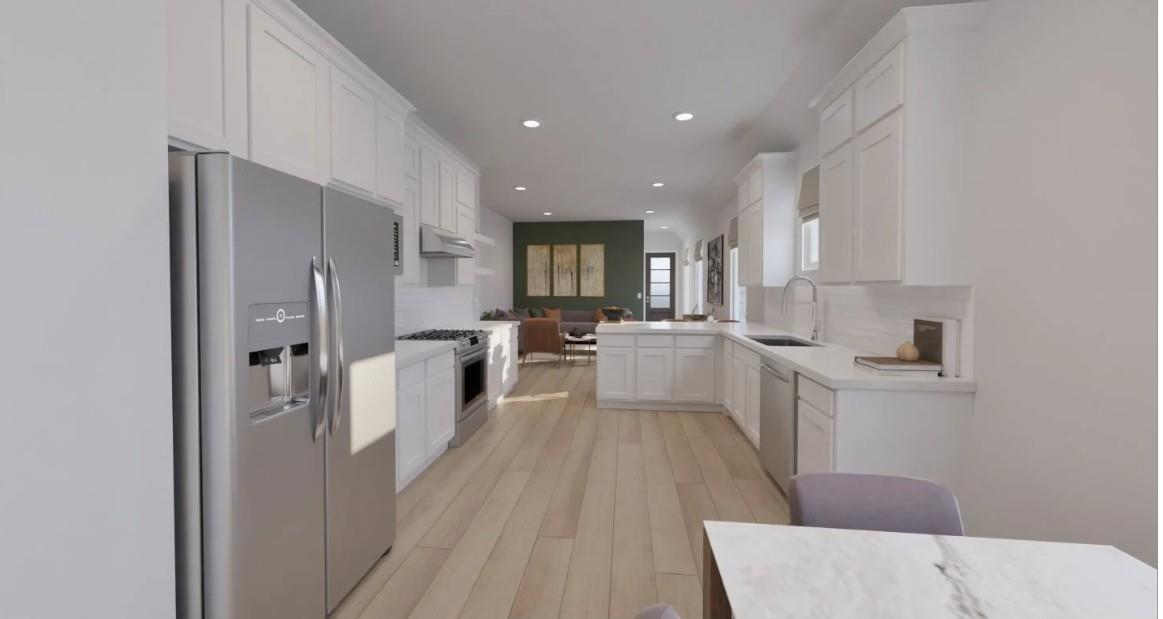 NEW! Lennar Village Builder New Avante Collection "Linfield" Plan with Elevation "A" in The Grand Prairie! This new four-bedroom home showcases a modern layout contained to a convenient single level. An open-concept floorplan with access to a covered patio promotes effortless entertaining and multitasking. Three secondary bedrooms can be found at the back of the home, and the luxurious owner’s suite is tucked away to the side for enhanced comfort and privacy, complete with an en-suite bathroom and generous walk-in closet.