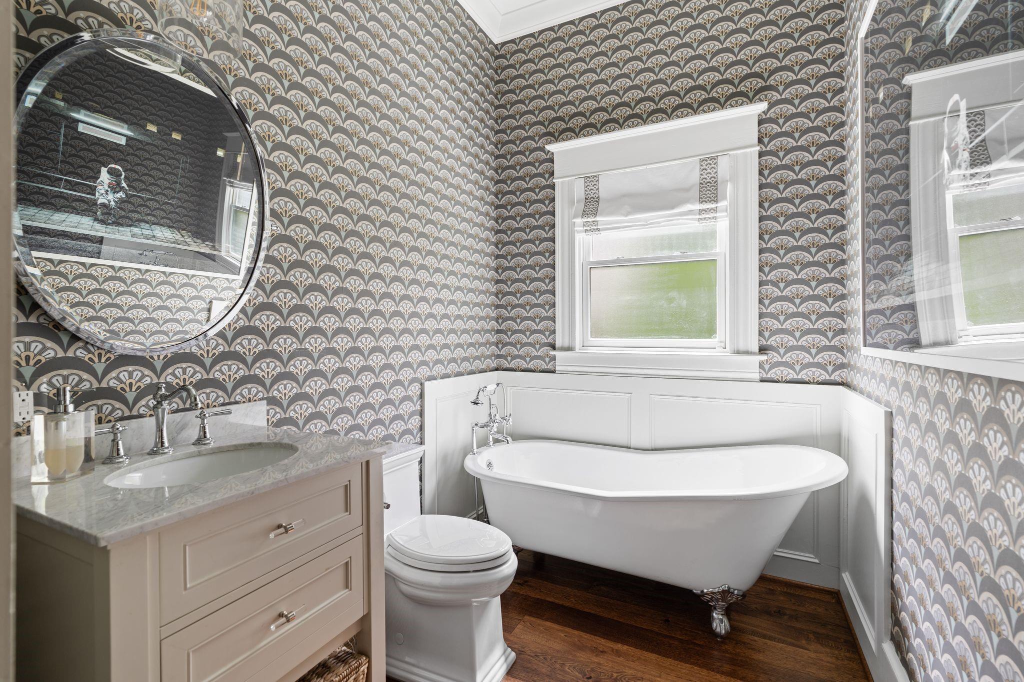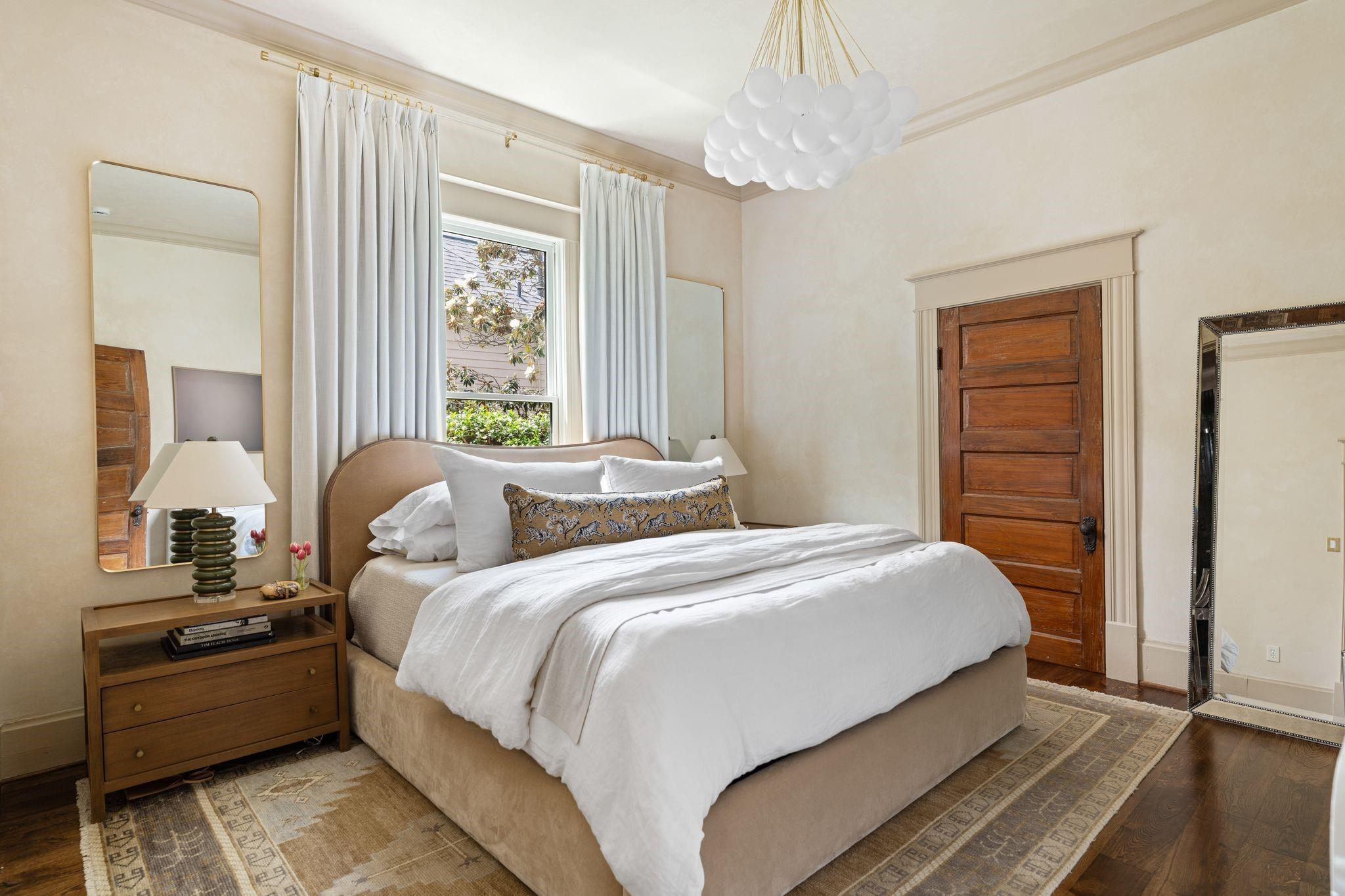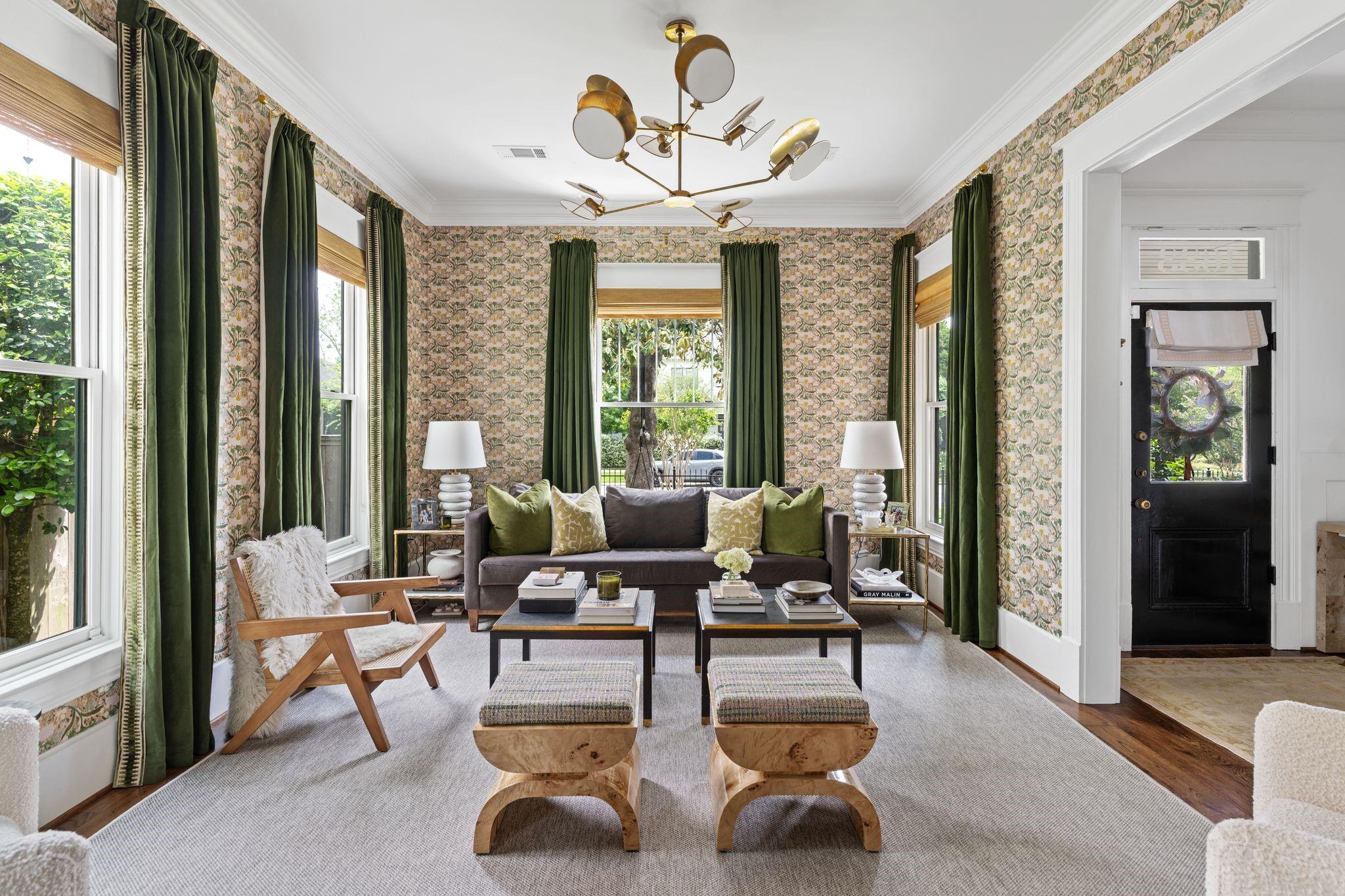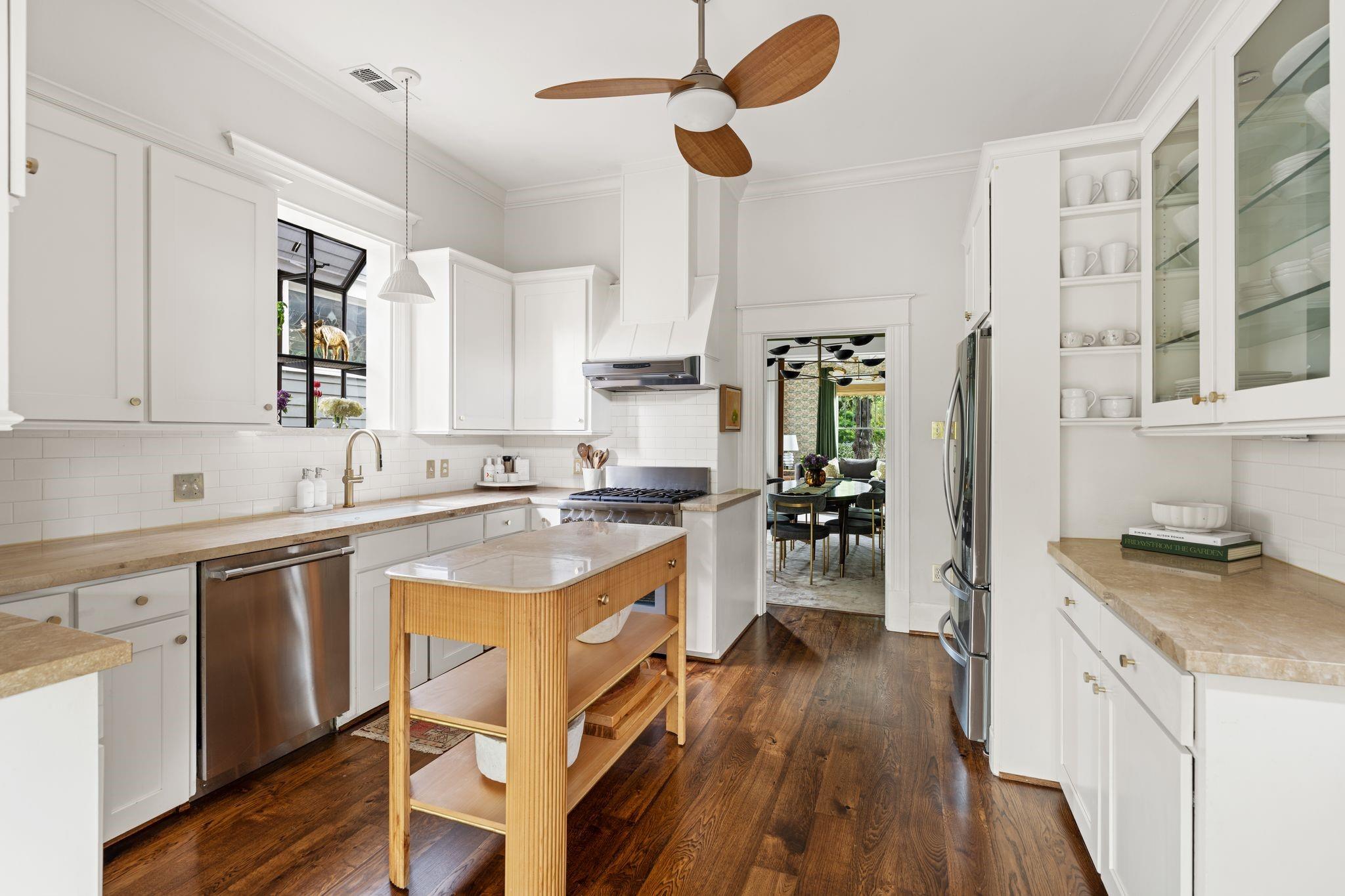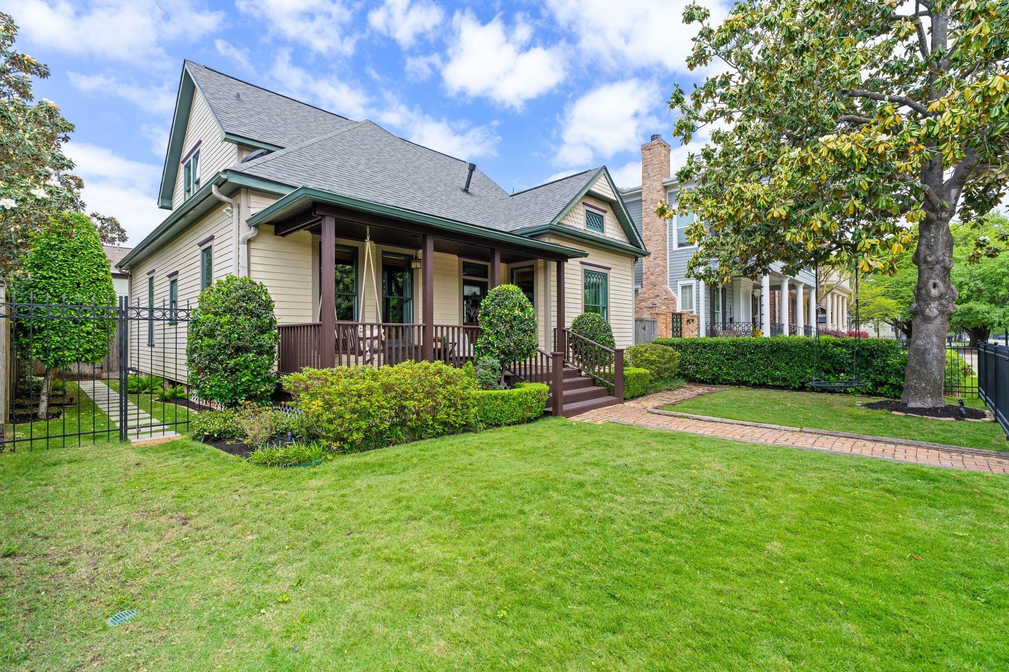 Gorgeous, designer renovated home w/575SF apt (total SF 3,067) on one of most desirable streets in Historic Heights. 10-ft ceilings & original doors/transom windows. White oak engineered hardwoods ('25), roof ('22), HVACs('22),double-paned windows. Formal living rm. Original oversized pocket doors to dining w/Visual Comfort fixture & new built-in bar w/wine fridge.Kitchen w/new Anthropologie island, Rejuvenation hardware & new Thermador gas range & dishwasher ('24). Breakfast rm w/built-ins, desk & new checkered floors ('25). Rare 1st-fl primary w/walk in closet & renovated bath. Flex space down ideal for study, family rm, or 4th bed w/full bath w/clawfoot tub adjacent. Mudroom/utility. 2 guest beds up w/ renovated bath. Spacious game rm. 1-bed apt w/kitchen- ideal space for guests, office, gym, or possible rental. Lush backyard w/covered deck, patio, new turf, heated pool.Lit holly trees outside every 1st-fl window for privacy & beautiful views. Alley access to oversized 2-car garage.