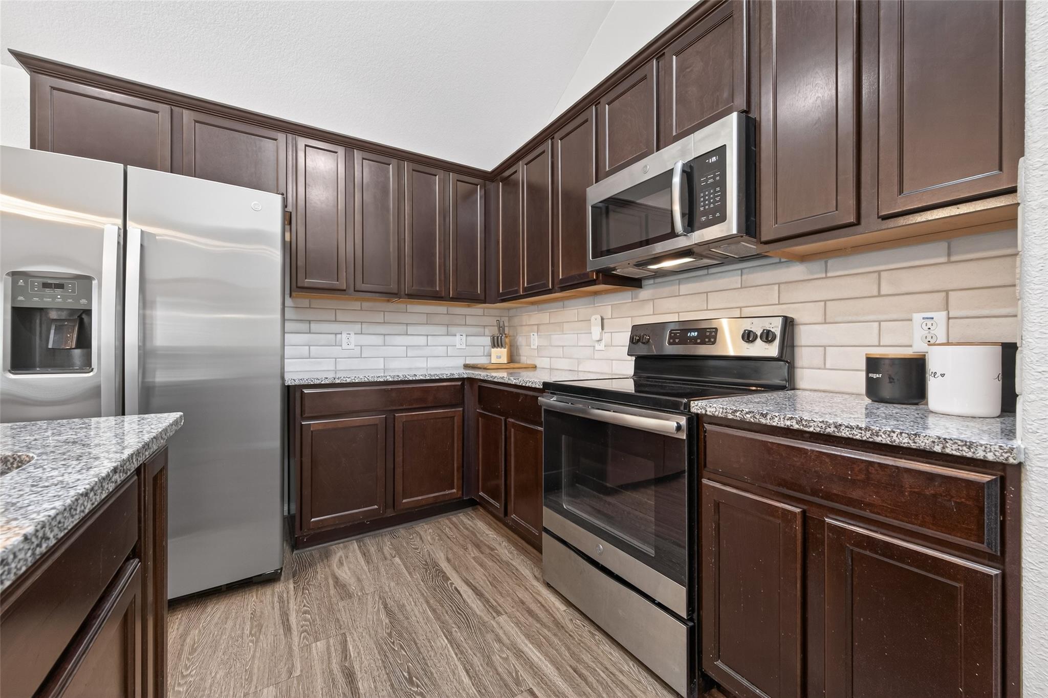 InteriorFloors:Carpet,Vinyl PlankCountertop:GraniteBathroom Description:Primary Bath: Double Sinks,Primary Bath: Separate Shower,Primary Bath: Soaking Tub,Secondary Bath(s): Tub/Shower ComboBedroom Desc:All Bedrooms Down,En-Suite Bath,Split Plan,Walk-In ClosetKitchen Desc:Breakfast Bar,Kitchen open to Family Room,PantryRoom Description:1 Living Area,Breakfast Room,Kitchen/Dining Combo,Utility Room in HouseHeating:Central ElectricCooling:Central ElectricConnections:Electric Dryer Connections,Gas Dryer Connections,Washer ConnectionsDishwasher:YesDisposal:YesMicrowave:YesRange:Electric Cooktop,Electric Range,Freestanding RangeOven:Electric OvenEnergy Feature:Ceiling Fans,Digital Program Thermostat,Insulated Doors,Insulated/Low-E windowsInterior:Fire/Smoke Alarm,Formal Entry/Foyer,High Ceiling,Window Coverings