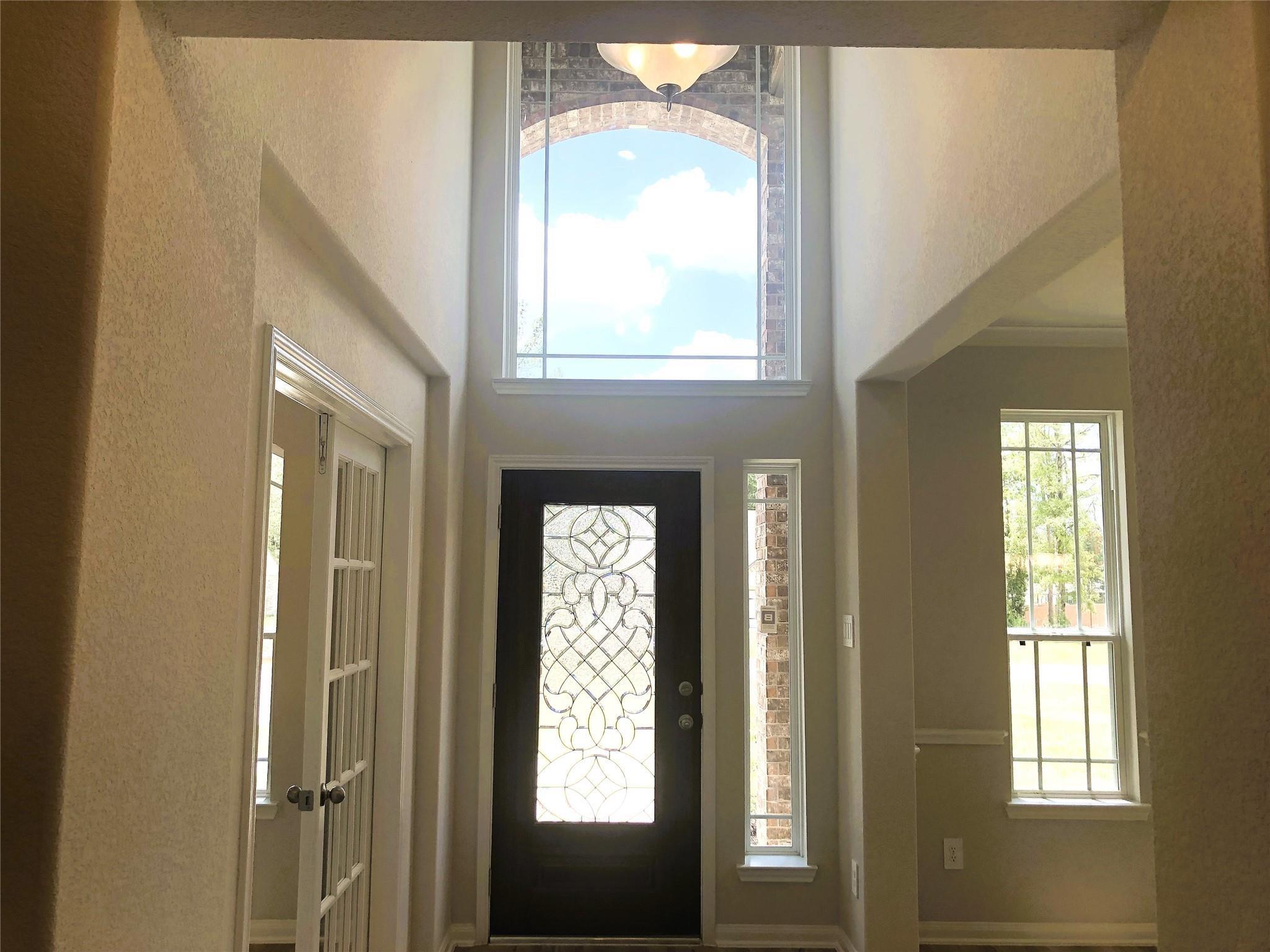 Grand two-story home with 3,247 sq ft, 4 bedrooms, 3.5 baths, and a 3-car garage on over 1 acre! Inviting entry features an elegant formal dining room and a private study with glass French doors. The dream kitchen offers upgraded 42" cabinets, granite countertops, built-in oven, gas cooktop, and a 12-ft oversized island overlooking the spacious family room with soaring ceilings and a fireplace. The oversized primary suite is downstairs with high ceilings and a luxurious bath featuring dual vanities, garden tub, and separate shower. Luxury vinyl wood-plank flooring throughout main areas; carpet in bedrooms and upstairs only. Upstairs includes a large game room and 3 spacious bedrooms with 2 full baths. Additional features: propane gas, covered patio, surround-sound prewire, structured wiring panel, USB/media outlets, and front gutters. Over 1 acre lot allows space for a shop, boat, RV, or trailer. Easy access to I-45, shopping, and dining. Call today to view this beautiful home!