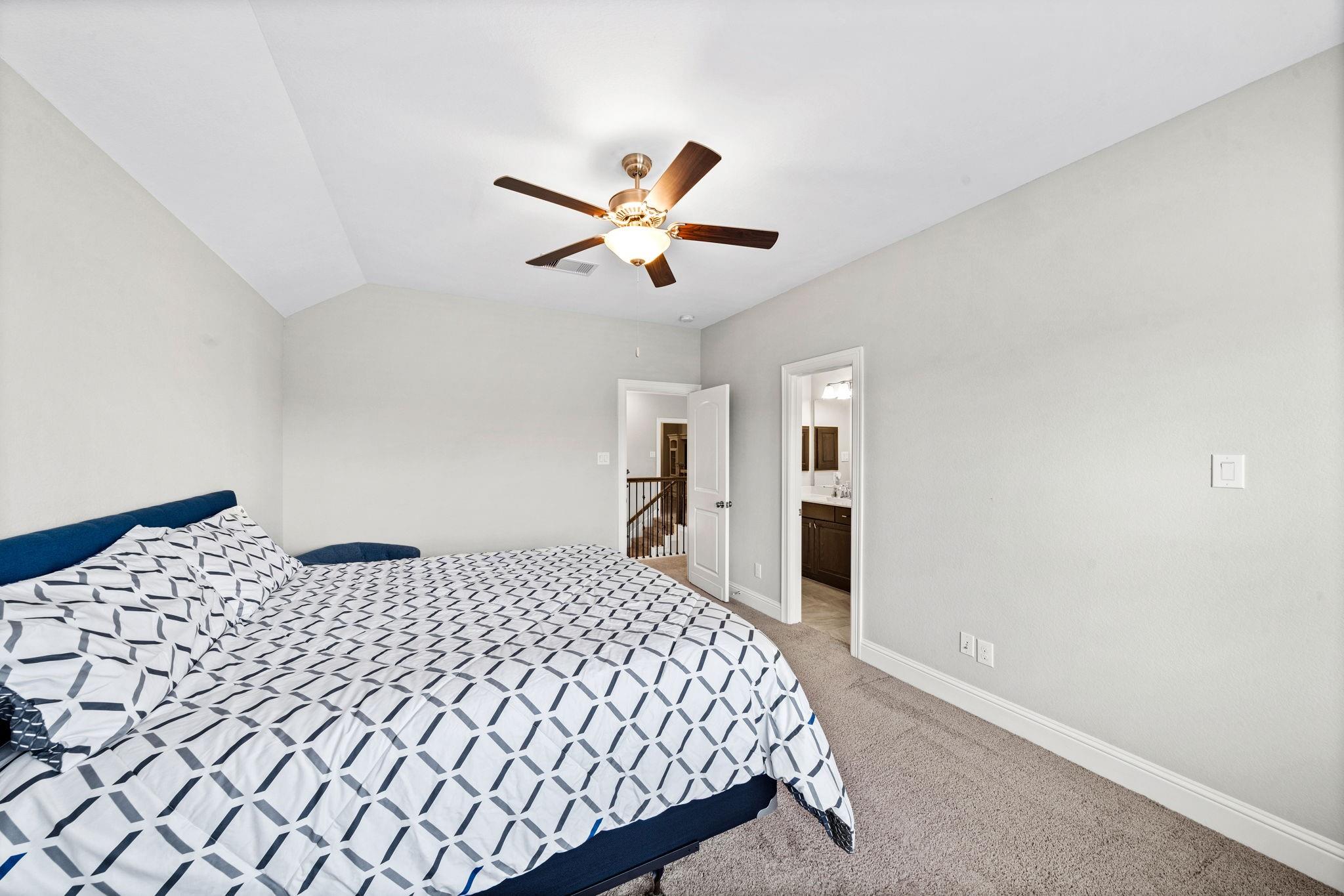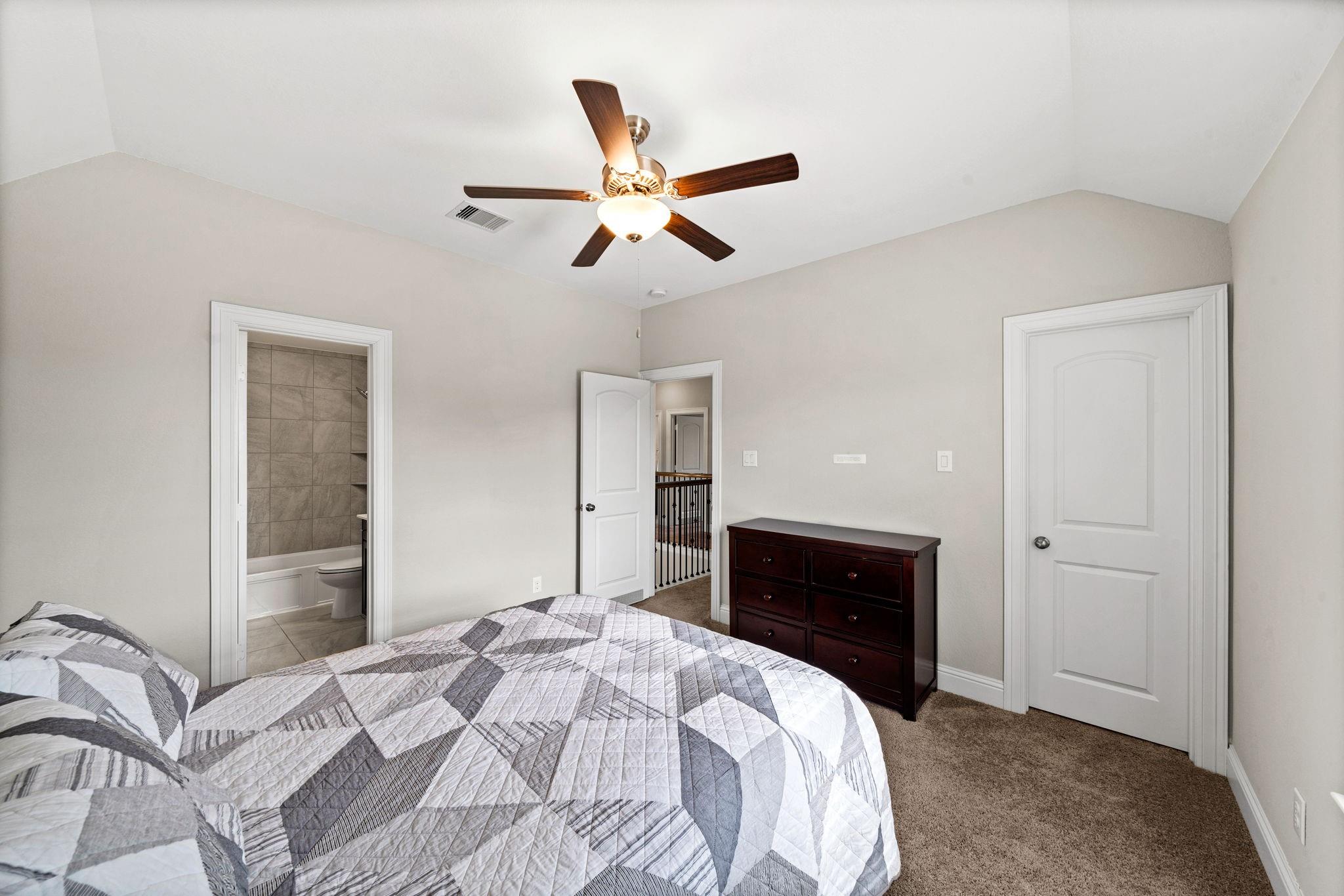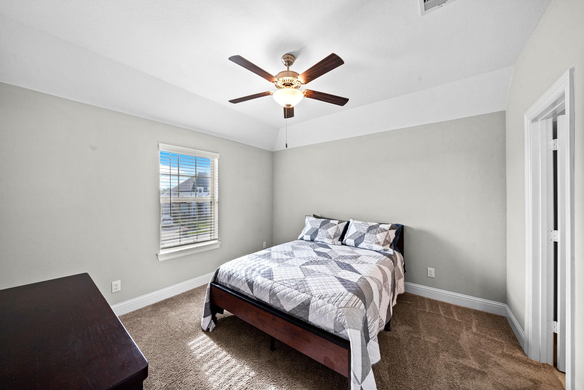 Welcome to your next home! This 4-bed, 4.5-bath residence in Falls at Dry Creek is designed with an effortless, open-concept layout that prioritizes comfort and everyday living. Two bedrooms down, both with full baths, offer flexibility for guests or multi-generational living. Soaring ceilings and a gas fireplace anchor the main living area, opening to a kitchen with oversized island, double ovens, and generous storage. Formal dining and butler’s pantry add function without sacrificing flow. The primary suite is privately tucked at the back with backyard views, dual vanities, soaking tub, and walk-in shower. Upstairs features two additional bedrooms with en-suite baths, plus a large game room and separate media room. Oversized lot with covered patio and room to expand or customize. Community amenities include pool, parks, and clubhouse.