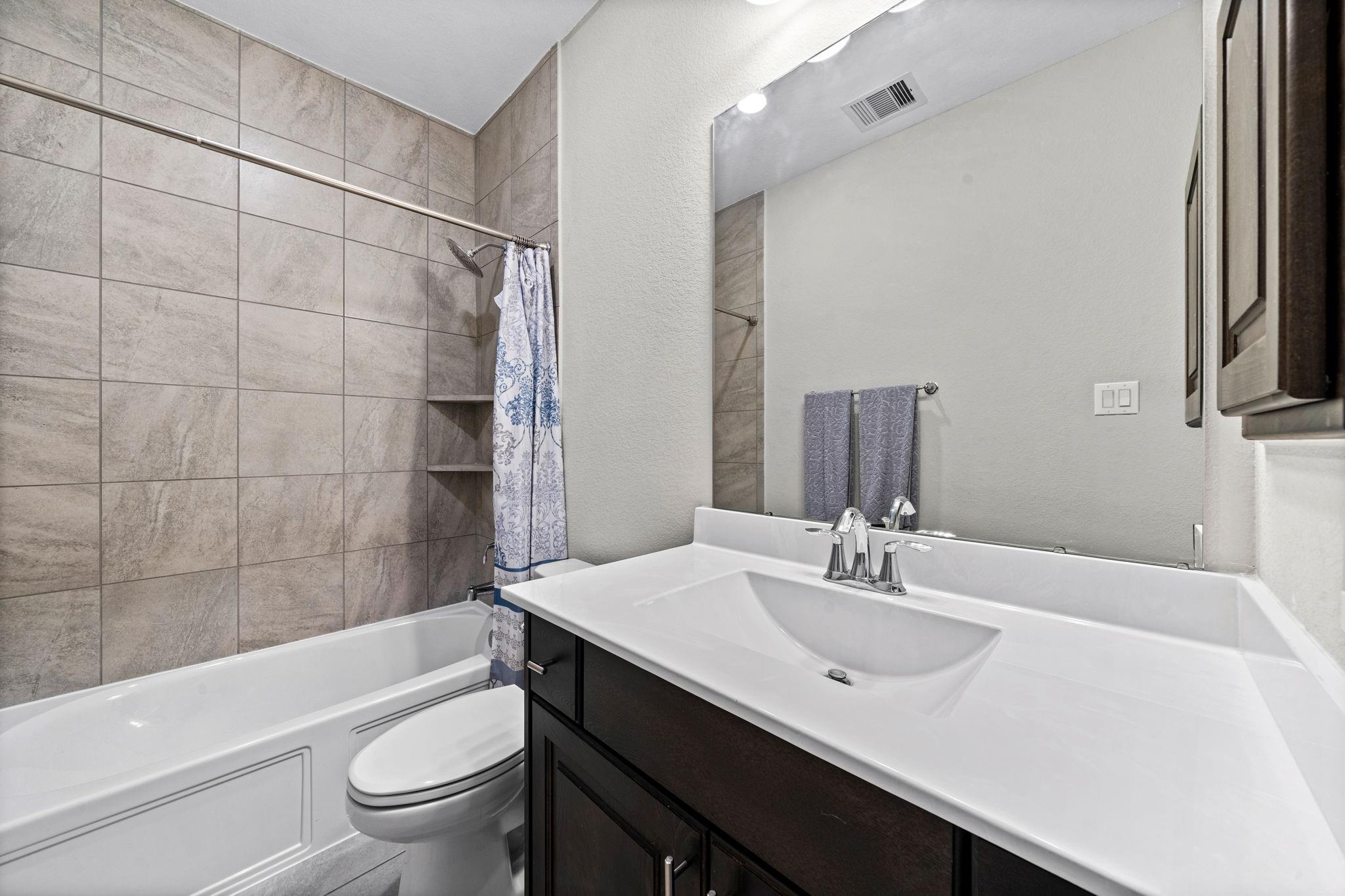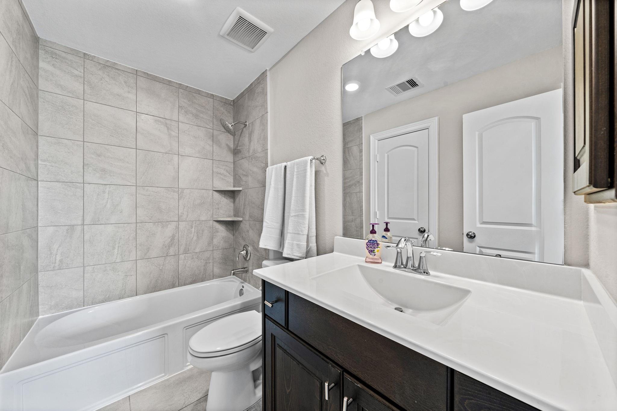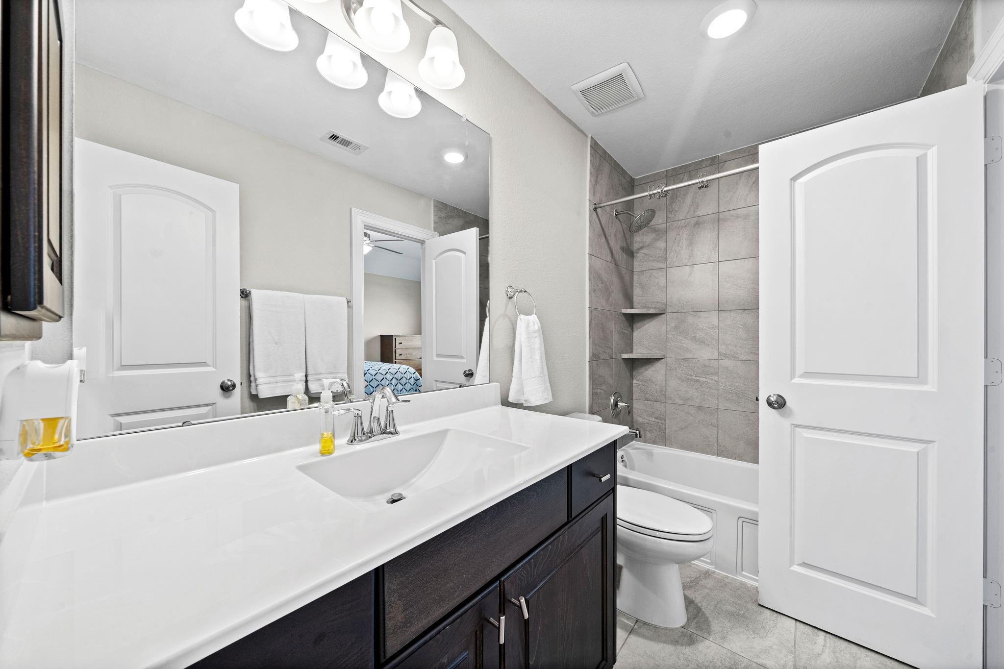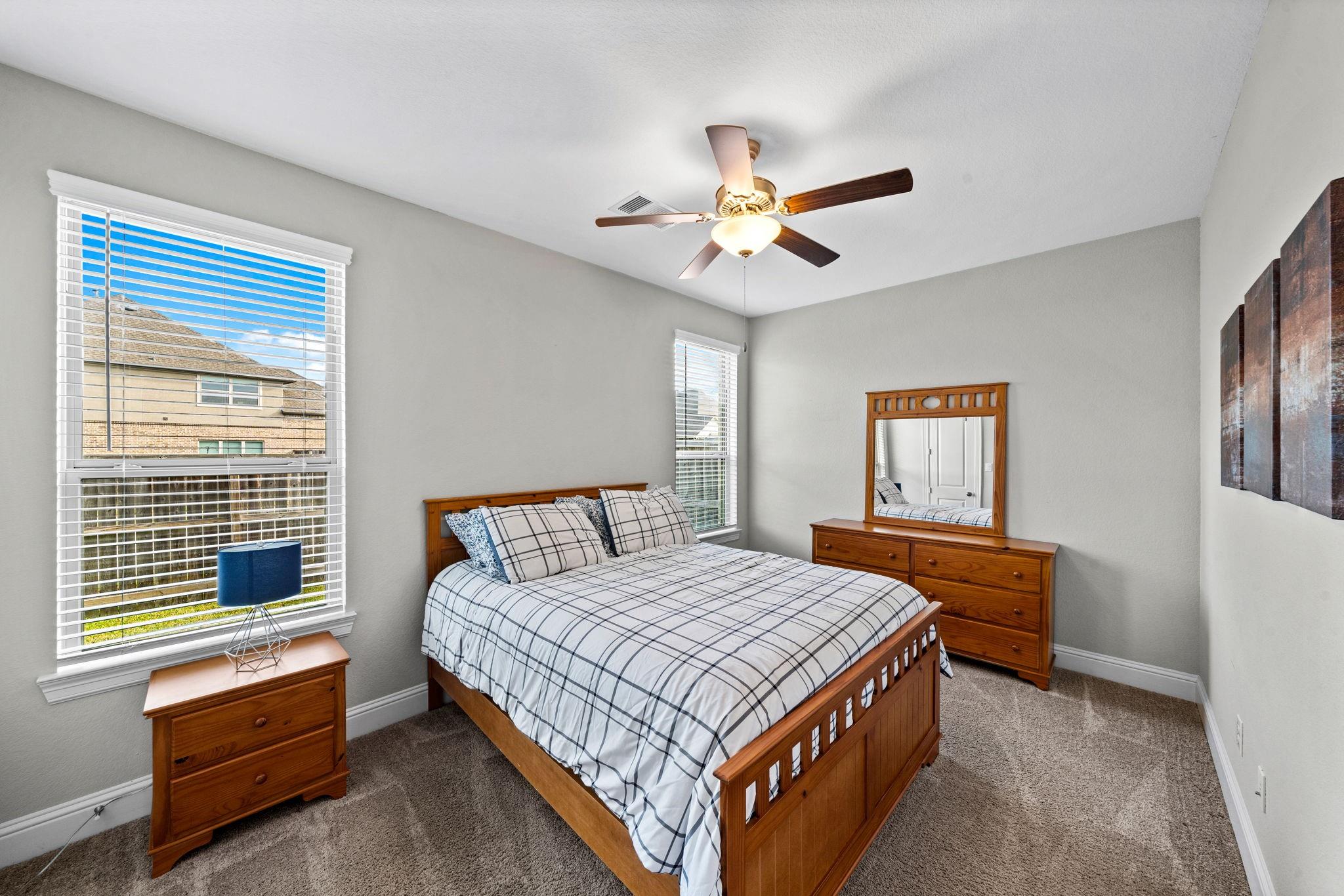 Welcome to your next home! This 4-bed, 4.5-bath residence in Falls at Dry Creek is designed with an effortless, open-concept layout that prioritizes comfort and everyday living. Two bedrooms down, both with full baths, offer flexibility for guests or multi-generational living. Soaring ceilings and a gas fireplace anchor the main living area, opening to a kitchen with oversized island, double ovens, and generous storage. Formal dining and butler’s pantry add function without sacrificing flow. The primary suite is privately tucked at the back with backyard views, dual vanities, soaking tub, and walk-in shower. Upstairs features two additional bedrooms with en-suite baths, plus a large game room and separate media room. Oversized lot with covered patio and room to expand or customize. Community amenities include pool, parks, and clubhouse.