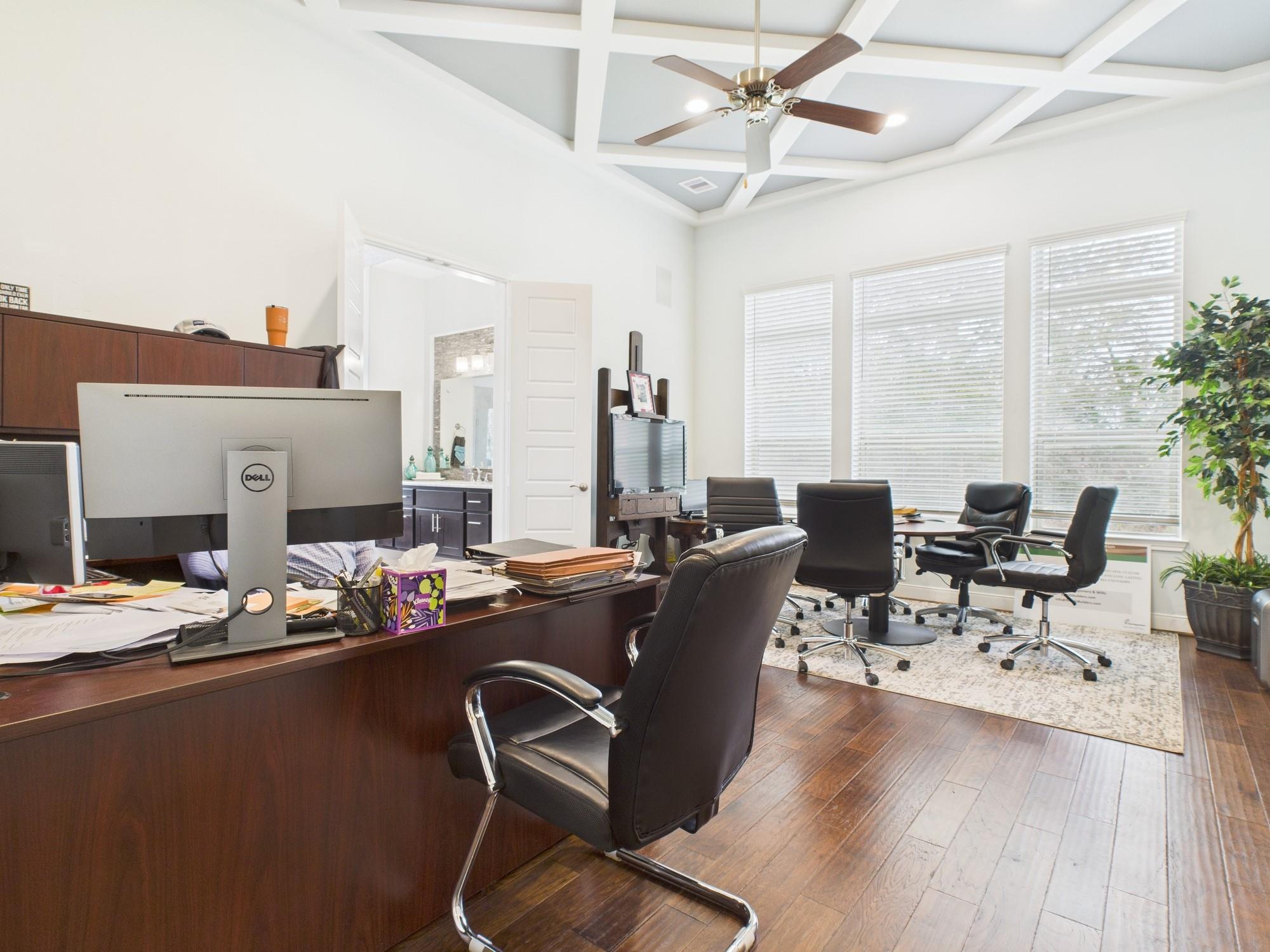 Prime Commercial property with exceptional visibility and access frontage along Texas 75 North and also on Interstate 45 Feeder. This impeccably maintained primary structure has 7 full separate offices/board rooms and two full baths, a lovely sitting area, a full kitchen, veranda, and an aerobic septic and well. A separate storage building sits to the North side of the main office building. There are 19 parking spaces with a dual gated entrance. Situated on a 4.33 acre parcel, two acres of the property are wooded and unimproved, awaiting future expansion or development. Very close proximity, to eateries, shopping and HEB and Kroger. Located in the high growth area of Willis, Texas.