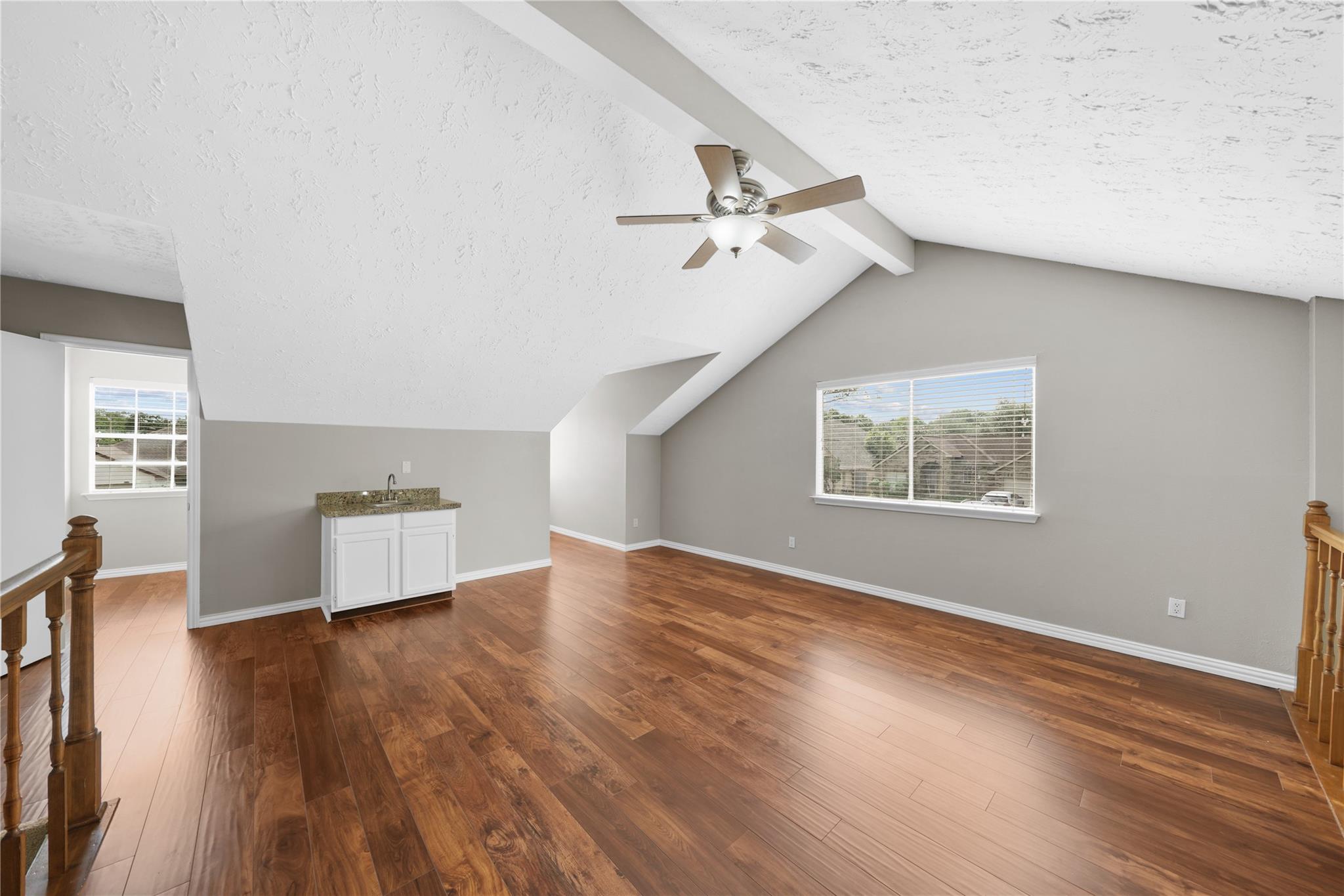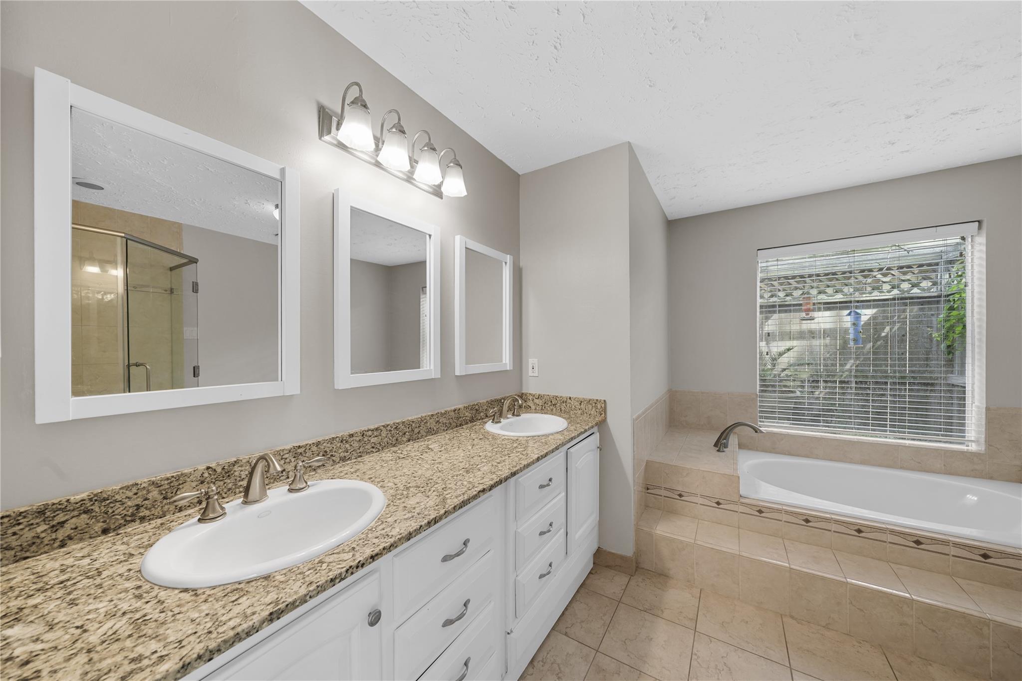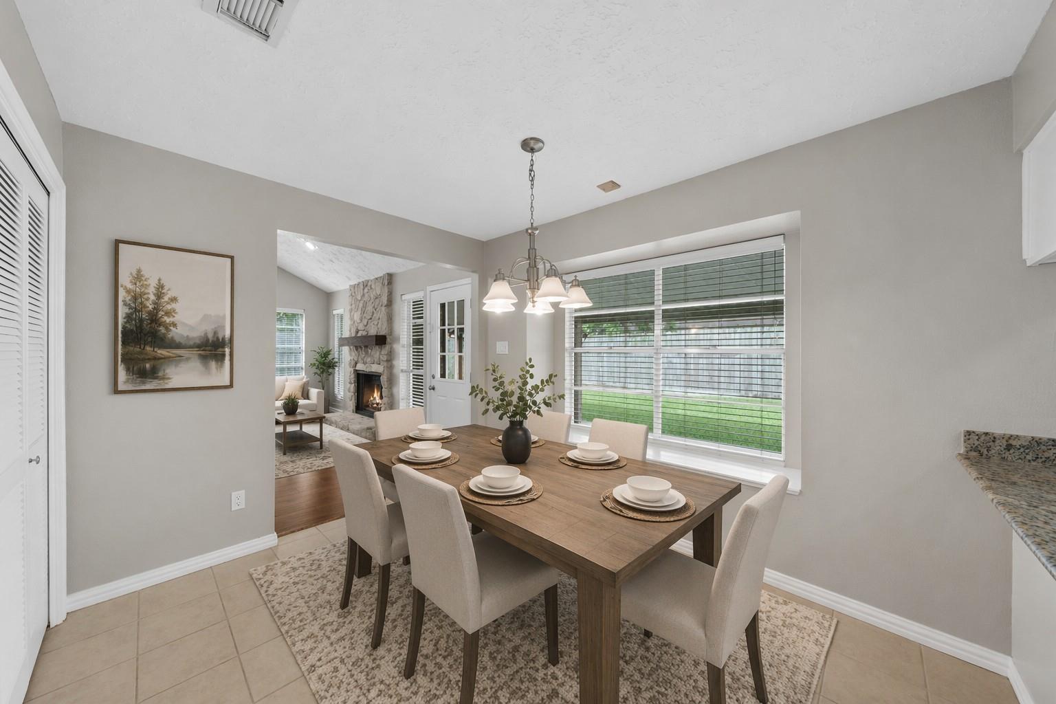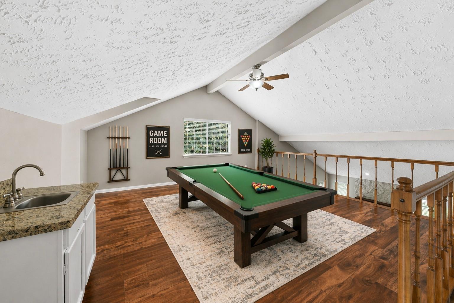 Charming, well-maintained home on a desirable corner lot with fresh paint throughout, including the exterior. The oversized primary suite offers a private retreat with an ensuite bath featuring a separate shower & relaxing soaking tub. Two spacious secondary bedrooms provide comfort and flexibility, with one offering dual closets for extra storage. Enjoy a large dining area & inviting family room with a cozy fireplace, perfect for gatherings. Upstairs, a versatile game room with a wet bar creates the ideal space for entertaining or flexible living. The kitchen shines with granite countertops and freshly painted cabinets, offering a clean, updated look. Step outside to an oversized backyard with a relaxing patio, perfect for morning coffee or unwinding in the evenings. Conveniently located within minutes of Cullinan Park and with a community pool and playground nearby. This home blends comfort, style, & functionality in a great location, & clearly reflects pride of ownership throughout.