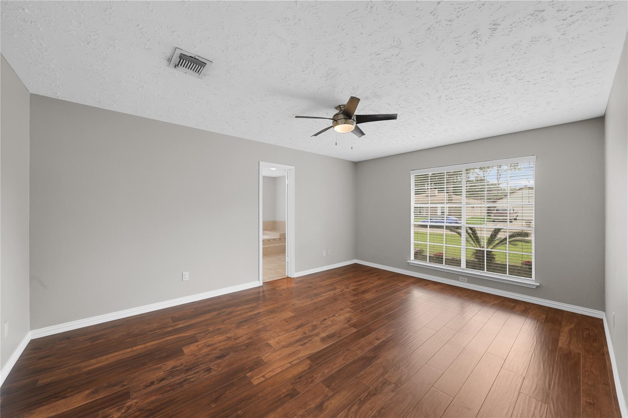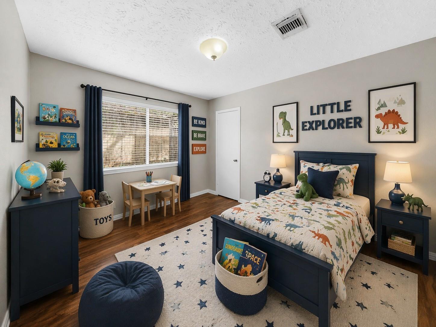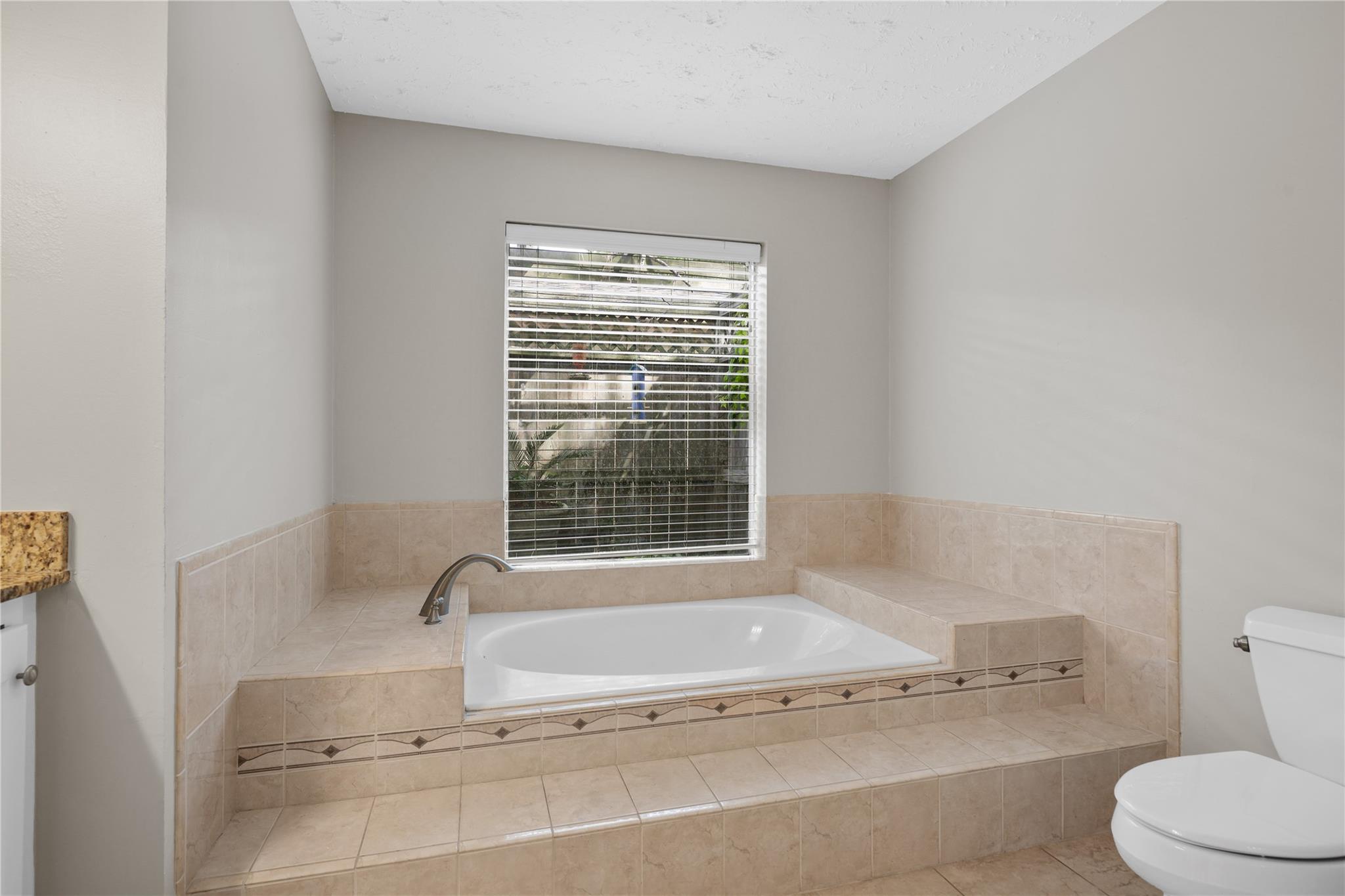 Charming, well-maintained home on a desirable corner lot with fresh paint throughout, including the exterior. The oversized primary suite offers a private retreat with an ensuite bath featuring a separate shower & relaxing soaking tub. Two spacious secondary bedrooms provide comfort and flexibility, with one offering dual closets for extra storage. Enjoy a large dining area & inviting family room with a cozy fireplace, perfect for gatherings. Upstairs, a versatile game room with a wet bar creates the ideal space for entertaining or flexible living. The kitchen shines with granite countertops and freshly painted cabinets, offering a clean, updated look. Step outside to an oversized backyard with a relaxing patio, perfect for morning coffee or unwinding in the evenings. Conveniently located within minutes of Cullinan Park and with a community pool and playground nearby. This home blends comfort, style, & functionality in a great location, & clearly reflects pride of ownership throughout.