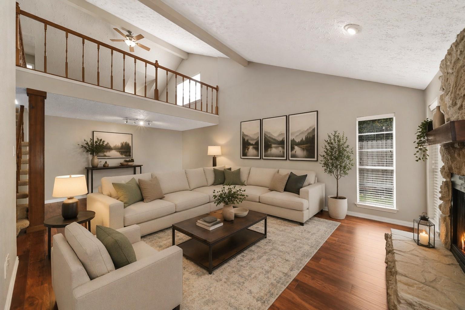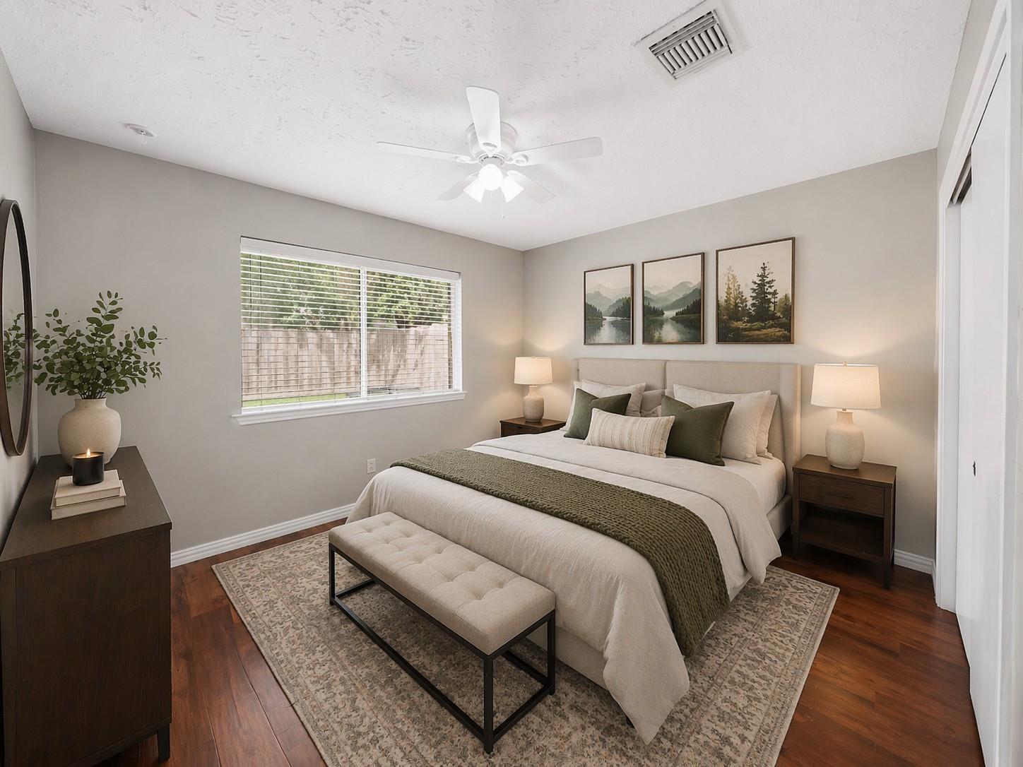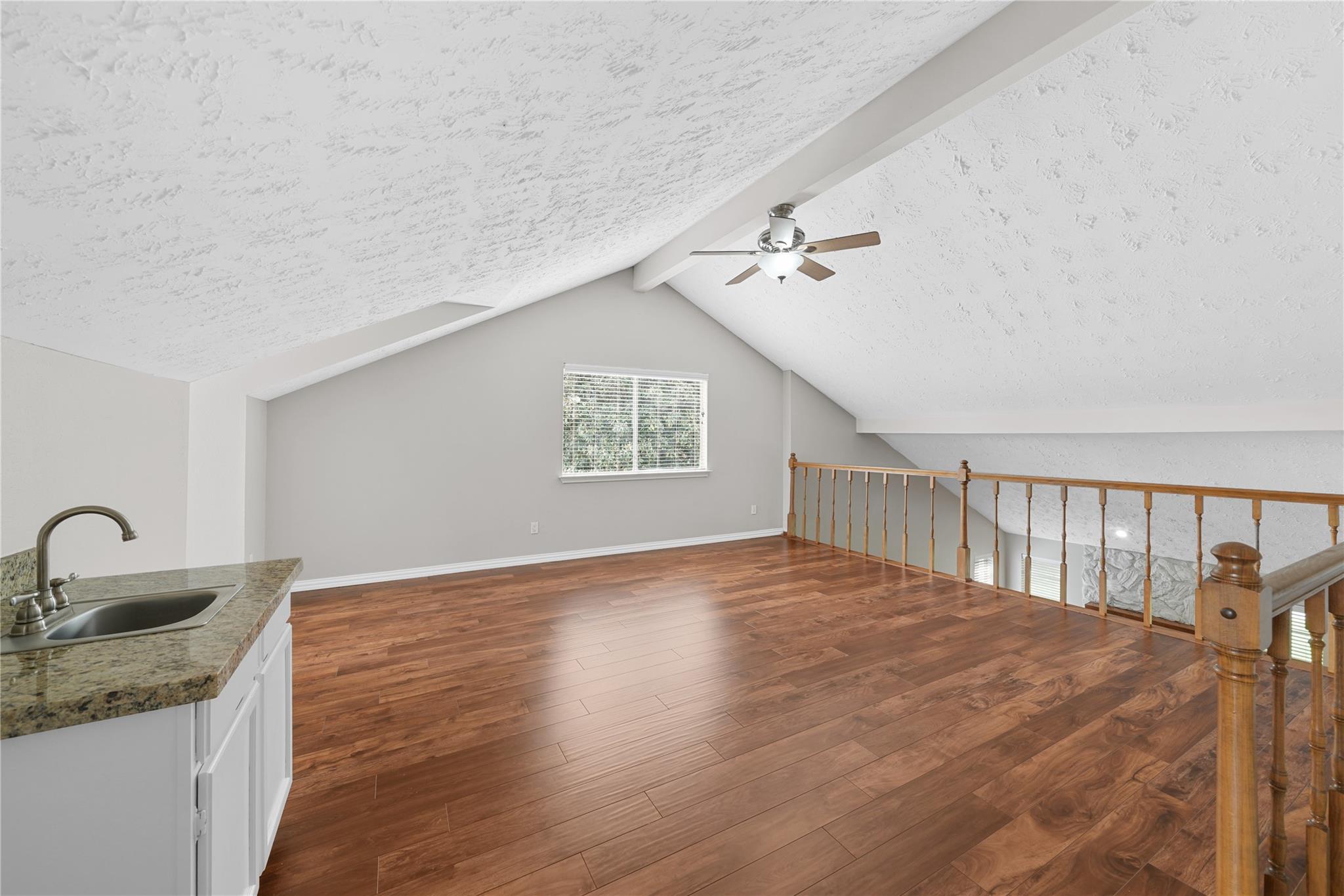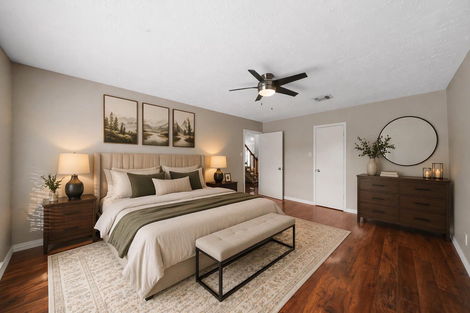 Charming, well-maintained home on a desirable corner lot with fresh paint throughout, including the exterior. The oversized primary suite offers a private retreat with an ensuite bath featuring a separate shower & relaxing soaking tub. Two spacious secondary bedrooms provide comfort and flexibility, with one offering dual closets for extra storage. Enjoy a large dining area & inviting family room with a cozy fireplace, perfect for gatherings. Upstairs, a versatile game room with a wet bar creates the ideal space for entertaining or flexible living. The kitchen shines with granite countertops and freshly painted cabinets, offering a clean, updated look. Step outside to an oversized backyard with a relaxing patio, perfect for morning coffee or unwinding in the evenings. Conveniently located within minutes of Cullinan Park and with a community pool and playground nearby. This home blends comfort, style, & functionality in a great location, & clearly reflects pride of ownership throughout.