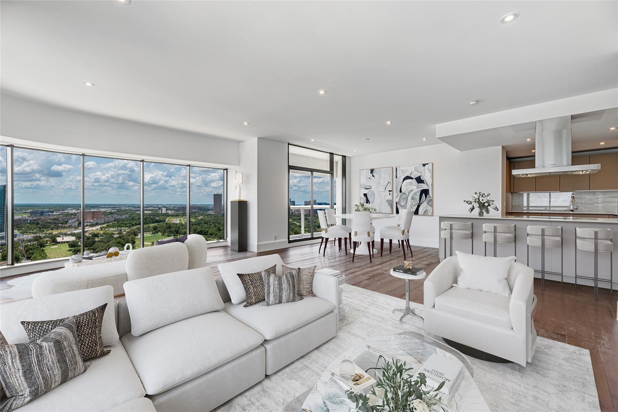 The Parklane offers the best in urban luxury within a stone's throw of Hermann Park, the Museum District and the Houston Medical Center. Extensively renovated, this luxury full service 35-story tower boasts world class amenities, unmatched views and finishes worthy of Architectural Digest, including German-built Eggersmann® cabinetry, Bosch® and Thermador® appliances, expansive windows, wide plank wood floors, spa-like bathrooms and so much more. This move in ready, luxurious three bedroom, two and one half bathroom Penthouse features a thoughtful approach to modern design and attention to detail. These include a designer kitchen island with panelized Thermador® appliances, primary bathroom with floating cabinetry and backlit vanity mirrors, balcony access from each room, nine-foot ceilings, recessed LED lighting, neutral color palette, expansive windows affording tons of natural light and stunning views from the 34th floor.