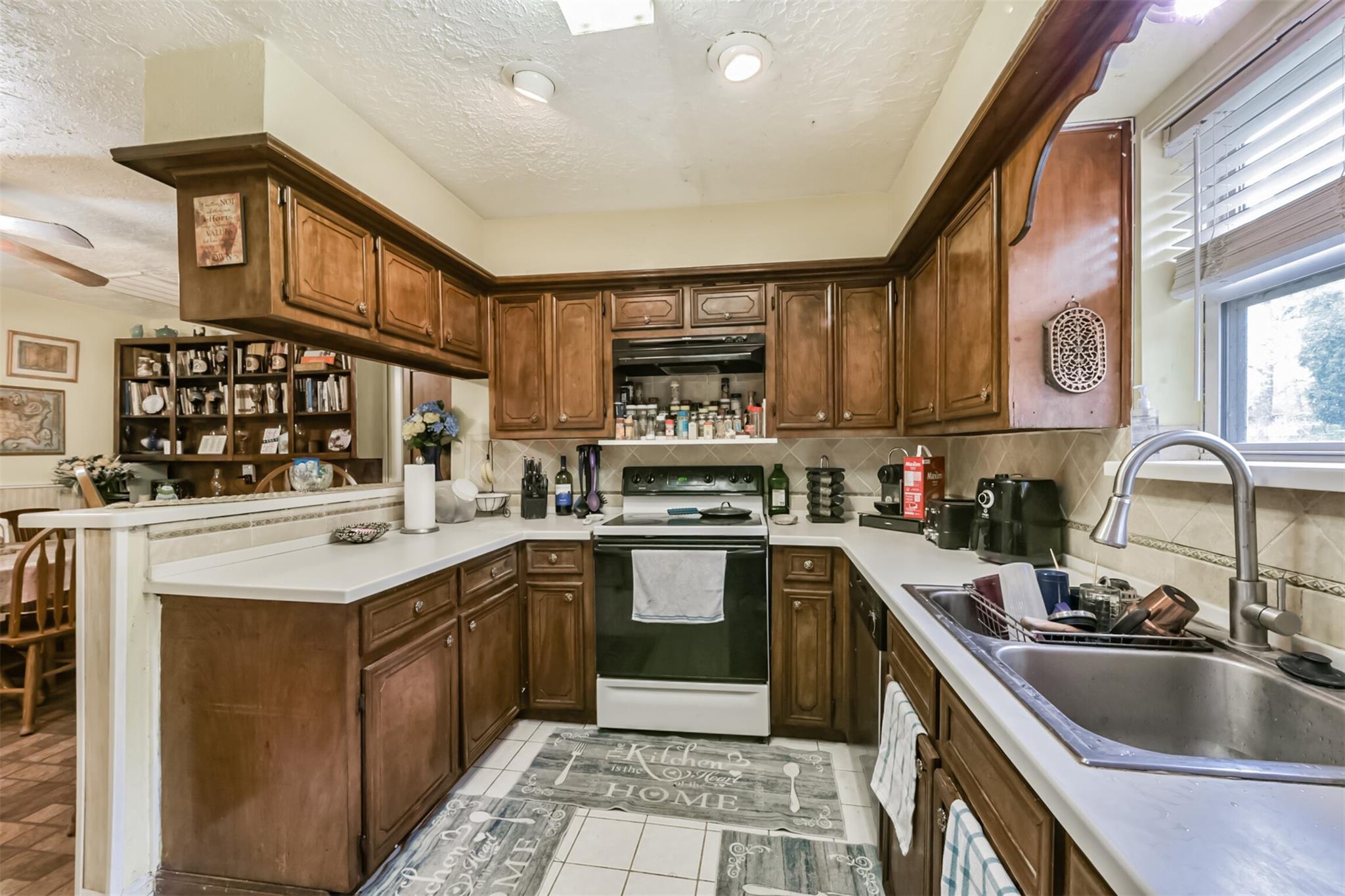 InteriorFireplace:1/Wood Burning FireplaceFloors:Carpet,Laminate,TileBathroom Description:Primary Bath: Tub/Shower Combo,Secondary Bath(s): Tub/Shower Combo,Vanity AreaBedroom Desc:All Bedrooms Down,En-Suite Bath,Primary Bed - 1st Floor,Split Plan,Walk-In ClosetKitchen Desc:Breakfast Bar,Kitchen open to Family Room,PantryRoom Description:1 Living Area,Breakfast Room,Entry,Gameroom Down,Kitchen/Dining Combo,Living Area - 1st Floor,Utility Room in HouseHeating:Central GasCooling:Central ElectricConnections:Electric Dryer Connections,Washer ConnectionsDishwasher:YesDisposal:YesCompactor:NoMicrowave:NoRange:Electric RangeOven:Electric OvenIce Maker:NoEnergy Feature:Ceiling Fans,Digital Program Thermostat,Energy Star Appliances,Insulated/Low-E windowsInterior:Fire/Smoke Alarm,Formal Entry/Foyer,High Ceiling,Vaulted Ceiling,Window Coverings