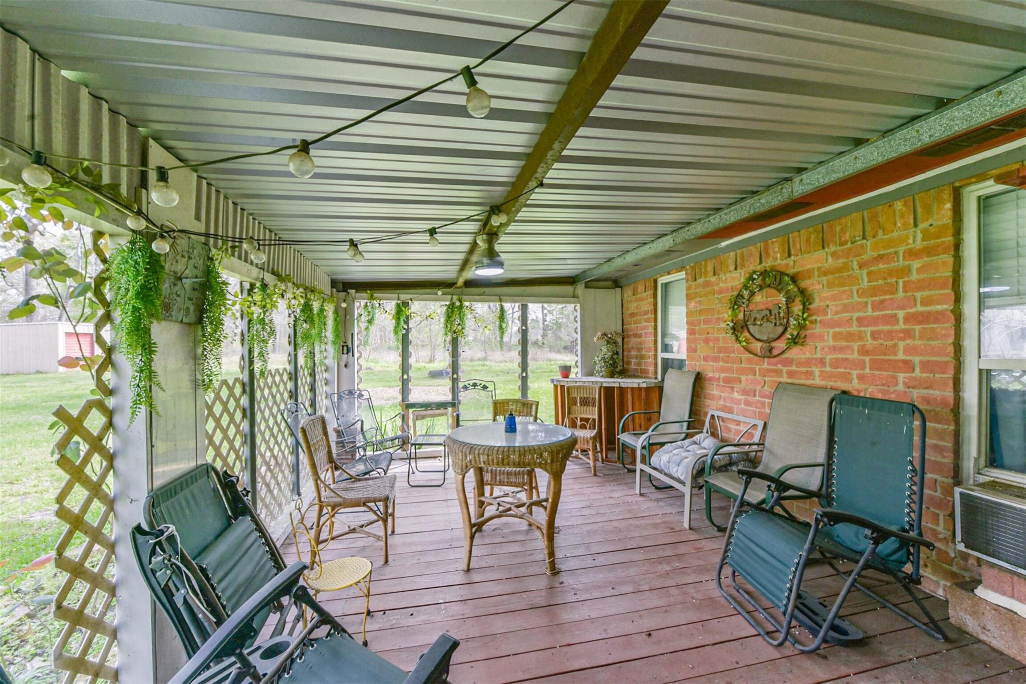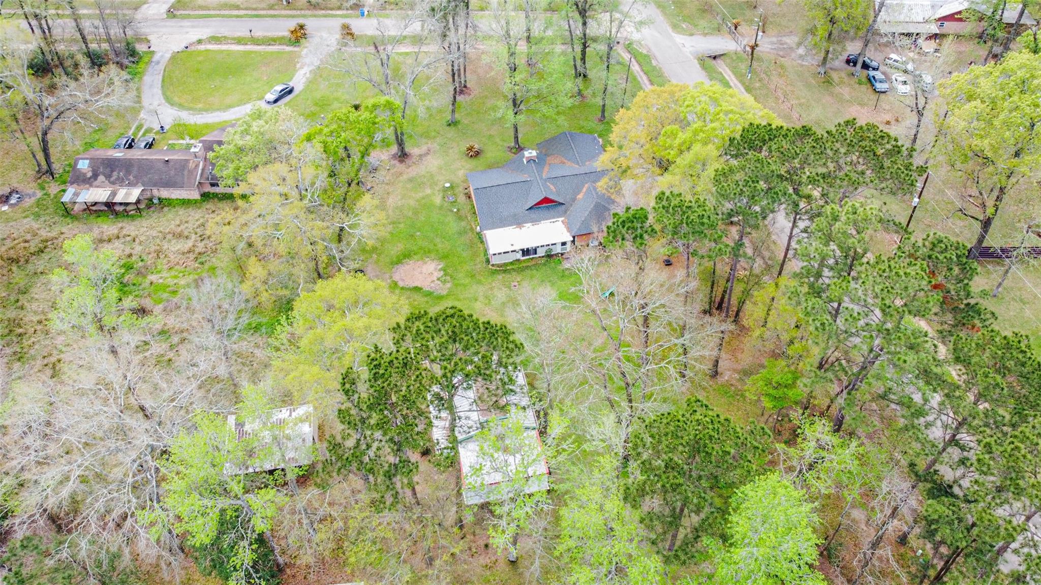 Beautiful country property in one of the nation’s fastest-growing counties! Situated on a large corner lot, this home offers space inside and out with a 24x24 steel-frame workshop with concrete slab and an additional 24x20 storage shed, perfect for storage, hobbies, or projects. Enjoy relaxing on the expansive screened-in back porch. Inside, the living room features soaring ceilings, a brick fireplace. The kitchen includes hard-surface countertops, backsplash, and updated appliances, including refrigerator, dishwasher, and garbage disposal. Recent updates include all new double-pane windows, newer roof with ridge vents, new HVAC system, new water heater, and new flooring in the living room & secondary bedrooms. The primary suite offers a walk-in closet & updated bath. Garage converted to game room but can easily be converted back. No MUD taxes and no HOA. Central water and aerobic septic. Easy access to SH 242, I-45, and The Woodlands, with shopping, dining, and entertainment nearby.