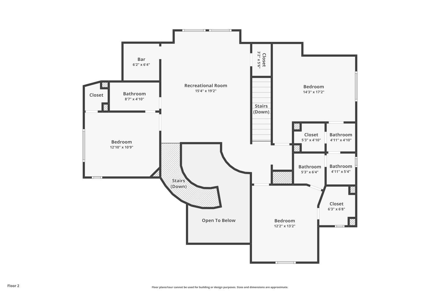 Second FloorBedroom:13x11Bedroom 2:11x14Bedroom 3:13x12Game Room:15x18