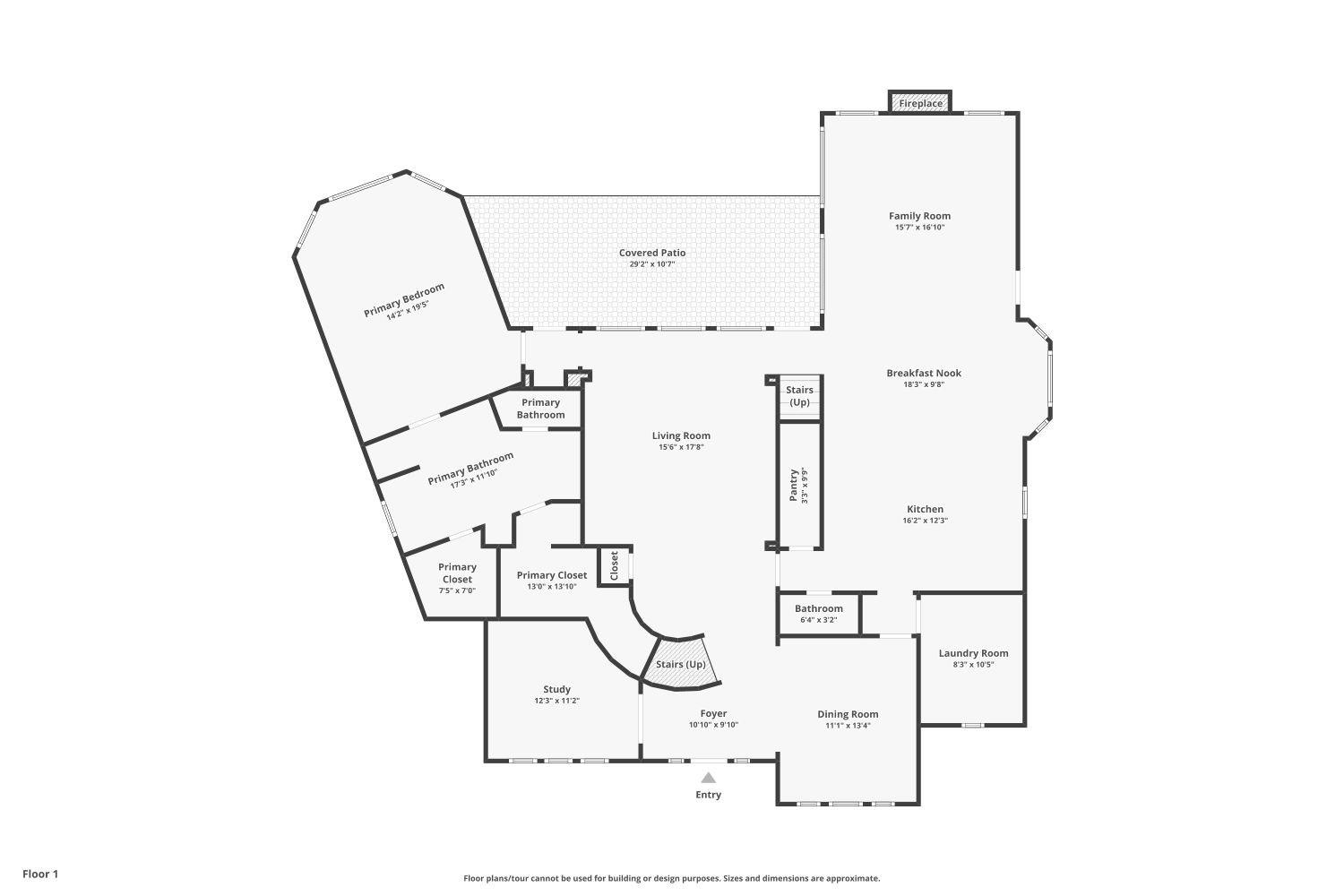 First FloorLiving:15x18Family Room:16x13Dining:13x11Kitchen:15x17Primary Bedroom:14x19Home Office/Study:12x10