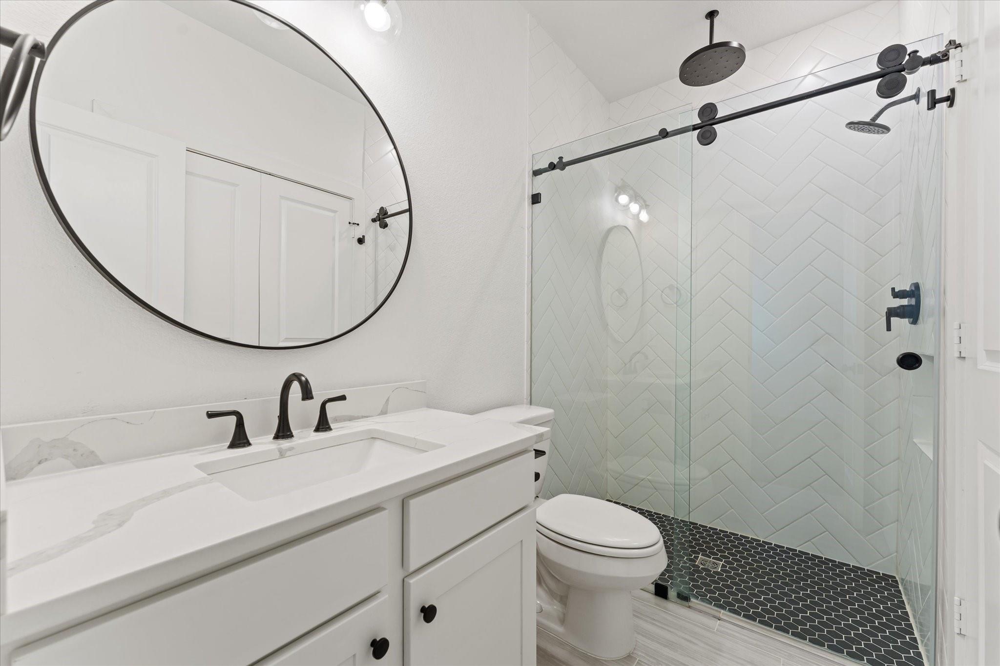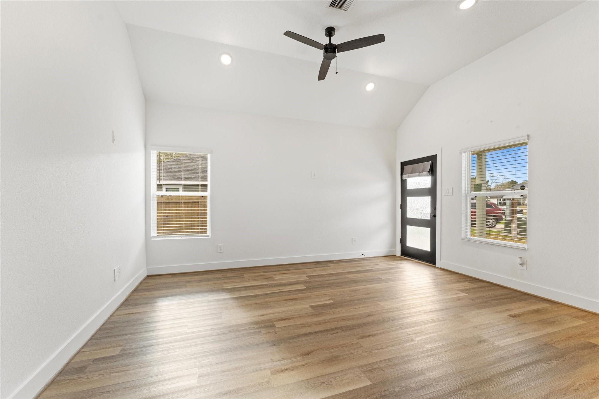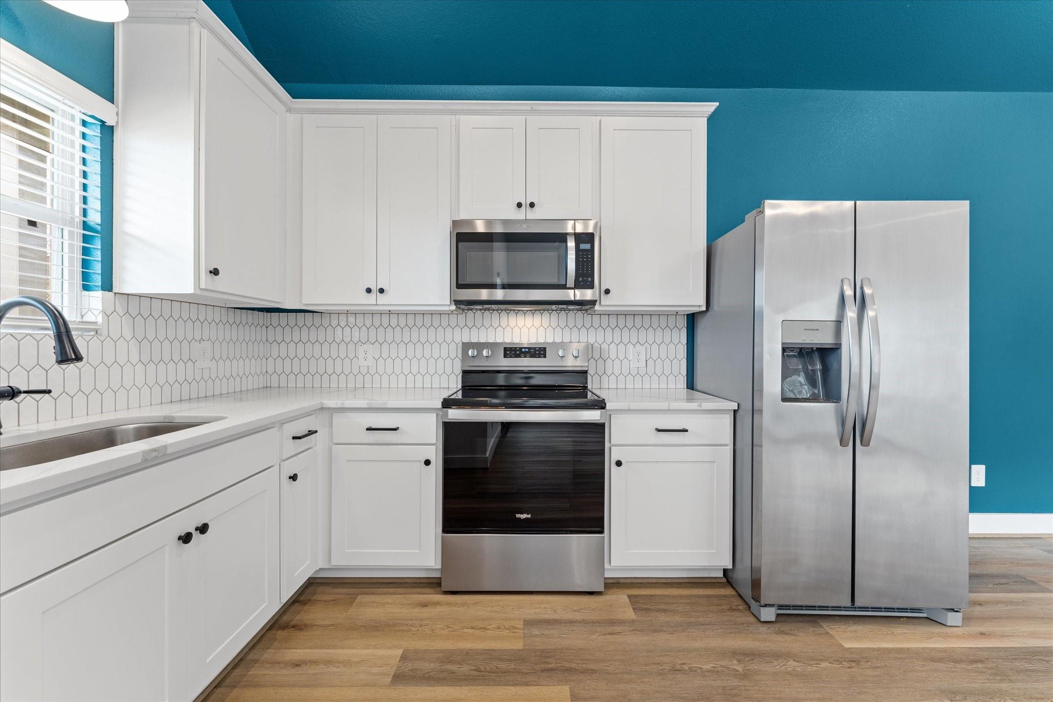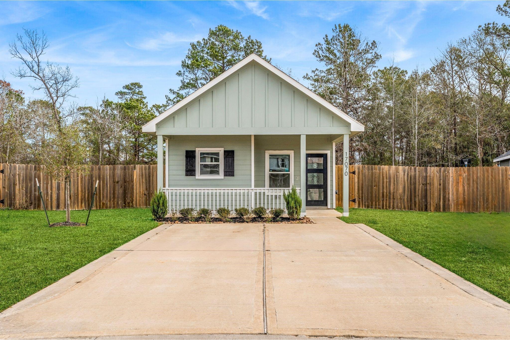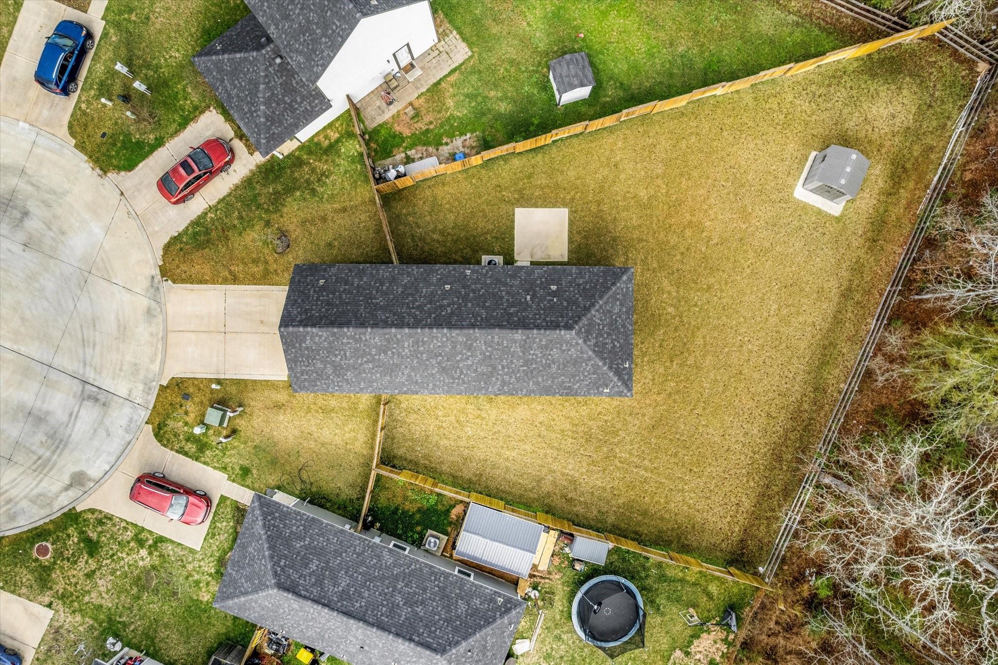 Located at the end of a quiet cul-de-sac in Marie Village, this 3-bedroom, 2-bath home stands out w/ the LARGEST LOT in the community & an expansive backyard designed for everyday enjoyment & entertainment. The interior feels open & elevated w/ 9’ ceilings, an 11’ great room ceiling, modern doors & trim, vinyl floors, LED-style recessed lighting & ceiling fans in every room. The kitchen delivers both style & function w/ white soft-close cabinets, 42” upper cabinets, quartz countertops, designer backsplash, upgraded Whirlpool SS appliances, air-fry range & refrigerator. The primary bath is finished w/ custom tile walk-in shower, dual shower heads, quartz counters & upgraded fixtures. Exterior features include full-yard irrigation, a widened driveway, fenced yard, side patio & a storage shed on a concrete slab. Ideally positioned near Downtown Conroe, Lake Conroe & The Woodlands, this home offers comfort, upgrades & location in one complete package.