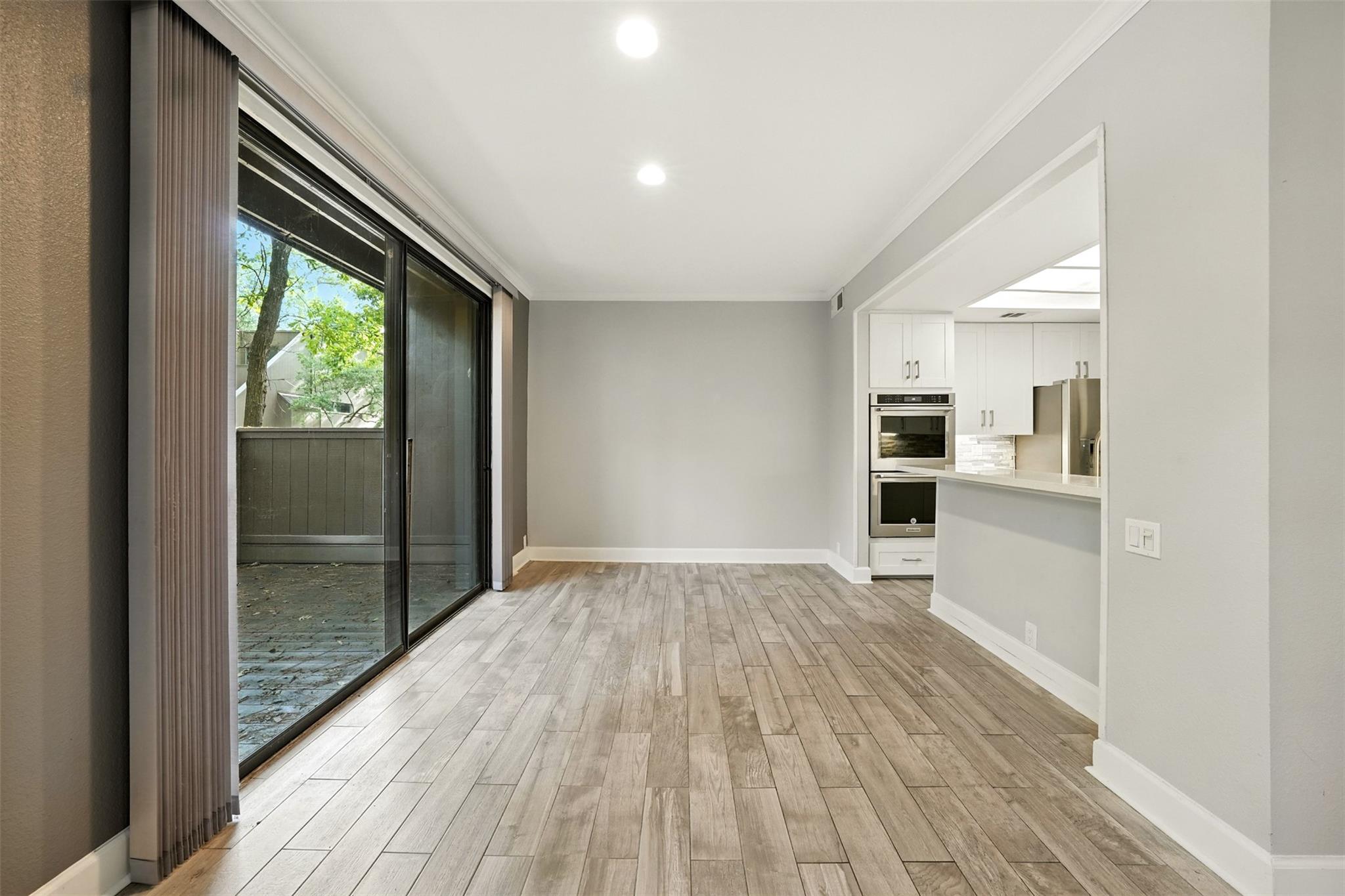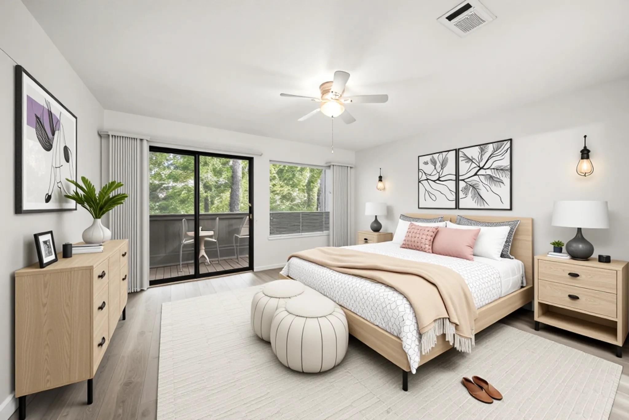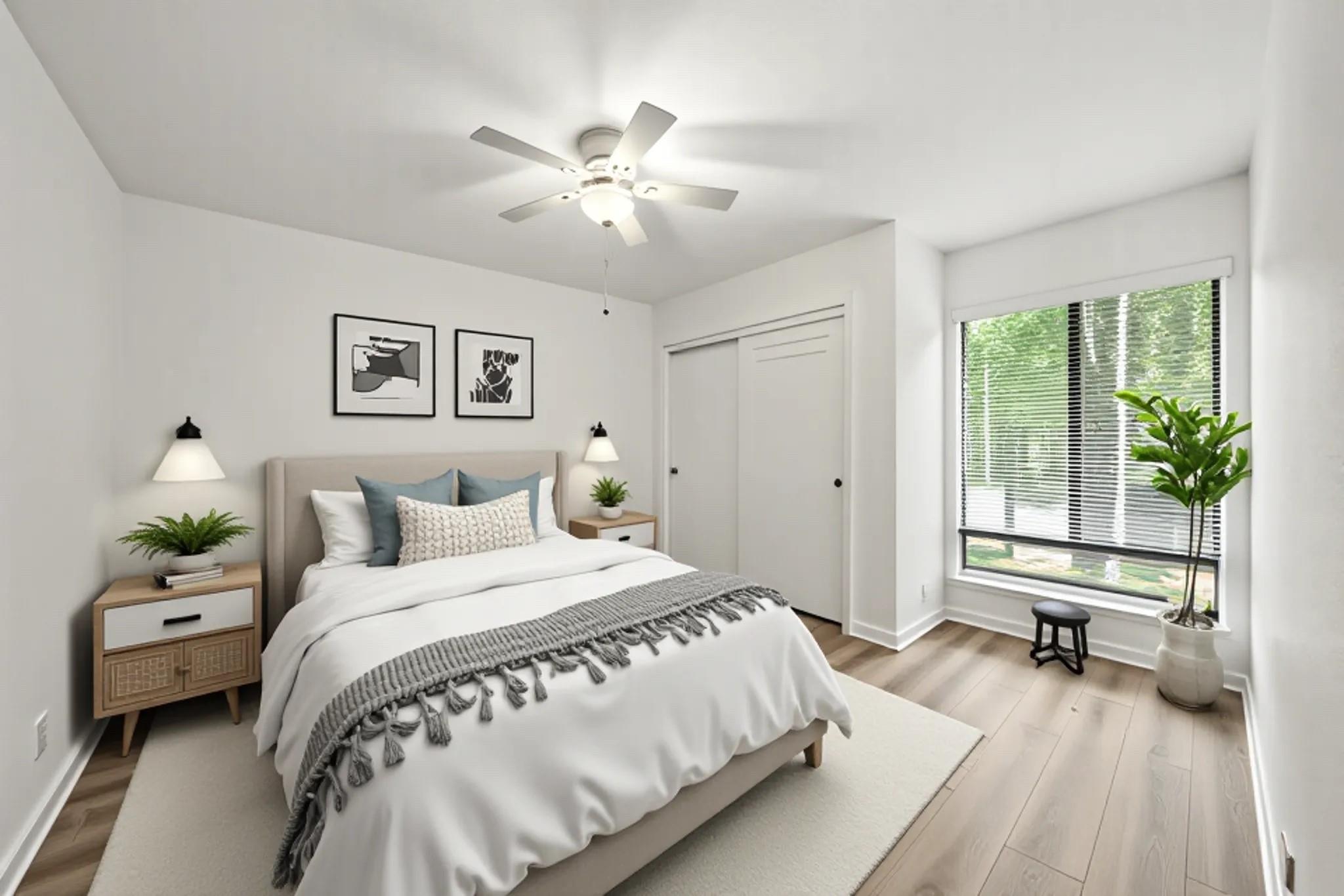 Beautifully updated end unit, set within the serene, tree-lined Ethan’s Glen community. Stunning oversized wrap-around patio surrounded by mature trees, creating a peaceful outdoor retreat. Step inside to a welcoming beverage station with a wine fridge and ample counter space. Soaring windows and sliding doors bathe the living spaces in natural light. The kitchen is thoughtfully designed with sleek countertop, stainless steel appliances, and a breakfast bar. Adjacent to the kitchen is a combined laundry room and pantry for added functionality, along with a discreet half bath on the main level. Three comfortable bedrooms and two full baths. The spacious primary suite includes a private balcony, generous closet space, and an en-suite bath featuring dual vanities and a separate tub/shower area. Residents enjoy top-rated schools and exceptional community amenities, including a clubhouse, swimming pool, tennis courts, and a scenic lake — the perfect blend of nature and neighborhood livi