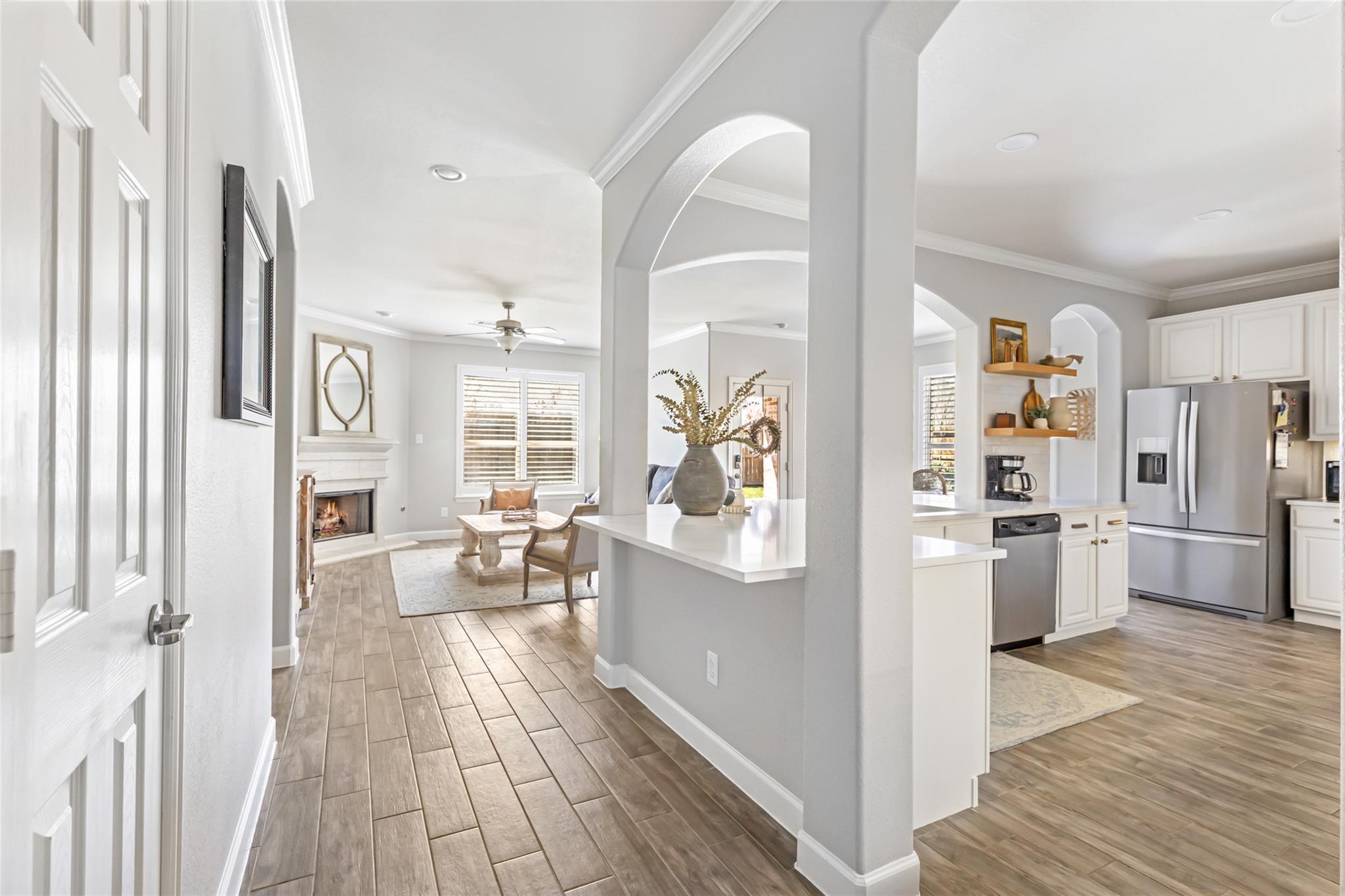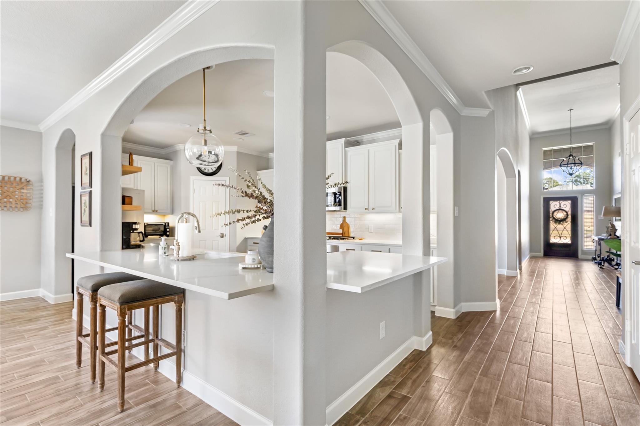 Gorgeous/Pristine 4 bedroom home will take your breathe away located in the heart of the Cul-de-sac! This spectacular updated home features hardwood tile flooring, lovely formal dining & Newly Remodeled Gourmet Kitchen w/quartz counters, stainless steel appliances, gas stove, designer lighting, white tile brick backsplash, painted cabinets & upgraded gold fixtures & hardware! The spacious living rm features a cozy gas log fireplace w/a cast stone mantel! Custom built MUD space for backpacks & storage. There is a guest bedroom/office & full bathroom on the first floor. Private expansive owner’s retreat w/dual vanities, whirlpool tub, shower, walk-in closet & lots of extra storage. Additionally there is a large game rm & two secondary bedrooms w/Jack & Jill bath & big closet space! The oversized backyard is a paradise w/sparkling pool/hot tub, luxury covered patio for entertaining, lots of green space for kids & sprinkler. This is the perfect home!! Must see!