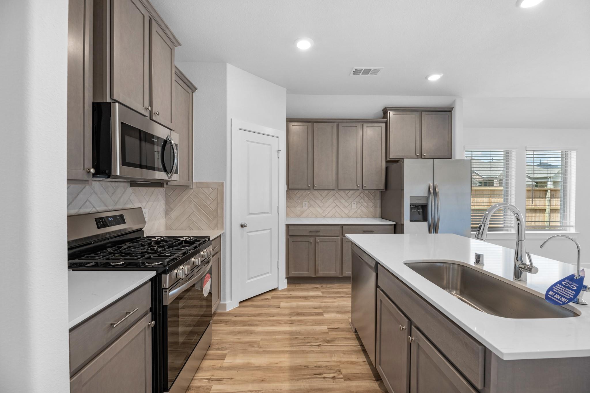 InteriorFloors:Carpet,Tile,VinylCountertop:QuartzBathroom Description:Primary Bath: Double Sinks,Primary Bath: Separate Shower,Primary Bath: Shower Only,Secondary Bath(s): Tub/Shower ComboBedroom Desc:All Bedrooms Down,En-Suite Bath,Walk-In ClosetKitchen Desc:Breakfast Bar,Instant Hot Water,Island w/o Cooktop,Kitchen open to Family Room,Pantry,Soft Closing Cabinets,Soft Closing Drawers,Walk-in PantryRoom Description:1 Living Area,Entry,Family Room,Kitchen/Dining Combo,Utility Room in HouseHeating:Central GasCooling:Central ElectricConnections:Electric Dryer Connections,Washer ConnectionsDishwasher:YesDisposal:YesCompactor:NoMicrowave:YesRange:Freestanding RangeOven:Freestanding OvenIce Maker:NoEnergy Feature:Ceiling Fans,Digital Program Thermostat,Radiant Attic BarrierInterior:Fire/Smoke Alarm