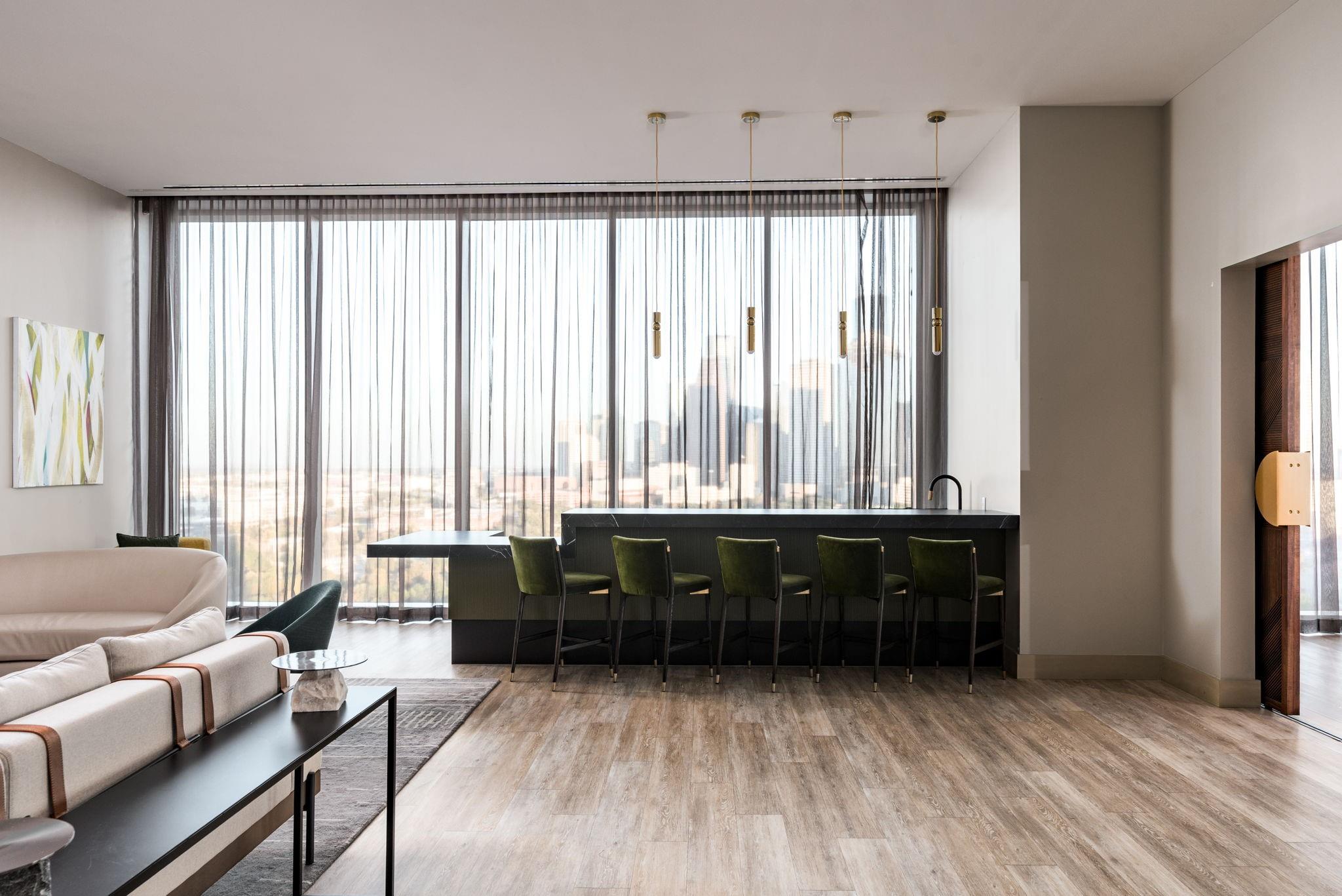 Perched on the 19th floor of The Residences at The Allen, Residence #1905 delivers move-in-ready luxury with designer-selected paint, curated lighting, and floor-to-ceiling windows framing spectacular views of Buffalo Bayou and the Downtown Houston skyline. Automatic solar shades and designer drapery create effortless comfort and polish, while the custom, luxury walk-in primary closet by California Closets adds boutique-level function. TVs and washer/dryer are included. Residents enjoy five-star, resort-style living with access to Thompson Houston amenities: four on-site restaurants, a full-service spa, state-of-the-art fitness center, and a spectacular pool with cabanas. Exclusive to owners are a 24-hour concierge, valet, dedicated amenities deck, private resident lounge, conference room, catering kitchen, and indoor plunge pool. Resort style living just minutes from downtown.