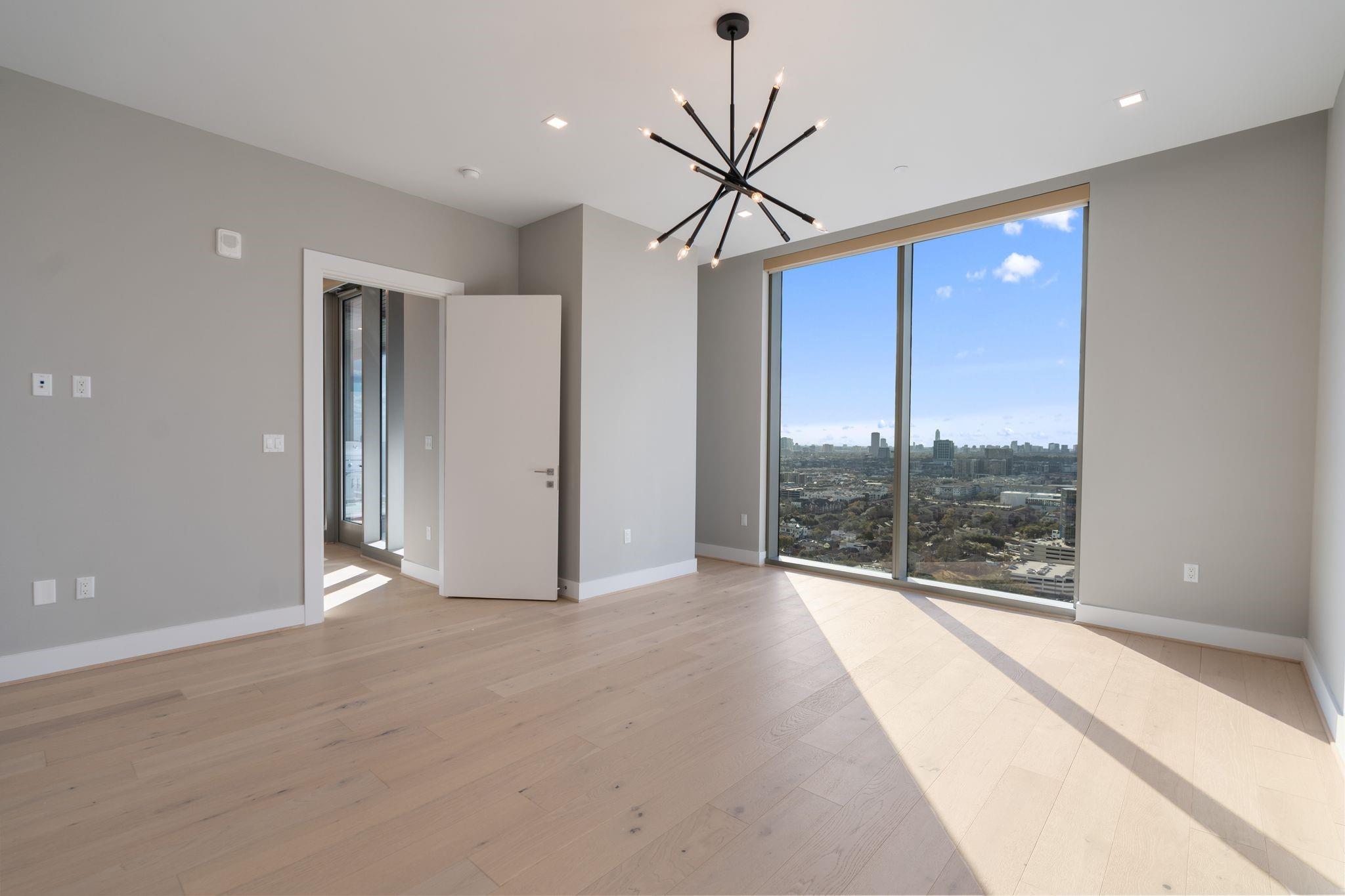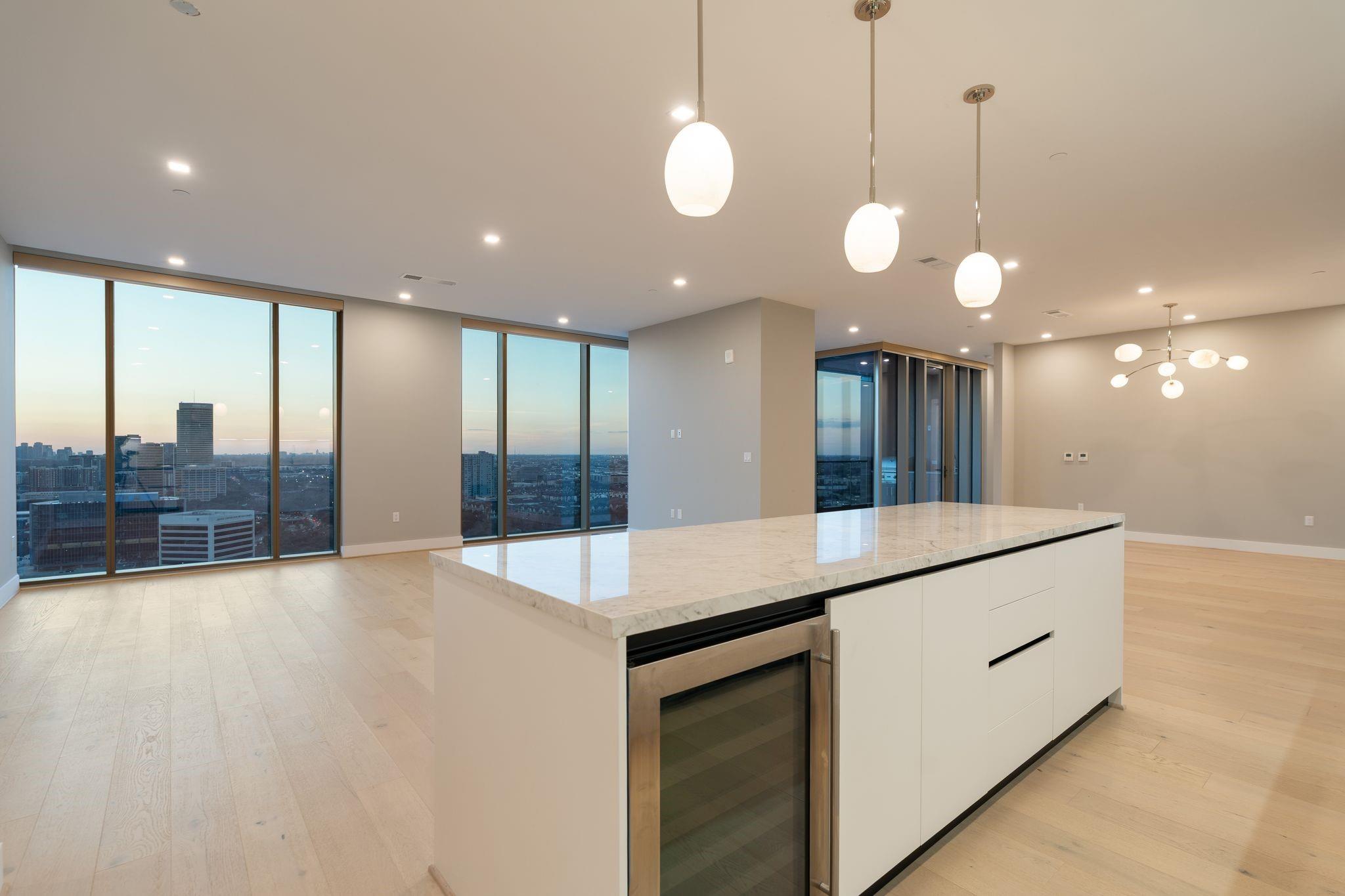 Experience luxury redefined at The Allen, a sophisticated condominium community developed in conjuncture with the renowned Thompson hotel. This 2 bed 2.5 bathroom condo has a spacious floorplan with stunning views over the Buffalo Bayou and Memorial Park, and all the amenities of a world class resort! Residents at The Allen enjoy numerous private amenities, access to all the amenities available at the Thompson Hotel (such as room service and a full spa), discounts at the on-site restaurants, and more! The modern kitchen boasts Pedini cabinetry, Thermador appliances, porcelain counters, and a huge island. Both bedrooms enjoy en-suite baths and spacious closets that are currently a blank slate; build to suit. This unit enjoys 2 parking spaces and a private 3-car garage; a feature that is sold out in this building! The unit next door is for sale by the same owner; it would be an excellent opportunity to create a custom oversized corner unit.