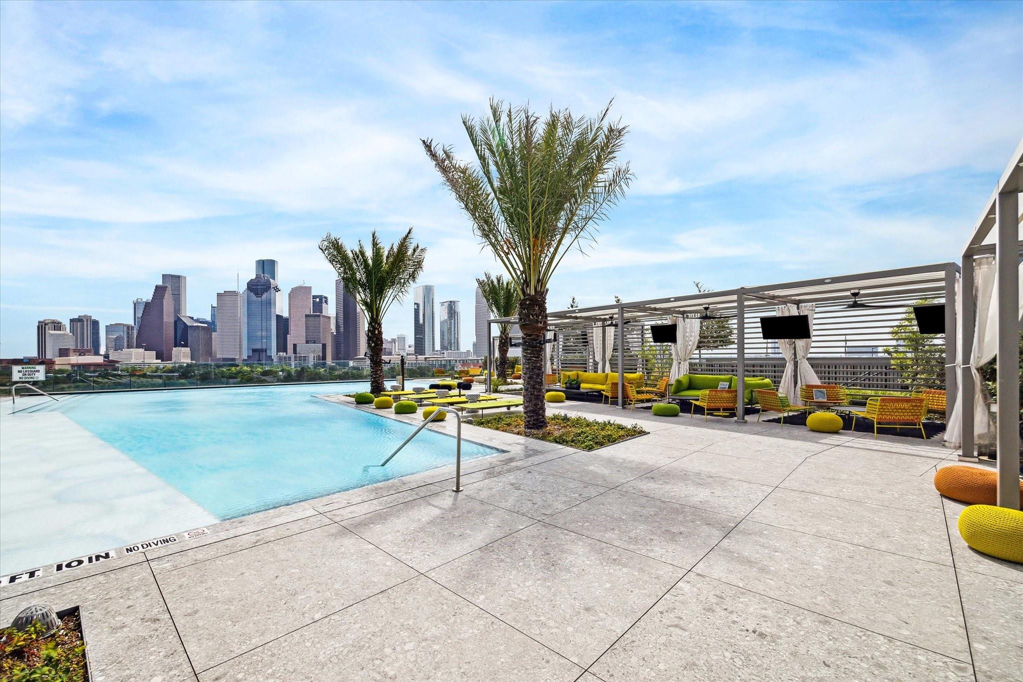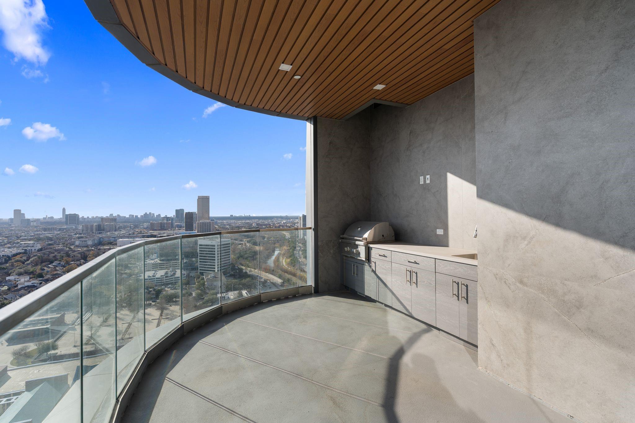 Experience luxury redefined at The Allen, a sophisticated condominium community developed in conjuncture with the renowned Thompson hotel. This 2 bed 2.5 bathroom condo has a spacious corner-unit floorplan with stunning views over the Buffalo Bayou and Memorial Park, and all the amenities of a world class resort! Residents at The Allen enjoy numerous private amenities, access to all the amenities available at the Thompson Hotel (such as room service and a full spa), discounts at the on-site restaurants, and more! The modern kitchen boasts Pedini cabinetry, Thermador appliances, porcelain counters, and a huge island. Both bedrooms enjoy en-suite baths and spacious closets that are currently a blank slate; build to suit. A Spacious patio offers corner views to the South and the West, with a glimpse of the downtown skyline and built in grill! This premier location is just minutes from downtown, and is walking distance to several restaurants and some of the best walking trails in Houston.