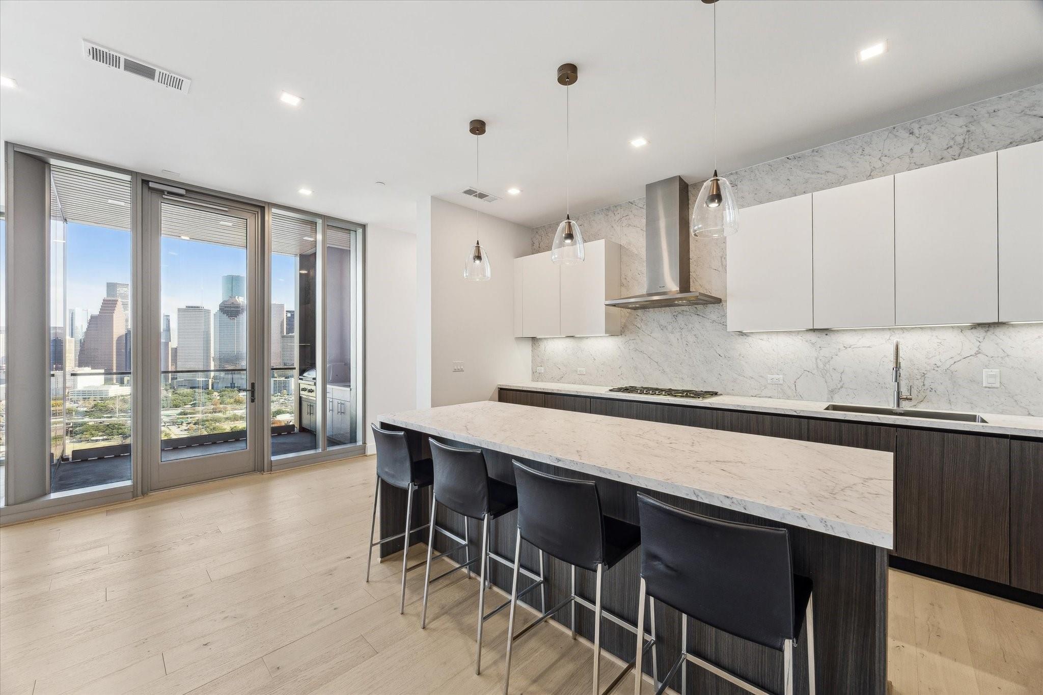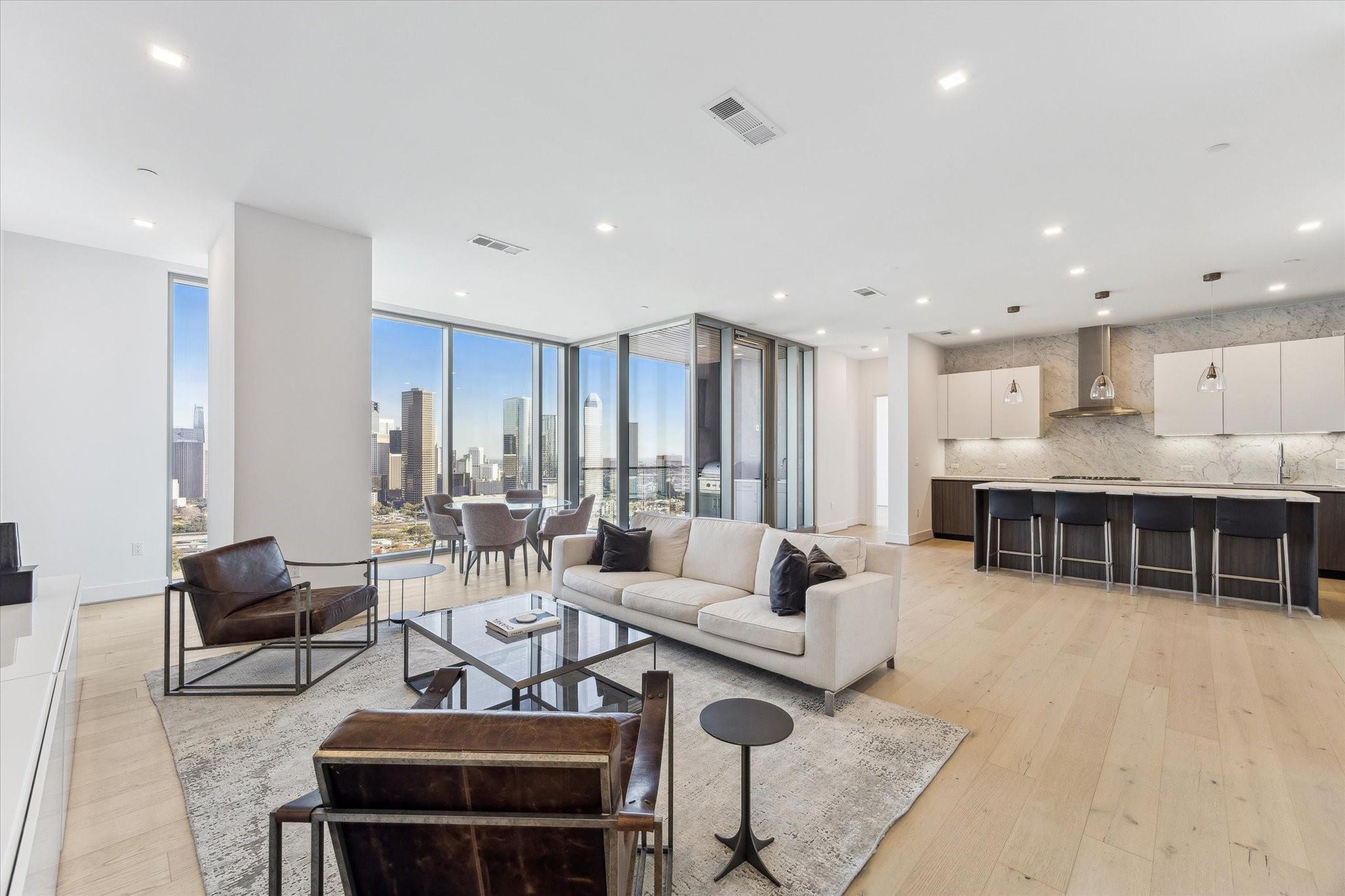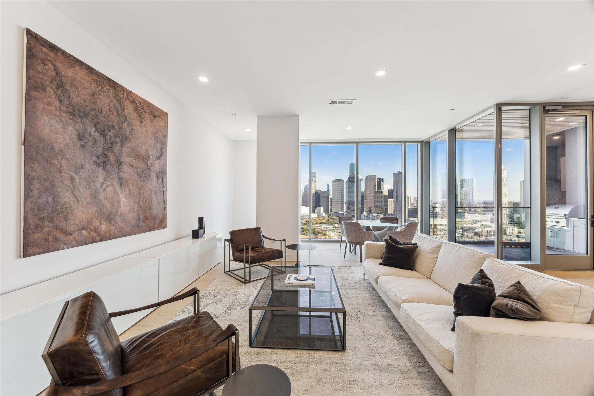 Experience the ultimate in luxury living in this exquisitely designed 2-bedroom condo, where expansive floor-to-ceiling windows flood the space with natural light and offer breathtaking views of the city. The gourmet kitchen is a true chef’s dream, featuring custom PEDINI cabinetry and premium Thermador appliances. Open-concept living and dining areas create a seamless flow, perfect for both intimate gatherings and entertaining. The luxurious primary suite provides a serene sanctuary, complemented by a spacious second bedroom and a covered balcony with a built-in summer kitchen, ideal for alfresco dining. Located in an upscale building with 24-hour concierge service and world-class hotel amenities, this residence offers the best in convenience and sophistication. Perfectly positioned near downtown, Buffalo Bayou Park, and Houston’s finest dining, this is the epitome of inner-loop luxury living.