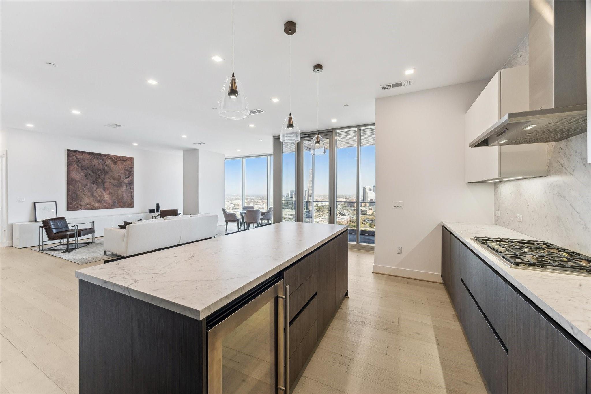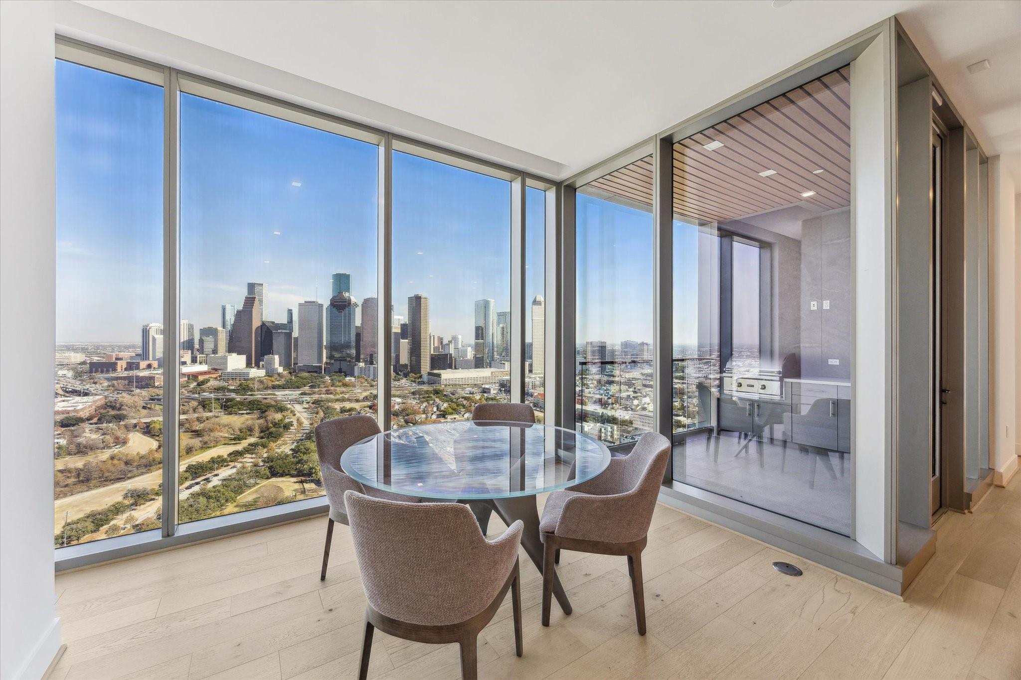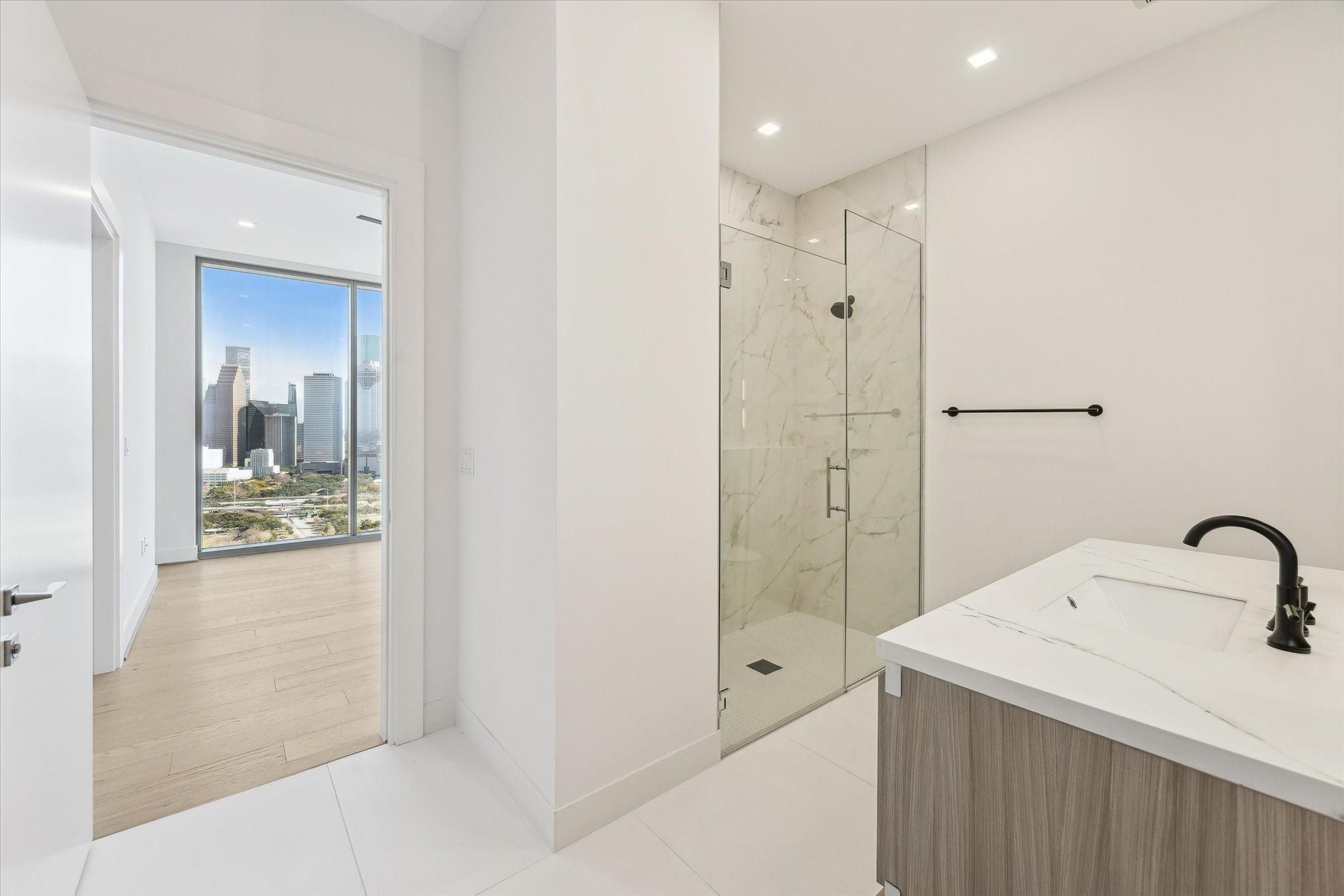 Experience the ultimate in luxury living in this exquisitely designed 2-bedroom condo, where expansive floor-to-ceiling windows flood the space with natural light and offer breathtaking views of the city. The gourmet kitchen is a true chef’s dream, featuring custom PEDINI cabinetry and premium Thermador appliances. Open-concept living and dining areas create a seamless flow, perfect for both intimate gatherings and entertaining. The luxurious primary suite provides a serene sanctuary, complemented by a spacious second bedroom and a covered balcony with a built-in summer kitchen, ideal for alfresco dining. Located in an upscale building with 24-hour concierge service and world-class hotel amenities, this residence offers the best in convenience and sophistication. Perfectly positioned near downtown, Buffalo Bayou Park, and Houston’s finest dining, this is the epitome of inner-loop luxury living.