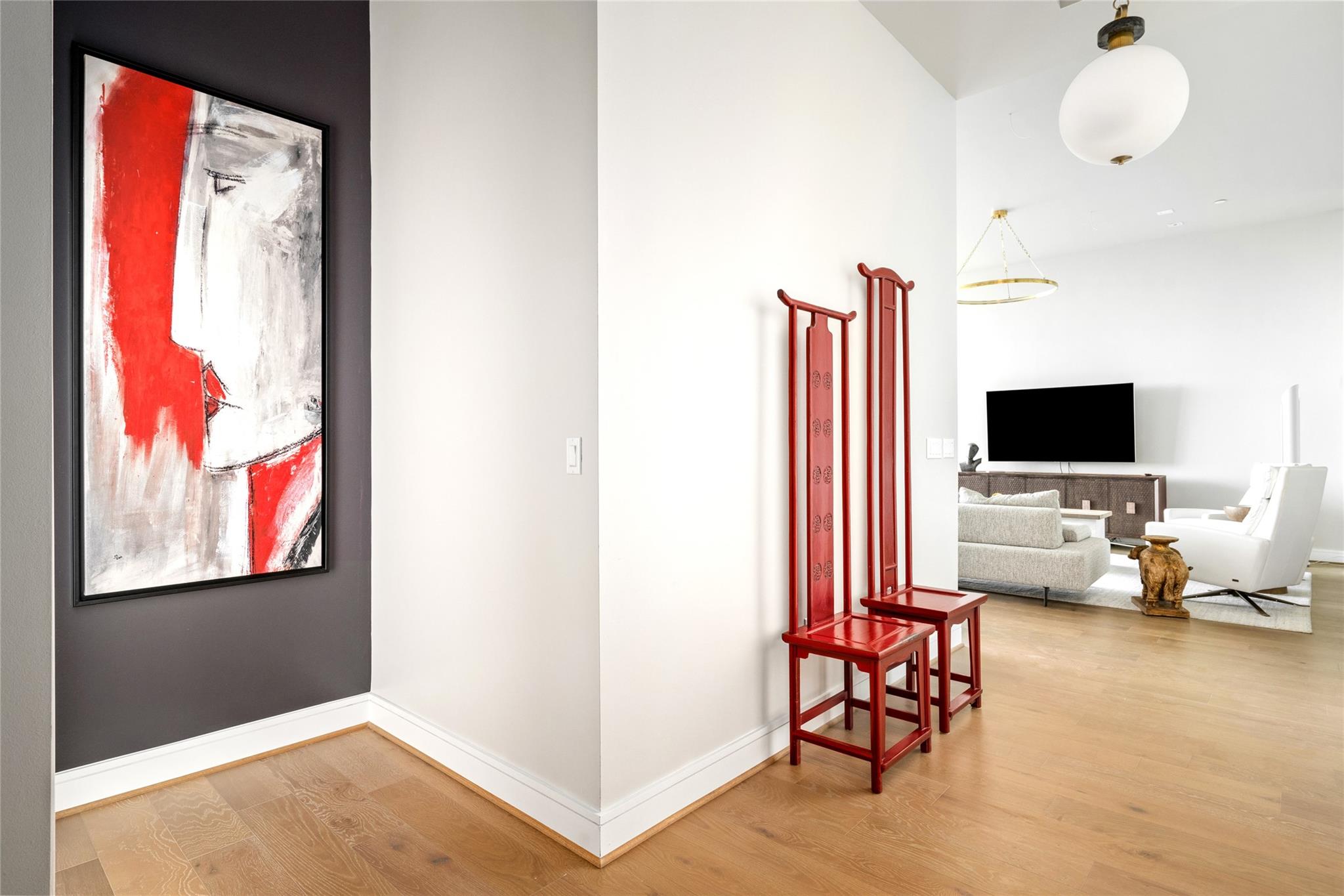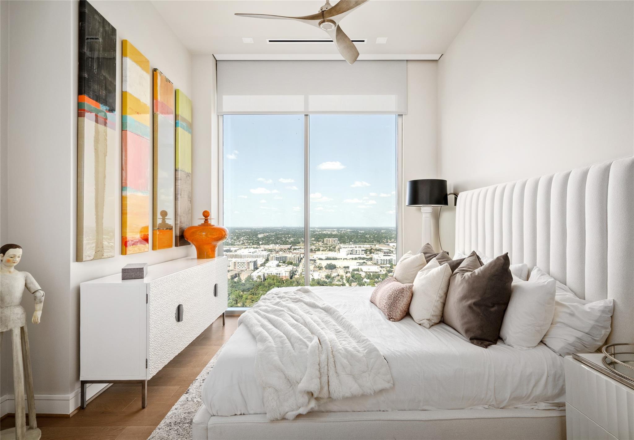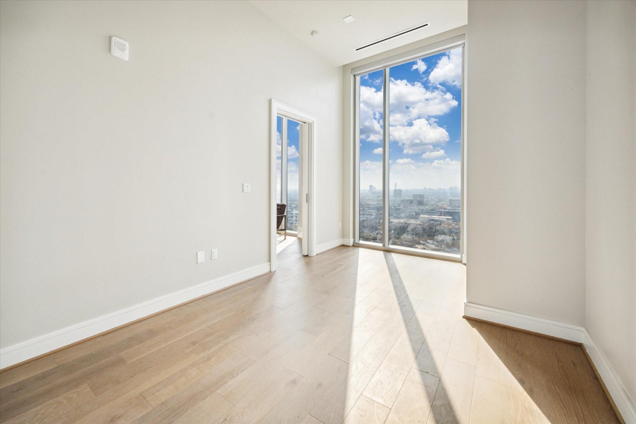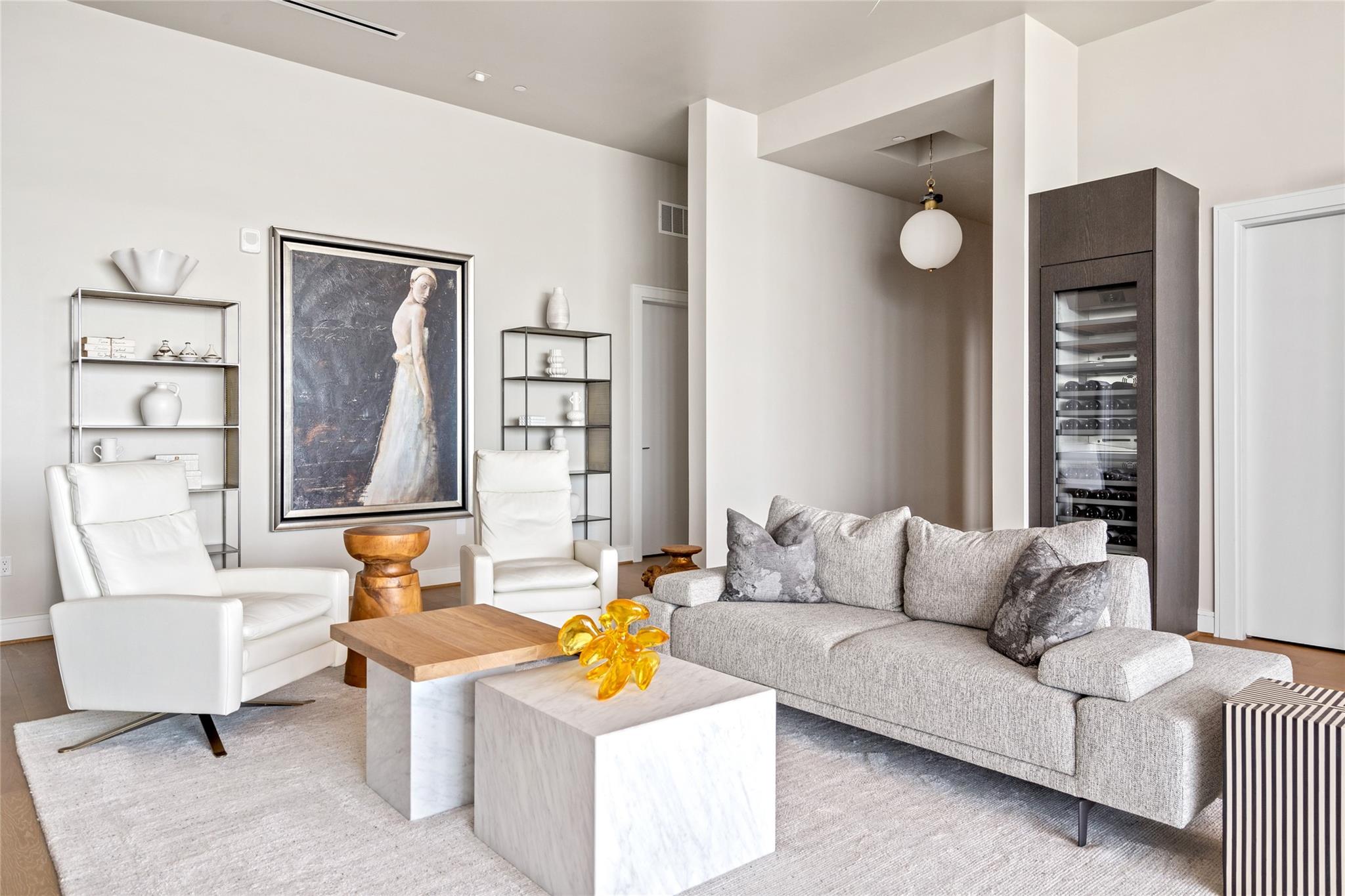 The Residences at The Allen, Penthouse 3204, defines elevated luxury with breathtaking views of Houston’s skyline and Buffalo Bayou Park. This 3-bedroom, 3.5-bath residence features a spacious open layout, soaring 12-foot ceilings, and dramatic floor-to-ceiling windows. The chef’s kitchen is a masterpiece with Pedini Italian cabinetry, porcelain countertops, Gaggenau appliances, double refrigerator drawers, and a separate wine refrigerator. Entertain in style with an elegant dining room, wine room, and butler’s pantry. The primary suite is a private retreat with a lounge/flex room, heated bathroom floors, dual vanities, and custom closets. Outdoors, enjoy sweeping north and west views from your private balcony with plunge pool and gas hook-up for a future summer kitchen. Completing this rare offering are a two-car private interior garage, private storage, and a third reserved parking space. With 24-hour preferred services, this residence blends exclusivity, comfort, and sophistic