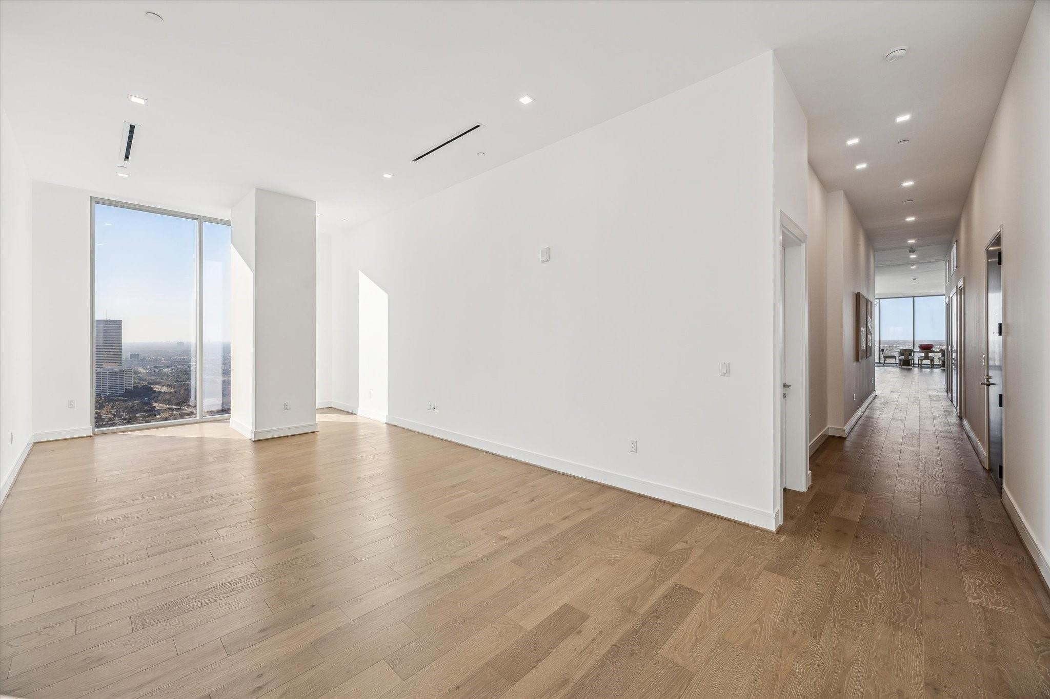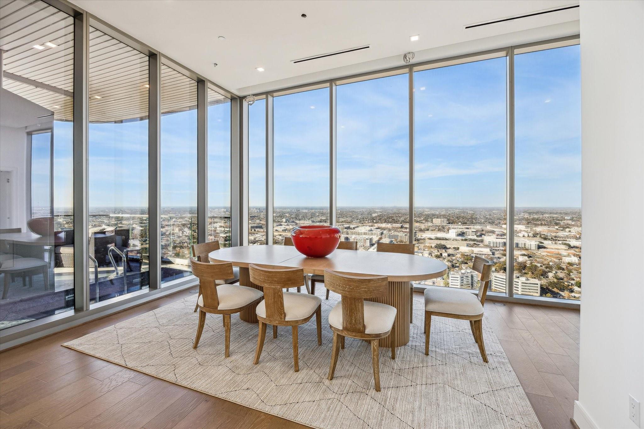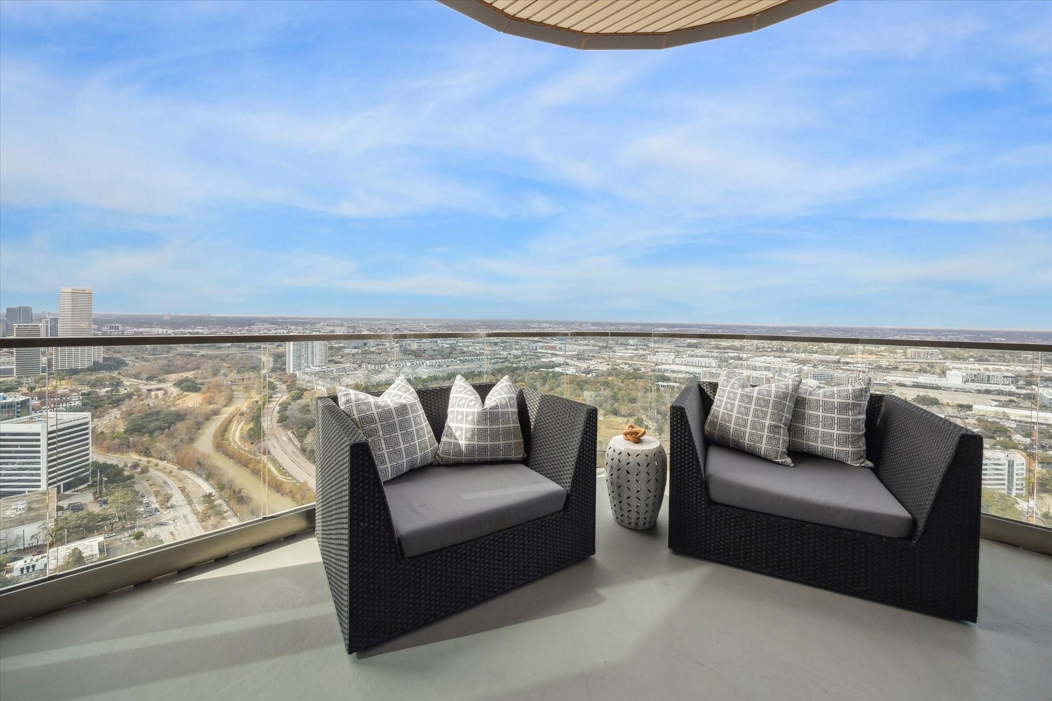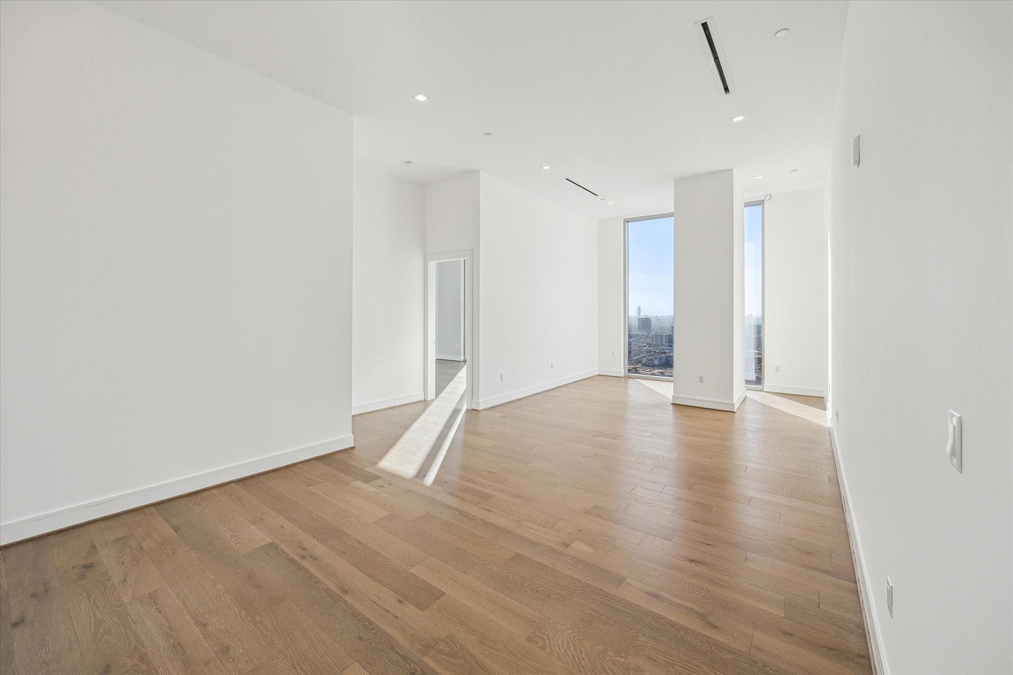 The Residences at The Allen, Houston’s premiere Luxury Condo Hotel Tower on Allen Parkway, Houston, stands gracefully against the city skyline. Its modern design and glass windows exude sophistication, while a warm glow from the setting sun highlights its elegance. Private balconies with lush greenery offer panoramic views of Houston and Buffalo Bayou Park. This building embodies luxury living, with exceptional amenities and breathtaking vistas. The Penthouse features 3 bedrooms plus a large secondary living or flex space, 3 and half baths with a large living, dining, kitchen and fireplace. Plus room for a possible wine room and secondary catering kitchen. Additional features include Pedini Italian cabinets, porcelain counter tops, heated primary bathroom floors, 12 ft floor to ceiling windows, sweeping north and west views with a private balcony and pool. Plus a two car private interior garage.