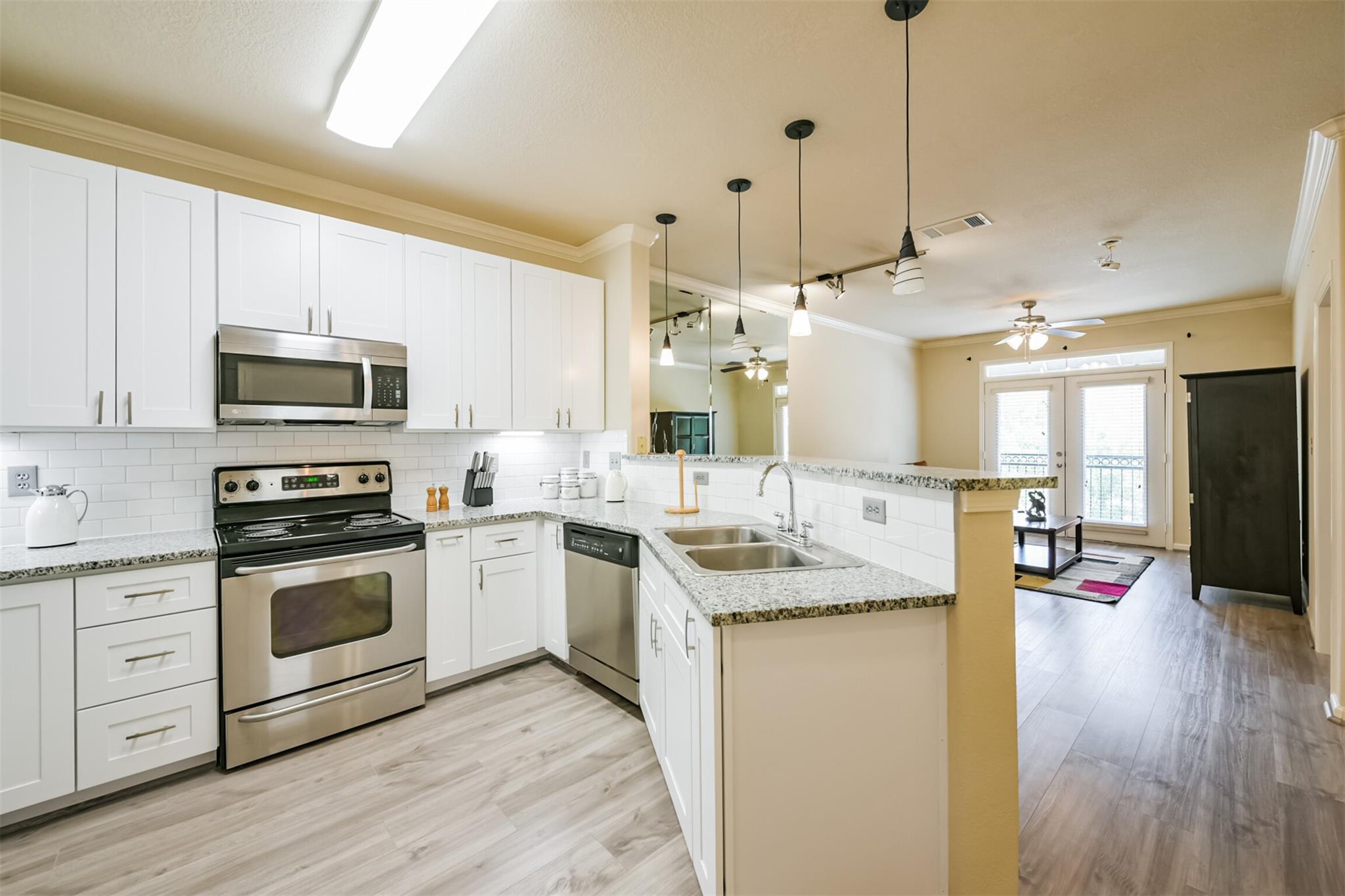Medical Center convenience meets modern comfort! Discover this beautifully updated 1-bedroom condo at The Valencia, quietly tucked away on the 1st floor of this luxury gated community. Featuring a brand-new kitchen with soft-closing cabinets, granite countertops, stainless steel appliances, and a full-size washer and dryer, this home is move-in ready. Enjoy a peaceful setting with a charming Juliet balcony and large windows that bring in natural light. All utilities—electricity, water, trash, and internet—are included! The community offers resort-style amenities such as a pool and heated spa, fitness center, clubhouse with billiards and business area, BBQ grills, 24-hour courtesy officer, on-site management, and controlled-access parking garage with ample unassigned spaces. Just steps to the METRORail, NRG Stadium, Rice University, and the world-renowned Texas Medical Center—an unbeatable location and lifestyle!