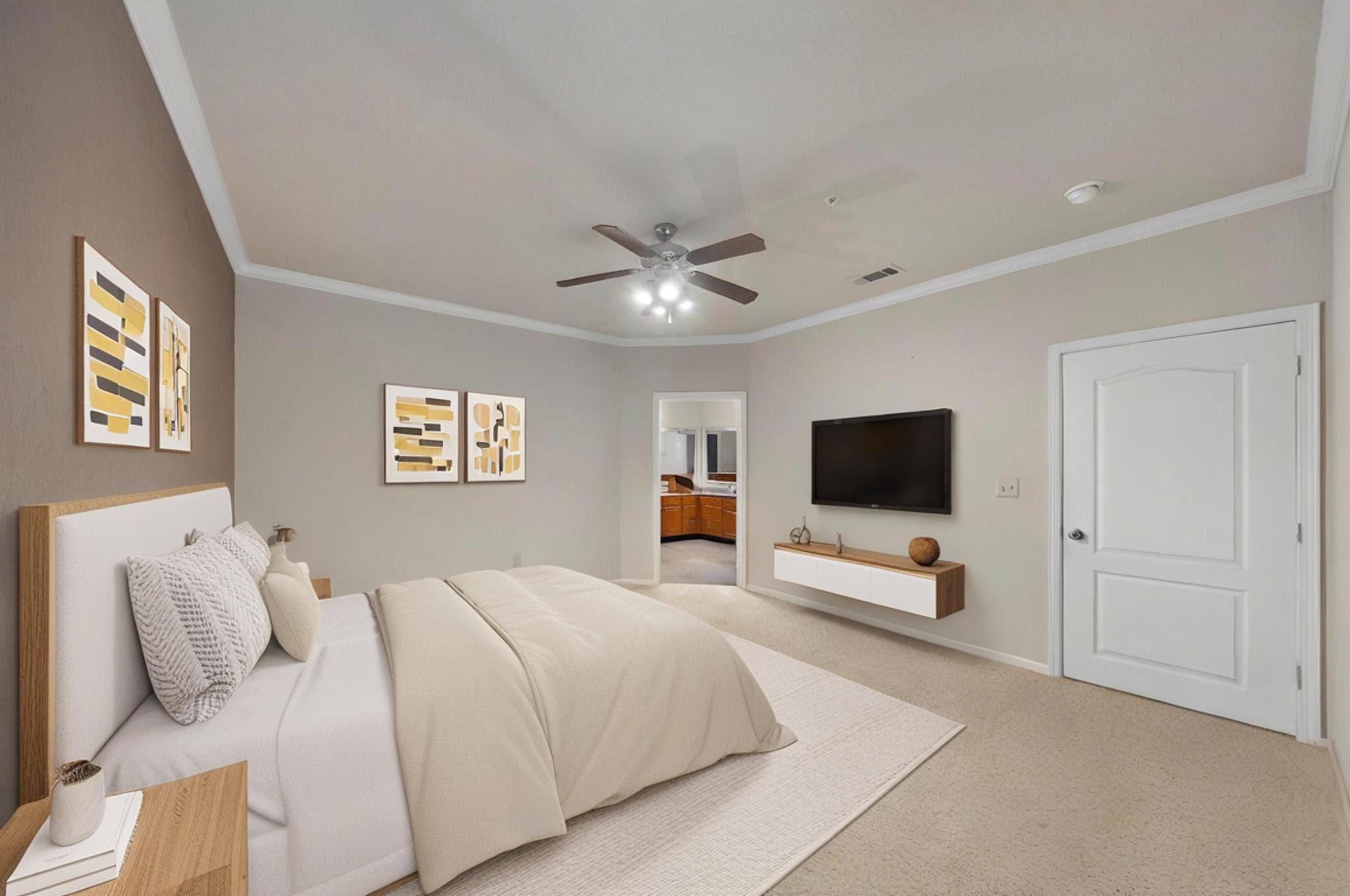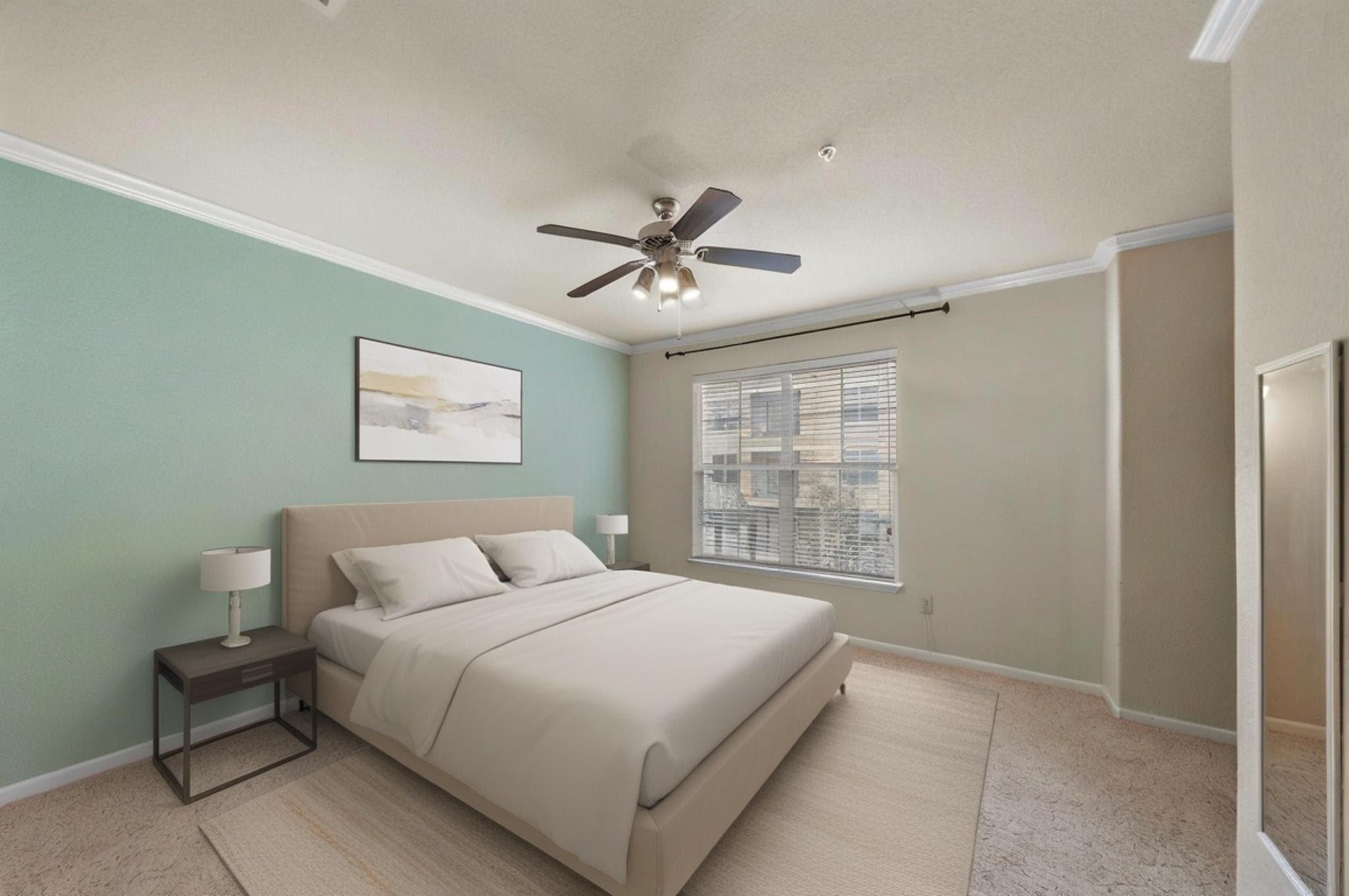 PRICED TO SELL, ONE OF THE LARGEST UNITS with tons of upgrades at The Valencia, featuring 24-hour security, a fully gated community, a resort-style pool, and a 24-hour fitness center with onsite management. This well-maintained two-bedroom condo offers spacious bedrooms on opposite corners with huge closets and en-suite baths. Step outside to your private covered balcony overlooking the tranquil courtyard. This secure complex provides personalized app access and gated covered parking for convenience. Just minutes' walk from the METRORail, perfect for those working or studying at the Texas Medical Center, Galleria, Downtown, University of Houston, St. Thomas, or Rice University. Located across the street from Texas Children's Hospital and just minutes from NRG Stadium. Washer, dryer, and refrigerator are included!