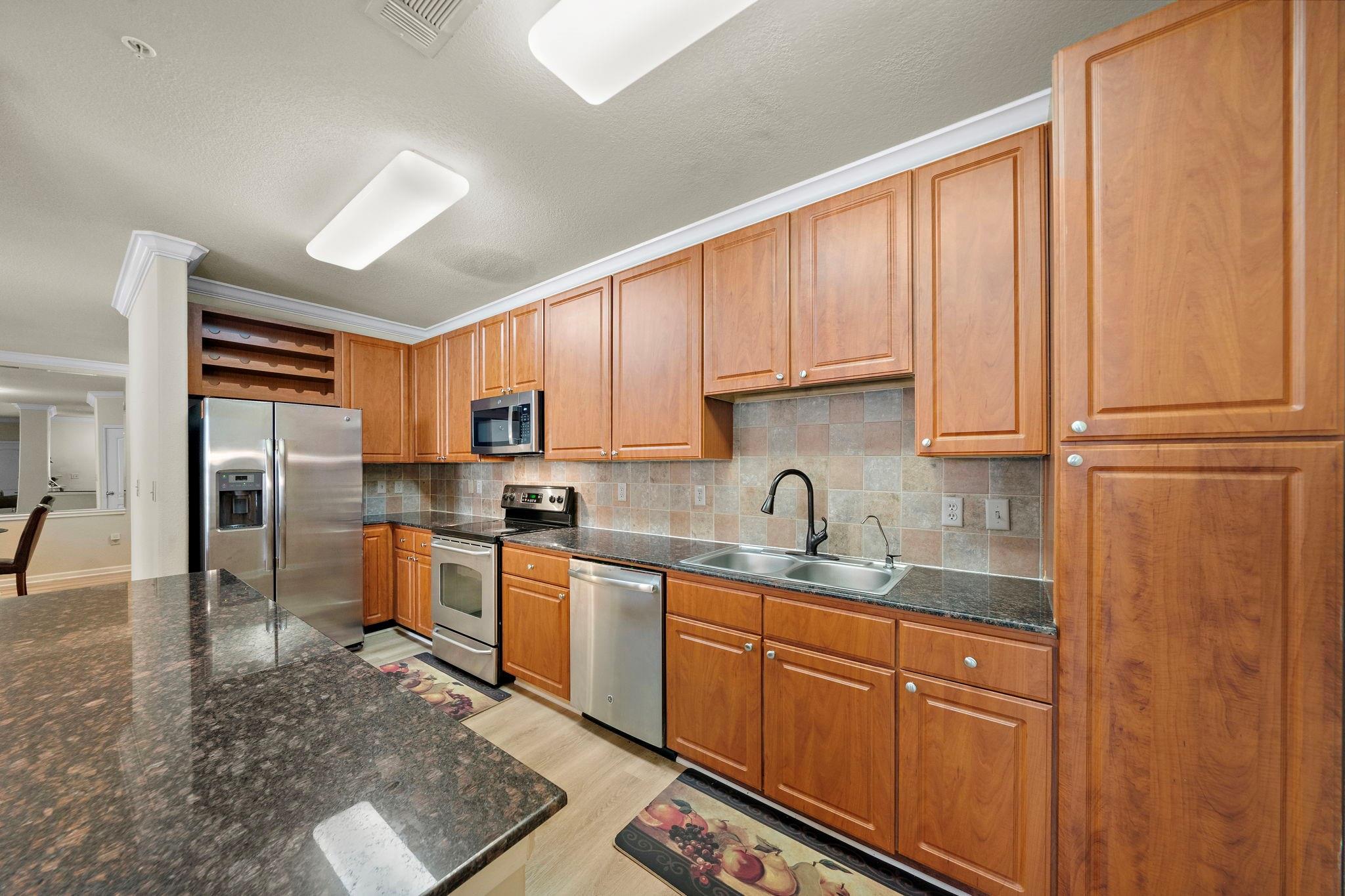 InteriorFloors:Carpet,Tile,VinylCountertop:GraniteBathroom Description:Primary Bath: Double Sinks,Primary Bath: Separate Shower,Primary Bath: Tub/Shower Combo,Secondary Bath(s): Tub/Shower ComboBedroom Desc:En-Suite Bath,Walk-In ClosetKitchen Desc:Breakfast Bar,Island w/o Cooktop,PantryRoom Description:1 Living Area,Kitchen/Dining Combo,Living/Dining Combo,Utility Room in HouseHeating:Central ElectricCooling:Central ElectricWasher/Dryer Conn:YesDishwasher:YesDisposal:YesCompactor:NoMicrowave:YesRange:Electric RangeOven:Electric Oven,Single OvenIce Maker:NoAppliances:Dryer Included,Electric Dryer Connection,Refrigerator,Washer IncludedEnergy Feature:Ceiling Fans,Digital Program ThermostatInterior:Balcony,Elevator,Fire/Smoke Alarm,Refrigerator Included,Window Coverings