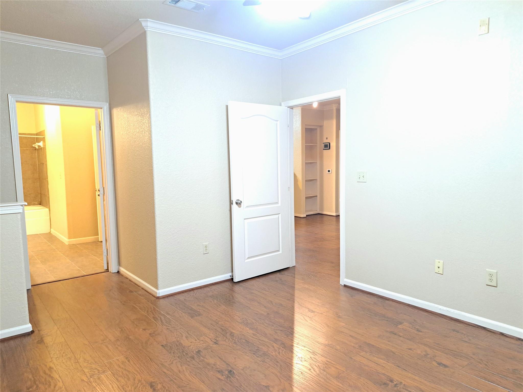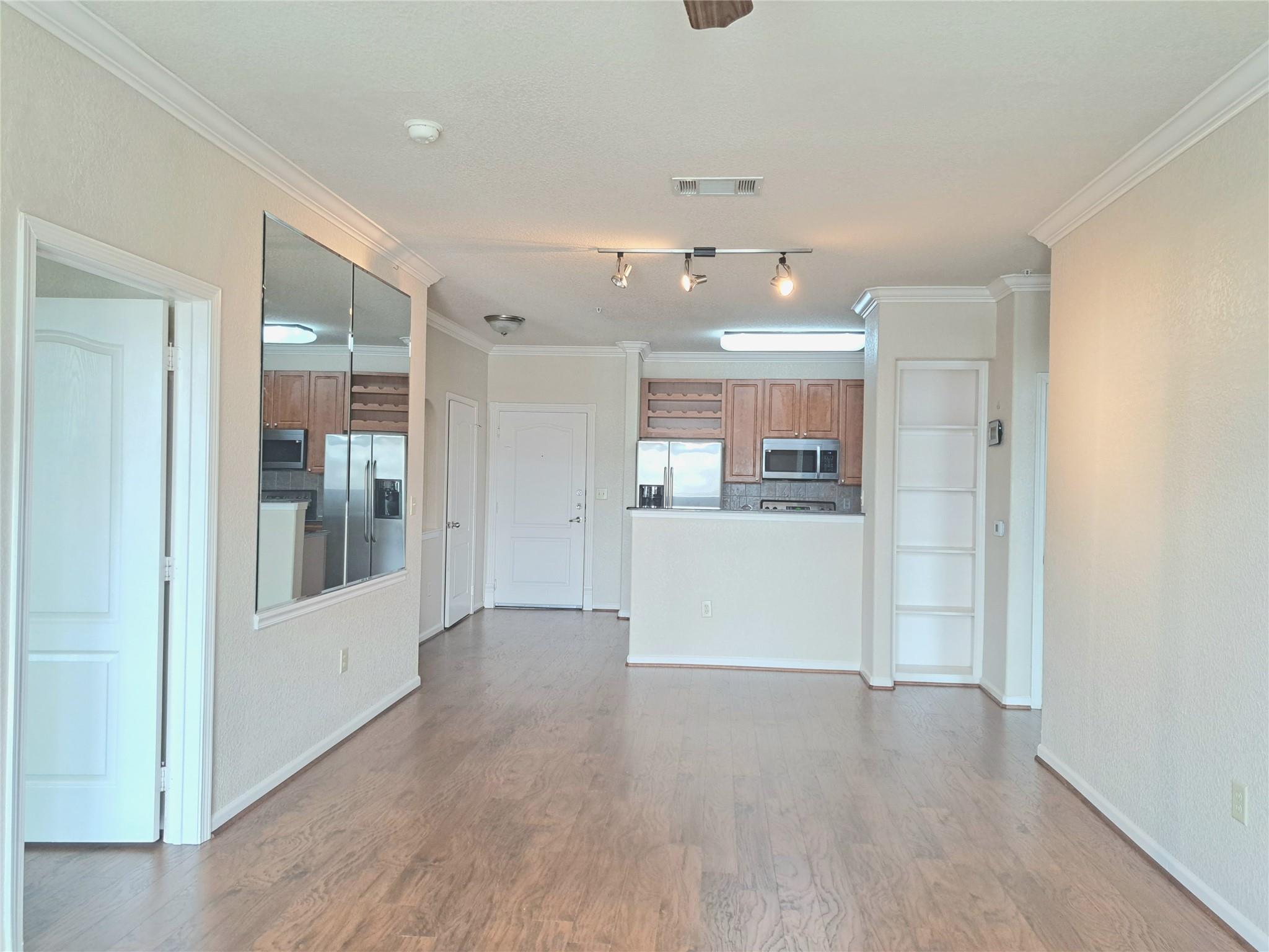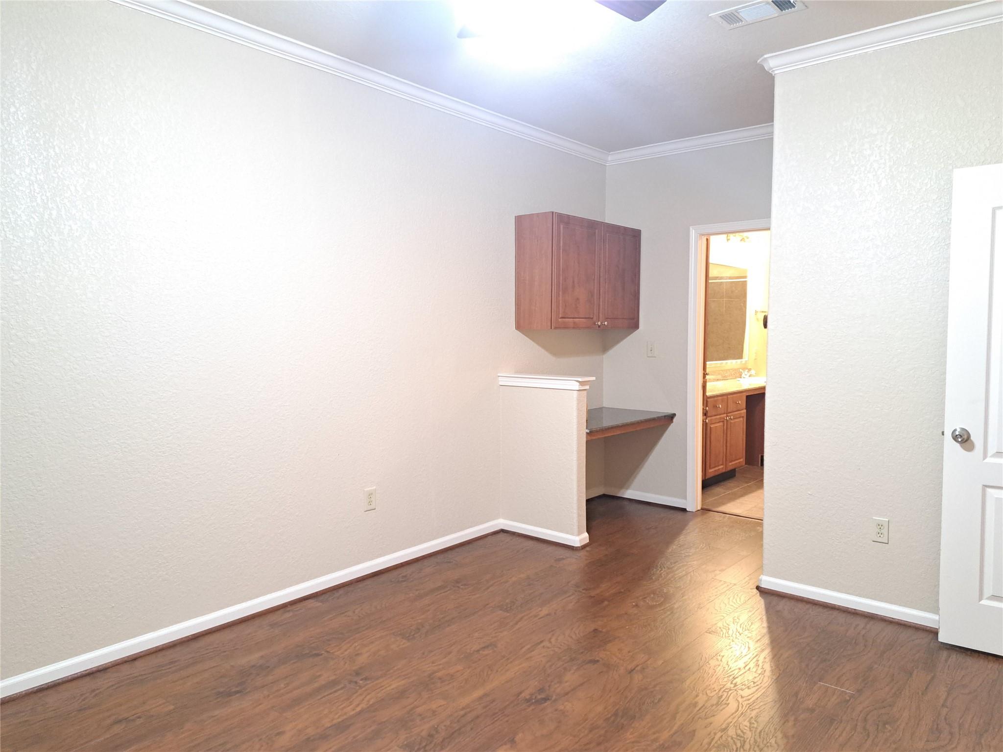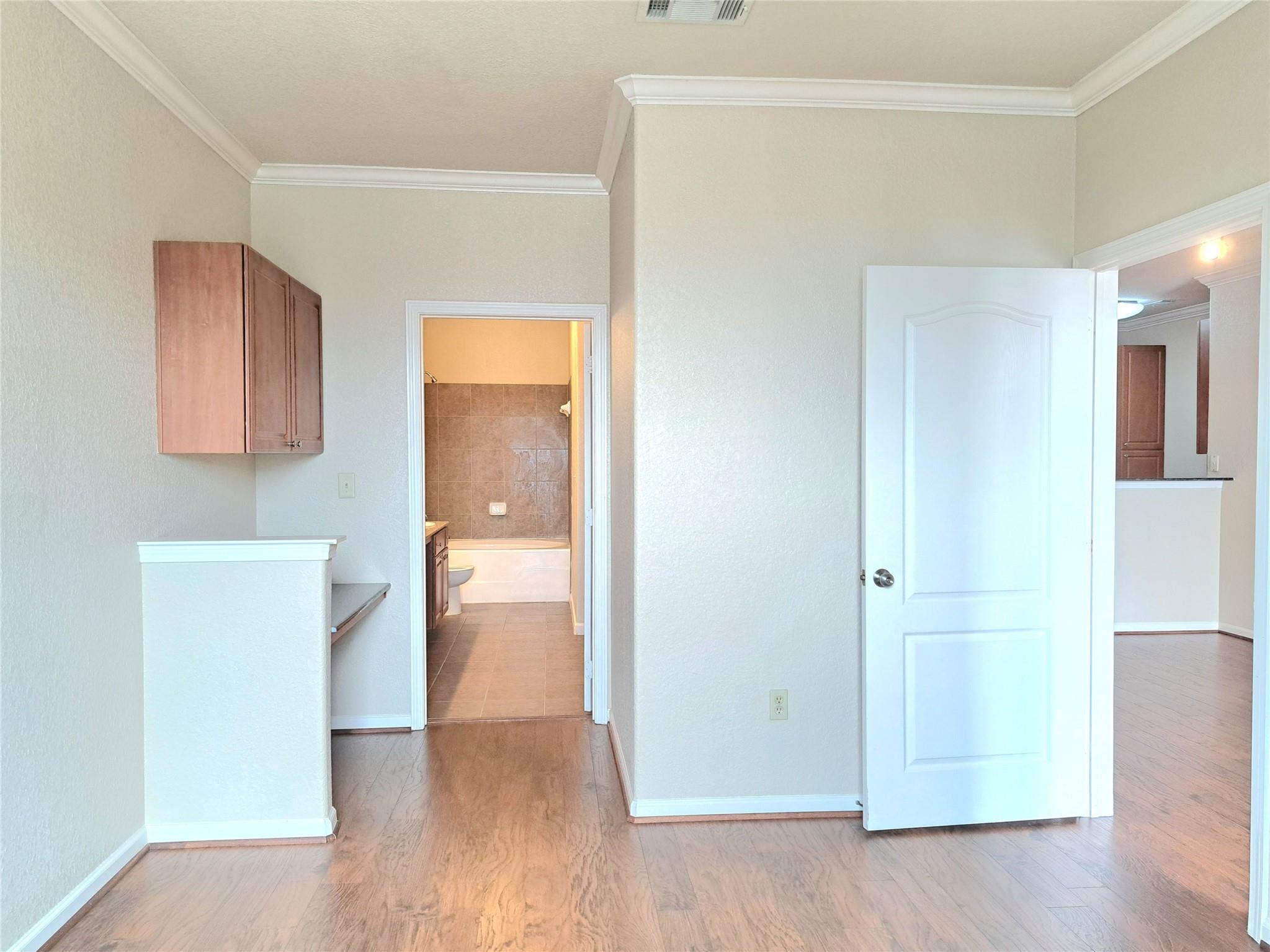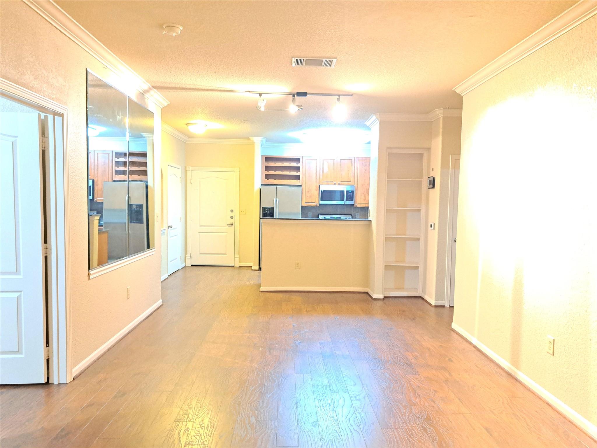 Rare Top-Floor Corner, well-maintained condo features 2 bedrooms and 2 bathrooms. Experience ultimate privacy and abundant natural light in this south-facing residence, spacious open concept. Baths have tons of storage space Both spacious bedrooms have a built-in desk/work area and large walk-in closets, laminated wood flooring throughout (no carpet!), the high-efficiency AC system installed in 2021. Residents of The Valencia enjoy a resort-style lifestyle with 24/7 guard-attended gates, a Mediterranean courtyard, a sparkling pool, a fitness center, and a clubhouse. Free Wi-Fi and Water. Unbeatable location—walk to The Woman’s Hospital or catch the Metrorail for a quick commute to the Texas Medical Center, UT Health, Baylor College of Medicine, Rice University, and NRG Stadium. Move-in ready! Perfectly situated for medical professionals and students.