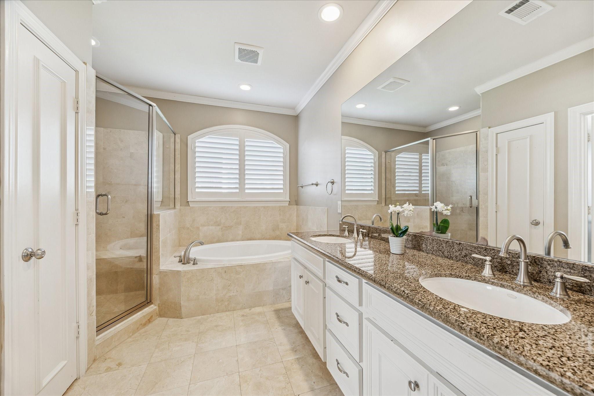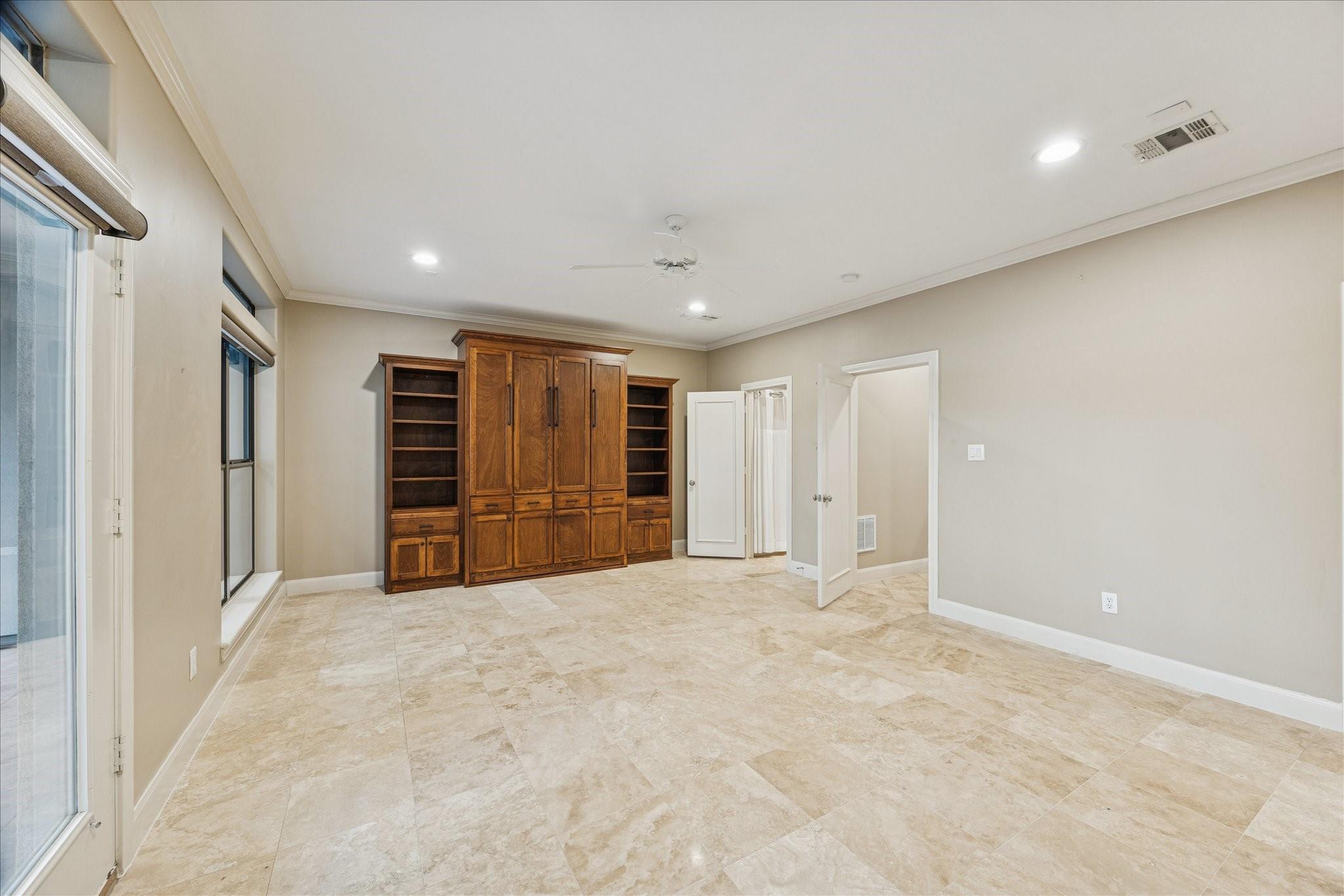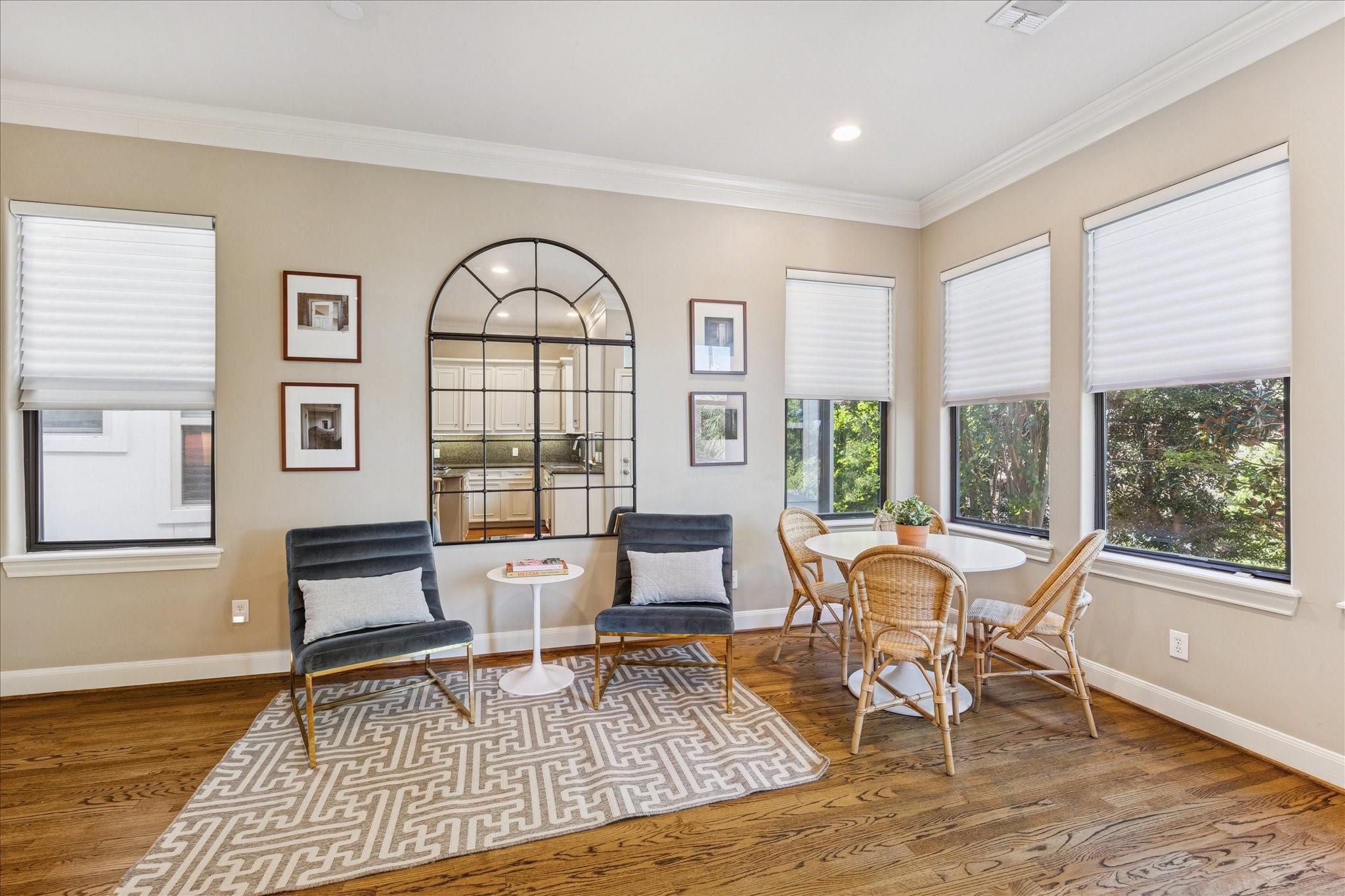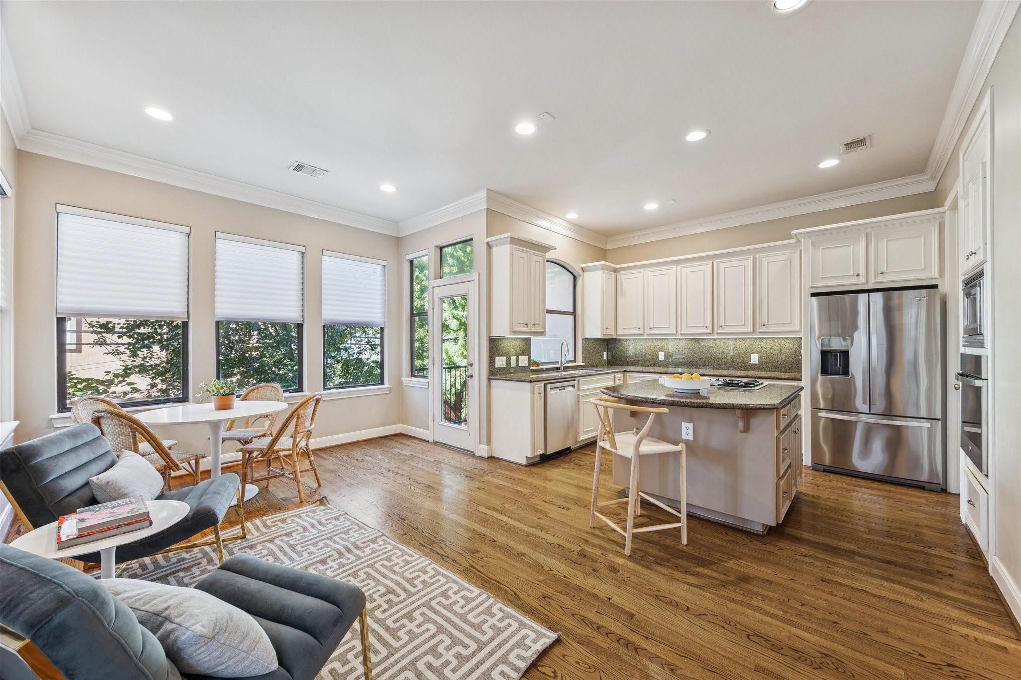 Welcome to your dream home! Just steps from the vibrant River Oaks Shopping Center, this light-filled gem combines timeless charm, modern comfort, and a location that's second to none. An elegant curved staircase and spacious entry create a warm first impression. The versatile first-floor room with en-suite bath and built-in Murphy bed can serve as a bedroom, office, or game room, with access to a fully fenced private backyard perfect for relaxing or entertaining. Hardwood floors, crown molding, and abundant natural light define the living spaces. Upstairs, the primary suite features a cozy sitting area and oversized walk-in closet, while a secondary bedroom offers its own en-suite bath. Additional highlights include no HOA, a private driveway, two-car garage, elevator shaft, three balconies, covered patio, tankless water heater (2023), water softener, and new roof (2025). Professional stucco repairs completed Dec. 2025. *Per seller