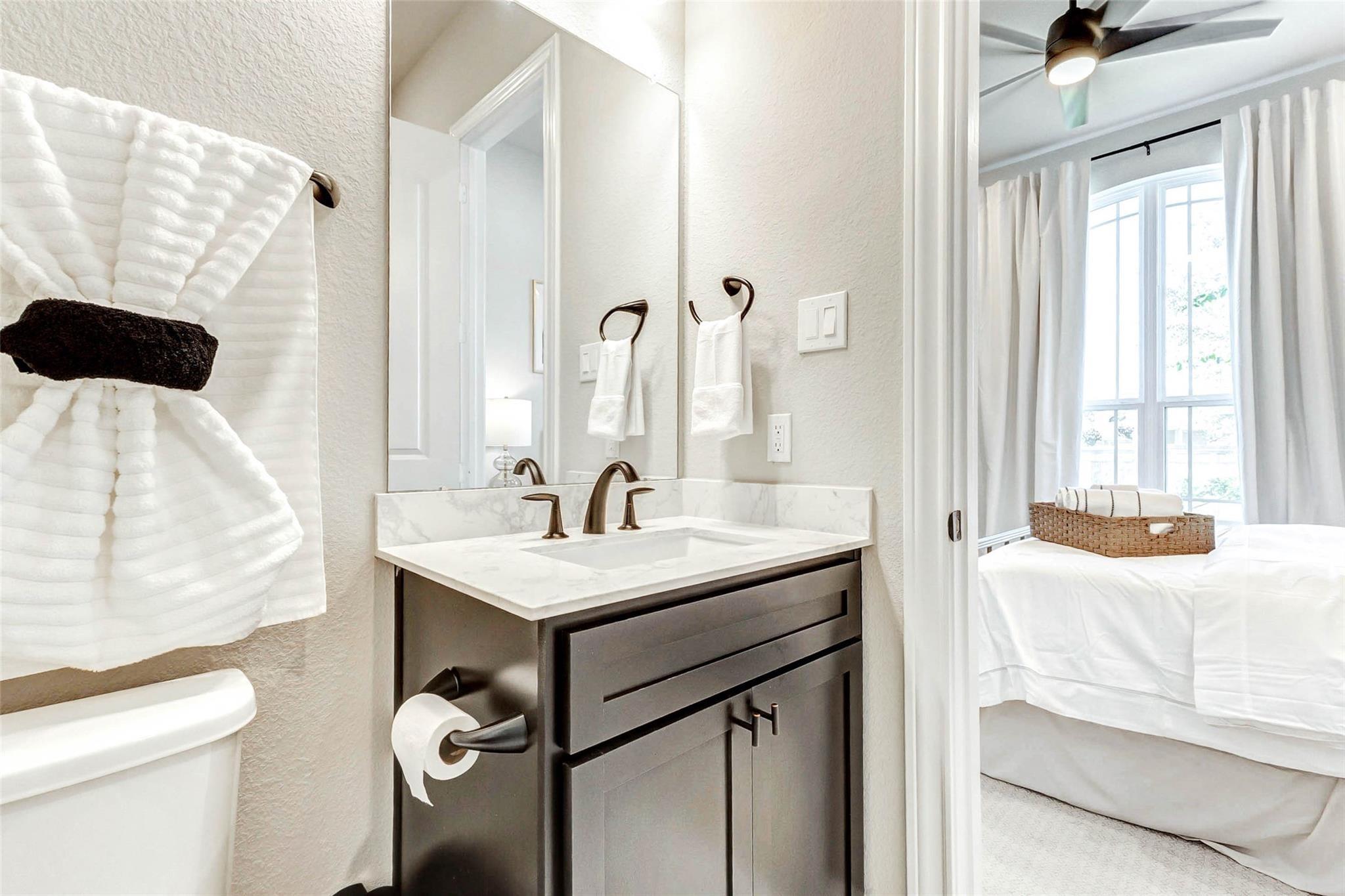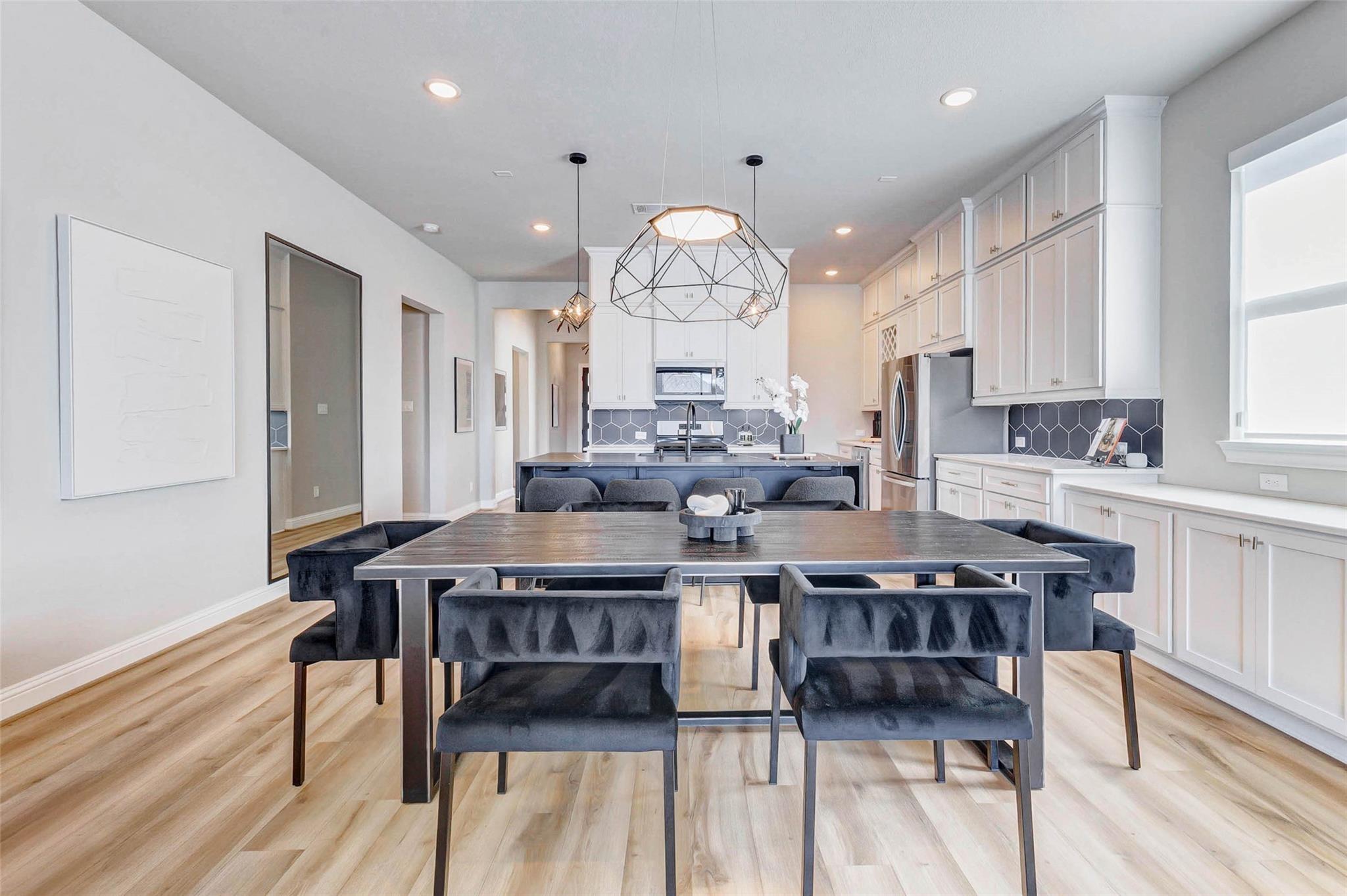 Welcome to this beautifully crafted 4-bedroom, 3-bath home offering approx. 2,500 sq ft of modern living in the heart of Sienna. Built in 2022 and zoned to highly rated schools including Ferguson Elementary and Thornton Middle School, this home blends comfort and convenience. An inviting foyer introduces the home, leading to a private mother-in-law suite with an ensuite bath, ideal for guests or multi-generational living. French doors open to a bright office that can double as a gym or flex space. The open-concept living area centers around a designer kitchen with a marble-accent island, beehive-pattern backsplash, and upgraded lighting. Step outside to your private oasis featuring a heated pool and tub-spa combo, perfect for relaxation or entertaining. Ample storage throughout ensures everything has its place. 1719 Rustling Creek Drive combines style, functionality, and a prime Sienna location—truly a home to experience.