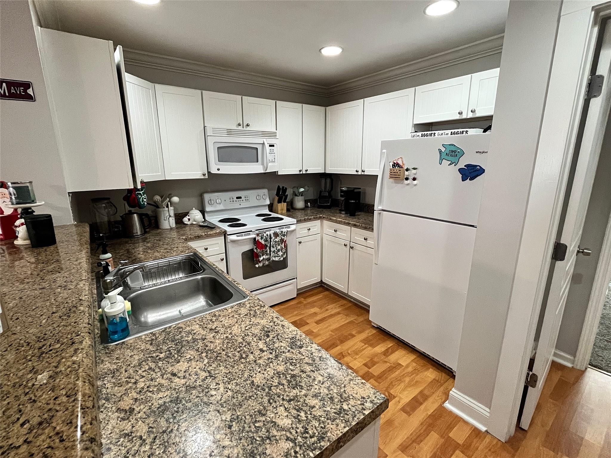 This 3-bedroom, 3-bathroom condo in The Woodlands of College Station features a convenient main-floor bedroom and full bath, while the second floor hosts two additional bedrooms, each complete with an ensuite bath and generous closet space. The main level boasts an open-concept design with durable laminate flooring throughout the living, dining, and kitchen areas. A granite breakfast bar provides additional space for dining or studying. For added convenience, the refrigerator, washer, and dryer are included in the sale. Residents enjoy access to premium community amenities, including a resort-style pool, a sand volleyball court, basketball and tennis courts, and a clubhouse equipped with an exercise room, gaming tables and quiet study rooms. Ideally situated for ease of commute, the property is located just 0.4 miles from the Elephant Walk Aggie Bus Route and a variety of local dining options. HOA dues include cable and internet. Unit is fully leased through May 31st, 2026.