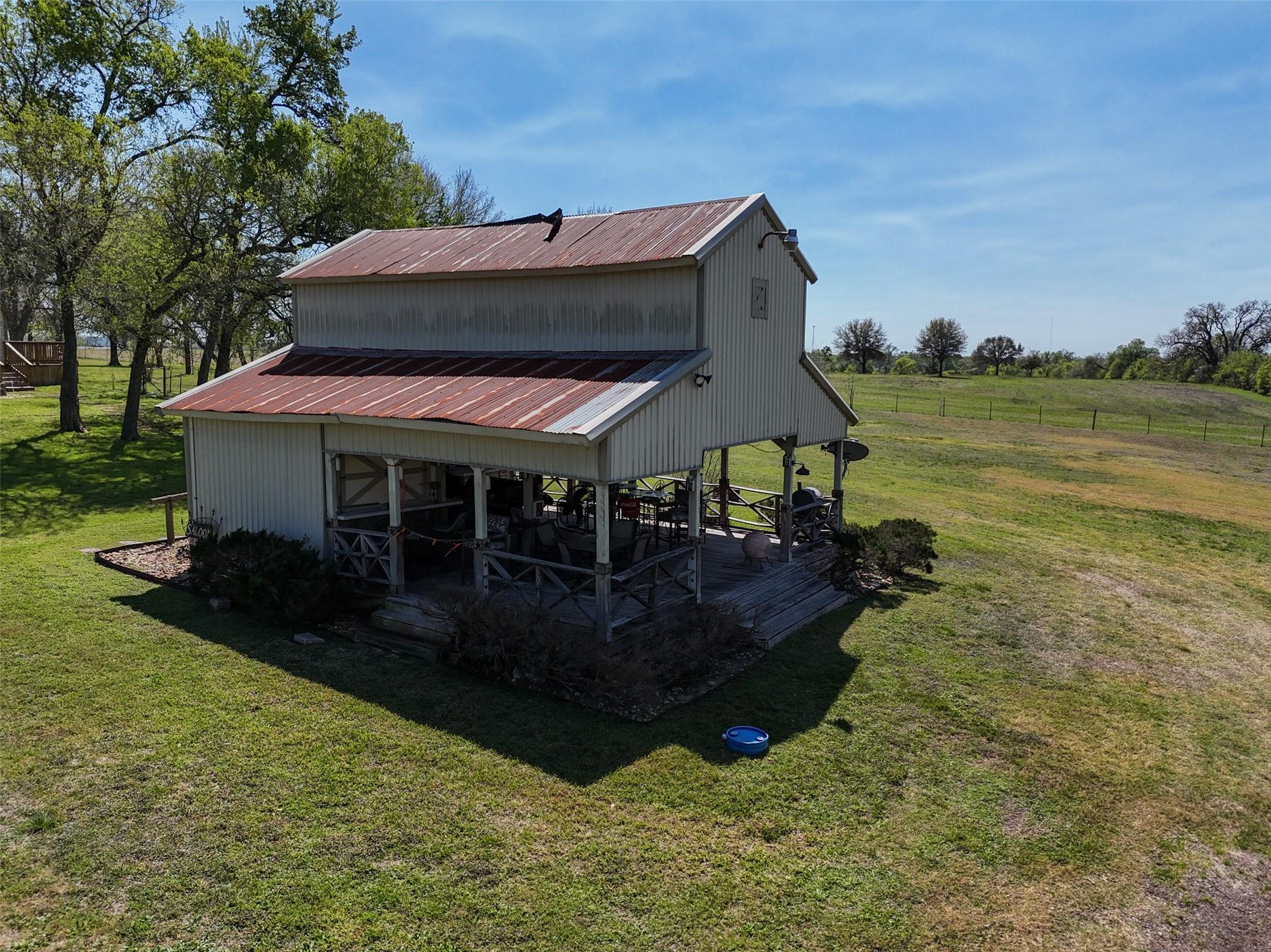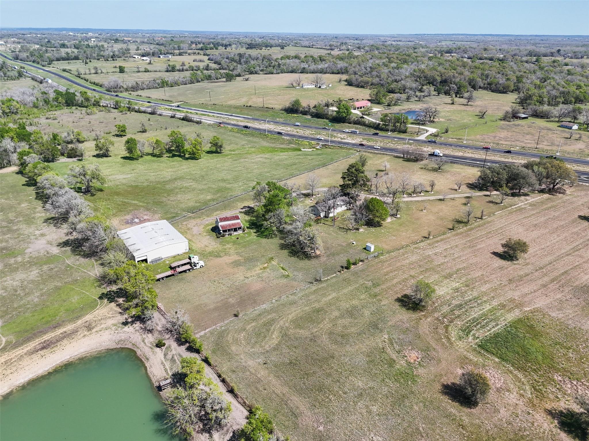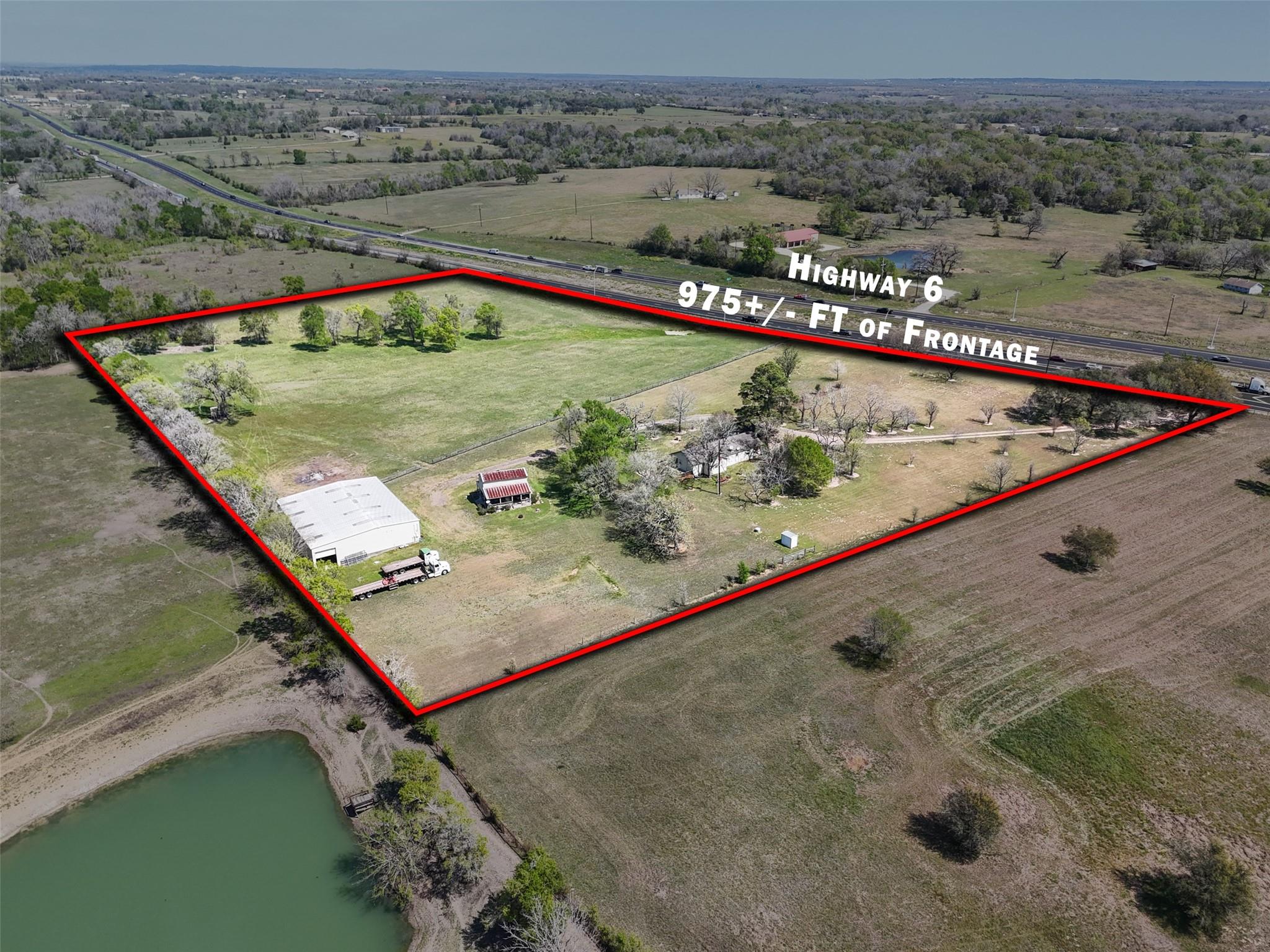 Positioned along Hwy 6, this 12+ acre property offers a versatile setup centered around a large insulated metal shop designed for functionality and flexibility. The shop features multiple roll-up doors, including rear access for additional covered parking, along with lighting in conduit, water spigots located throughout the property, and a full bath in progress. A dedicated living area with loft space inside the shop adds convenience for extended use or workspace needs. The property includes an asphalt driveway, electric gate entry, well and septic systems, with county water available at the road. Open pasture with scattered trees provides ample room for equipment, storage, or future improvements. A farmhouse-style residence offers additional living space separate from the main shop. With no agricultural exemption and no front fence, the land remains unrestricted and adaptable to a variety of uses, all with strong highway frontage and easy access.