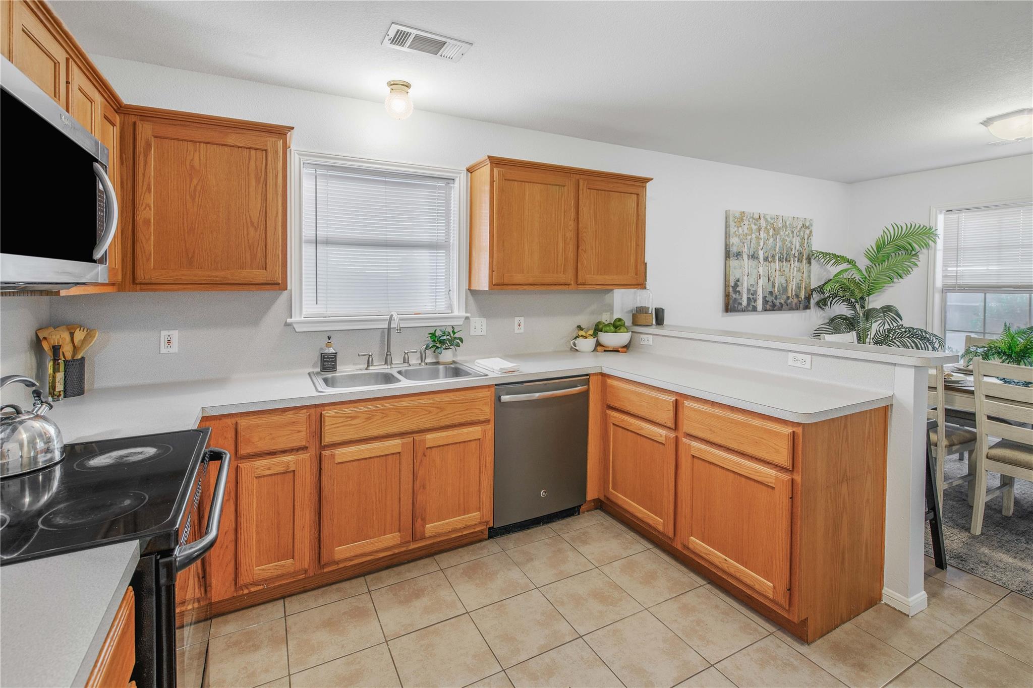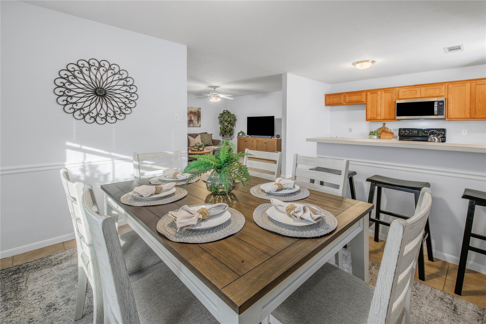 Welcome home to this well-designed duplex in the heart of Bryan, where comfort and convenience meet opportunity. Each side opens to an inviting living room, perfect for relaxing or gathering. The kitchen and dining area flow seamlessly for everyday living and entertaining, with ample counter space and a window overlooking the spacious backyard for natural light. The dining space fits a variety of table styles and sizes. Down the hall, a laundry room with shelving adds storage. Two secondary bedrooms share a well-appointed bath. The private primary suite at the end features an en-suite bath and direct backyard access for a peaceful retreat. Enjoy the covered patio and oversized backyard ideal for pets, play, or gardening with a storage shed for tools or hobbies. Conveniently located minutes from shopping, dining, schools, and local businesses, this duplex is perfect for investors or owner-occupants.