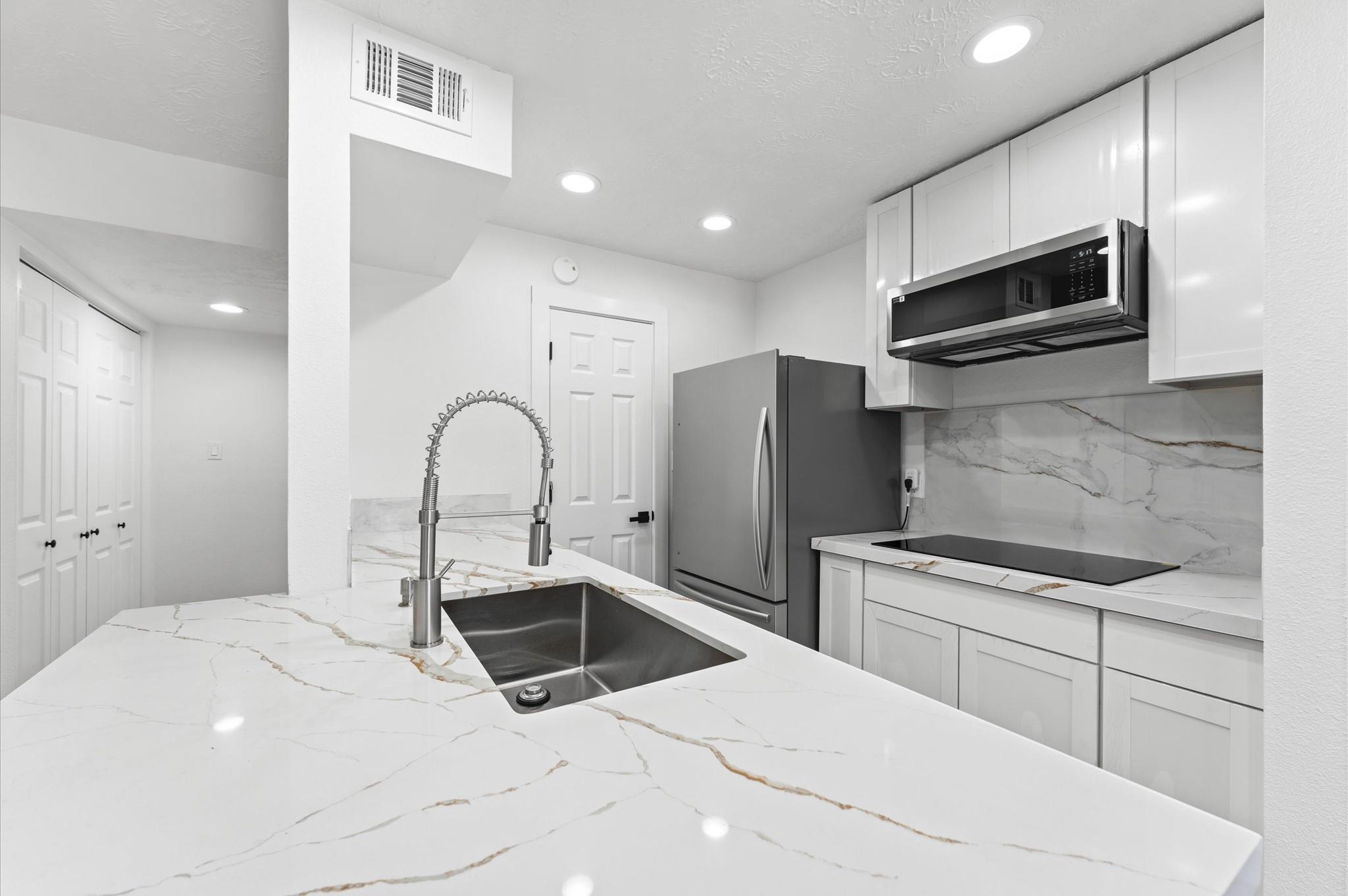 Beautifully remodeled and filled with natural light, this stunning condo is move-in ready and waiting for its new owner! Enjoy a thoughtfully designed layout with great flow, perfect for both everyday living and entertaining. The brand-new kitchen features sleek quartz countertops, all new stainless steel appliances, and modern cabinetry. Spacious bedrooms offer comfort and relaxation, complete with generous closet space for all your storage needs. Every detail has been carefully updated, blending style and functionality throughout. Whether you're unwinding in the bright living area or hosting guests, this home offers a warm and inviting atmosphere. Located in a quiet community, this condo combines contemporary design with practical living. Don’t miss the chance to make this beautifully upgraded home yours—schedule a tour today and experience the perfect blend of modern elegance and everyday comfort!